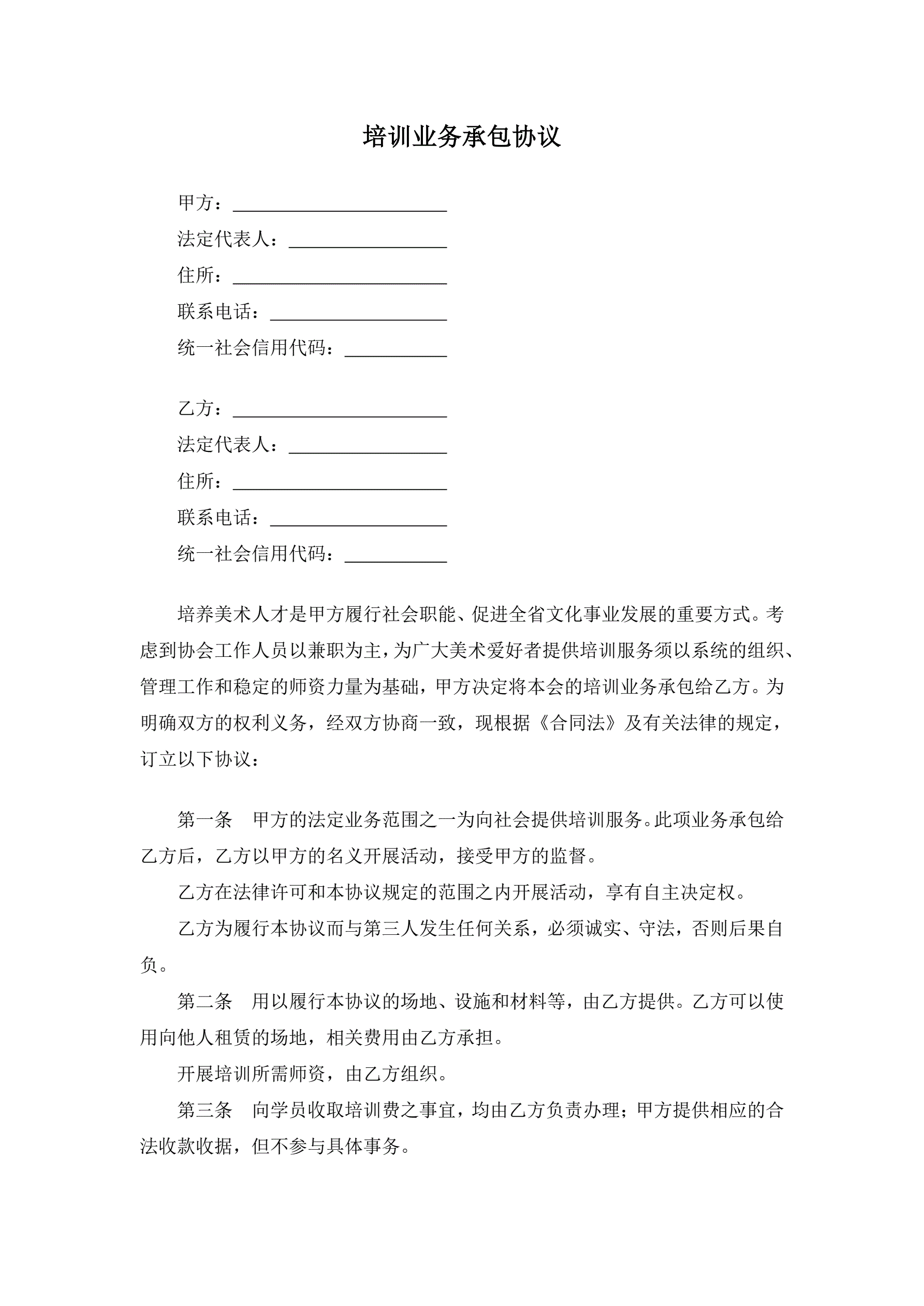 合同名称:培训业务承包协议