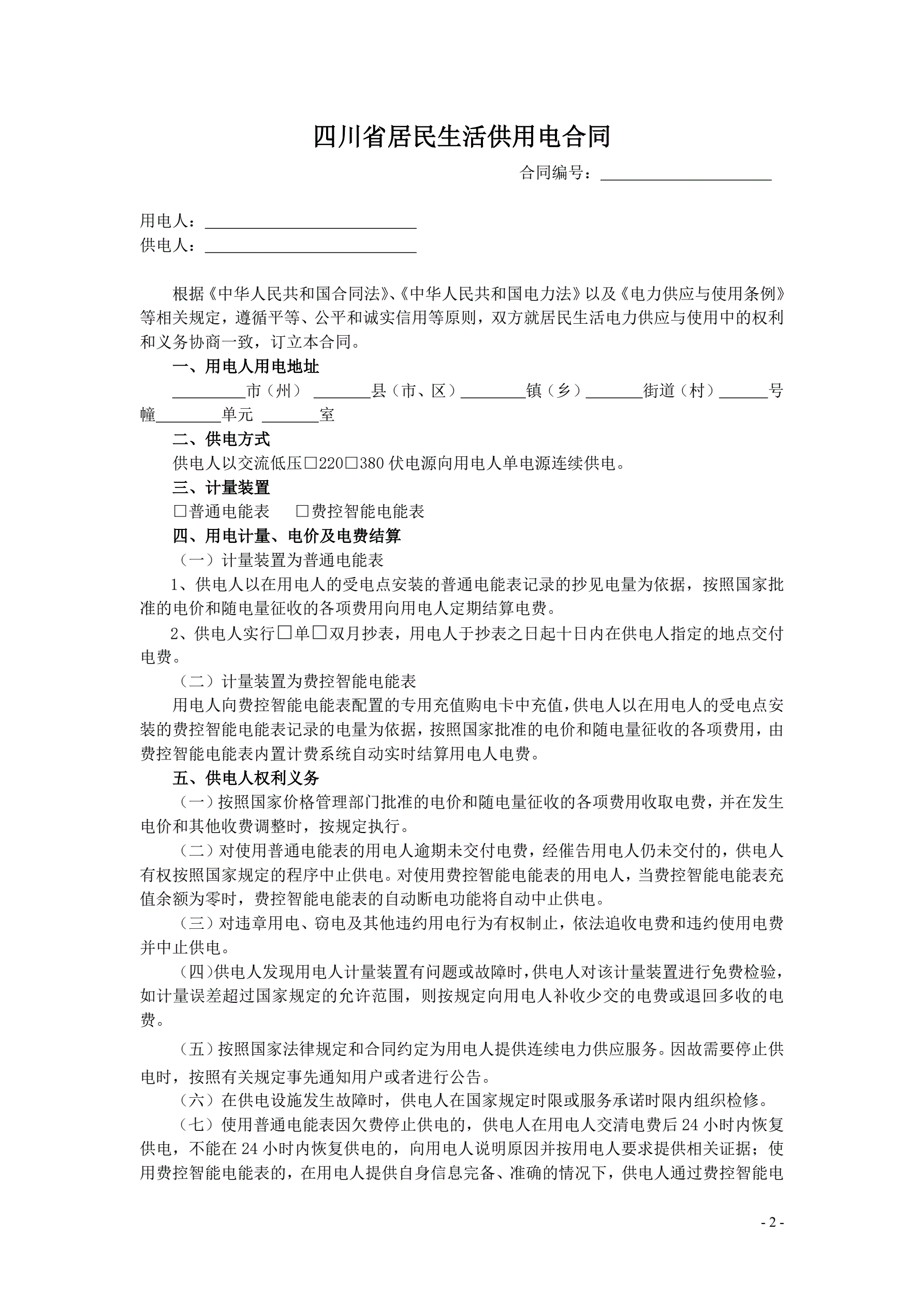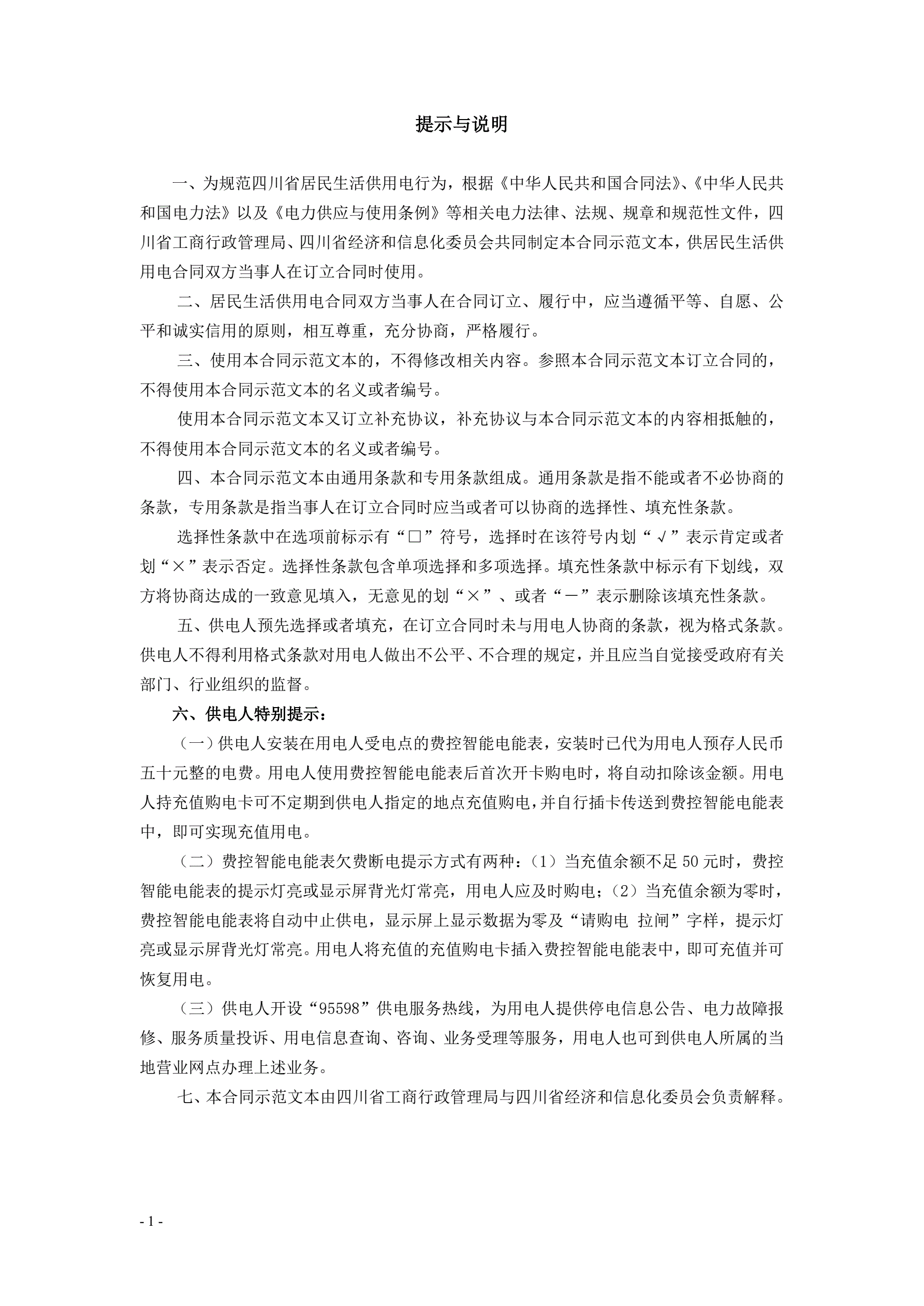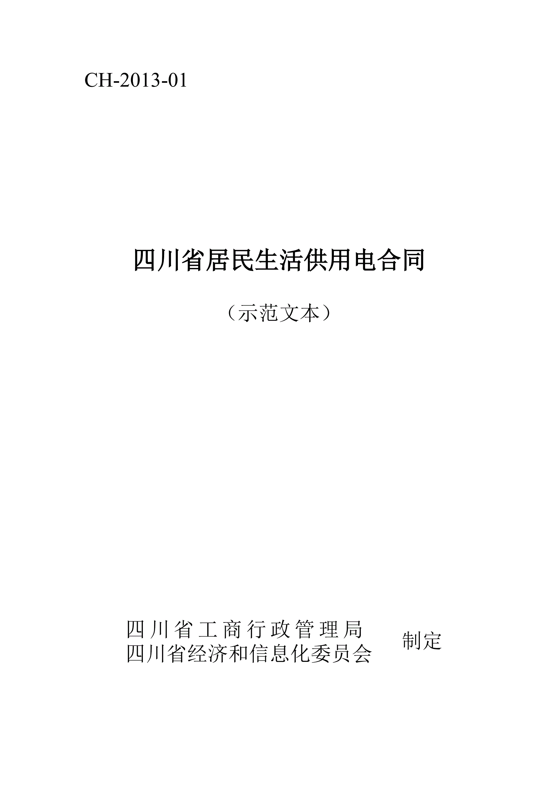 >四川省居民生活供用电合同(示范文本)(CH-2013-01)