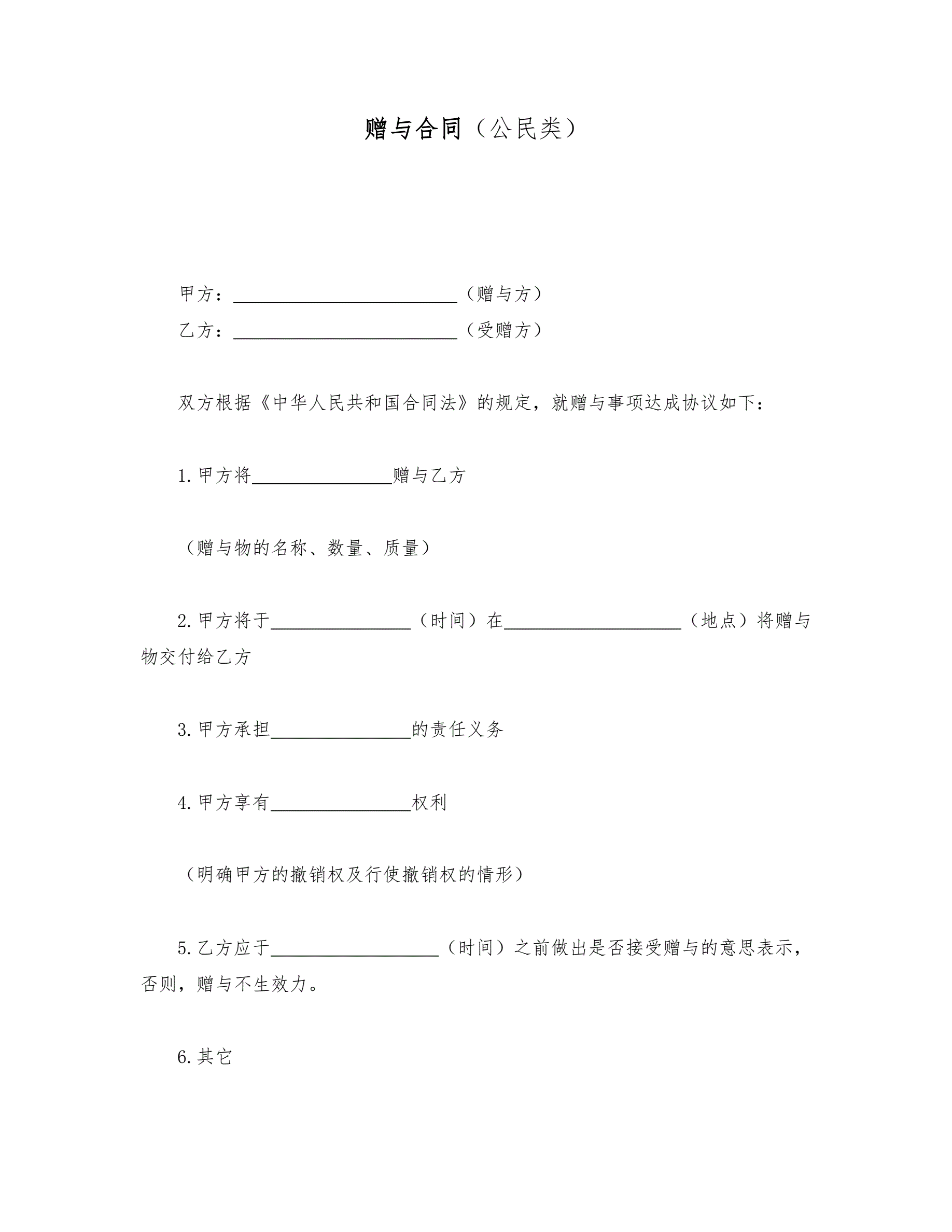 赠与合同(公民类)