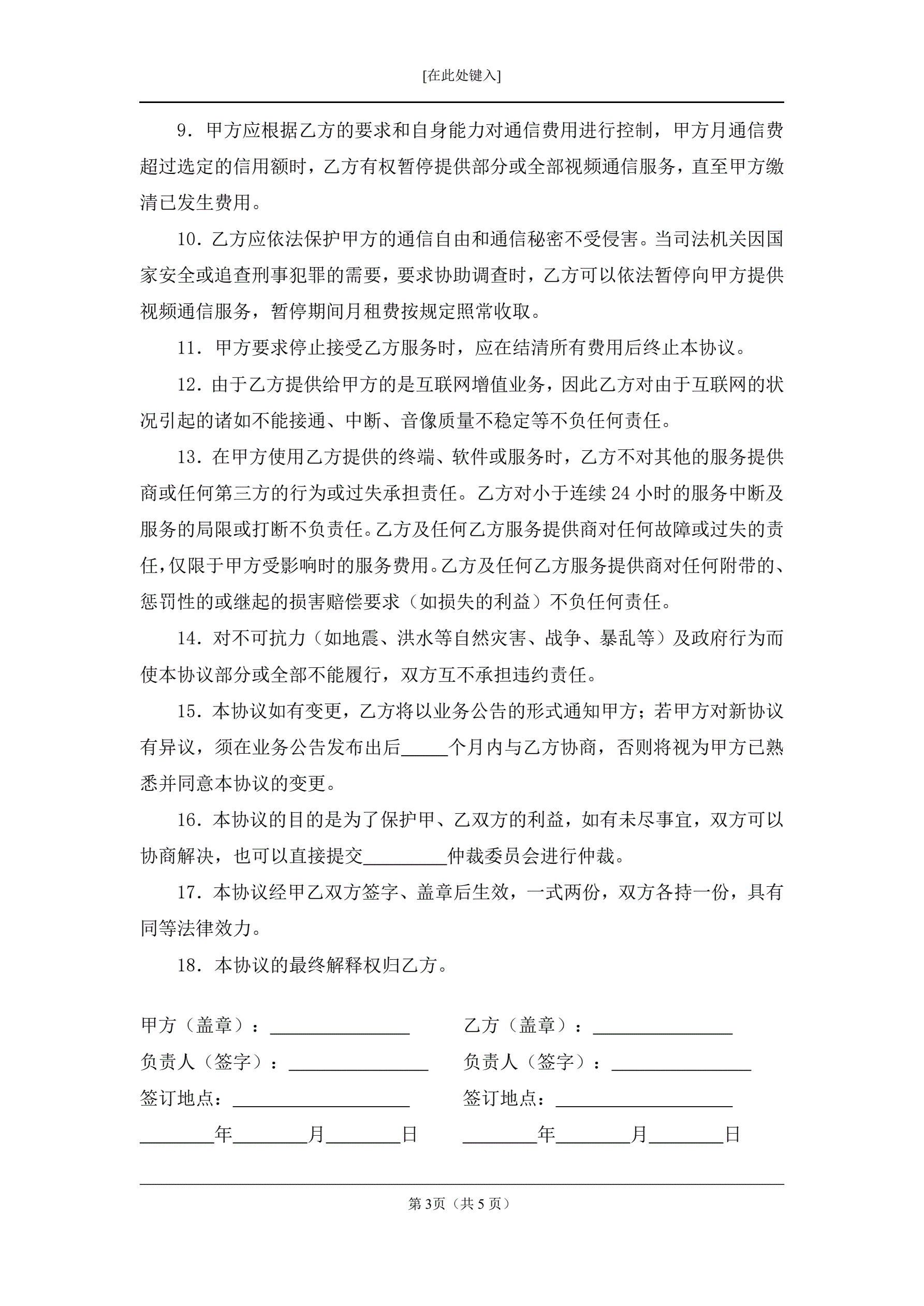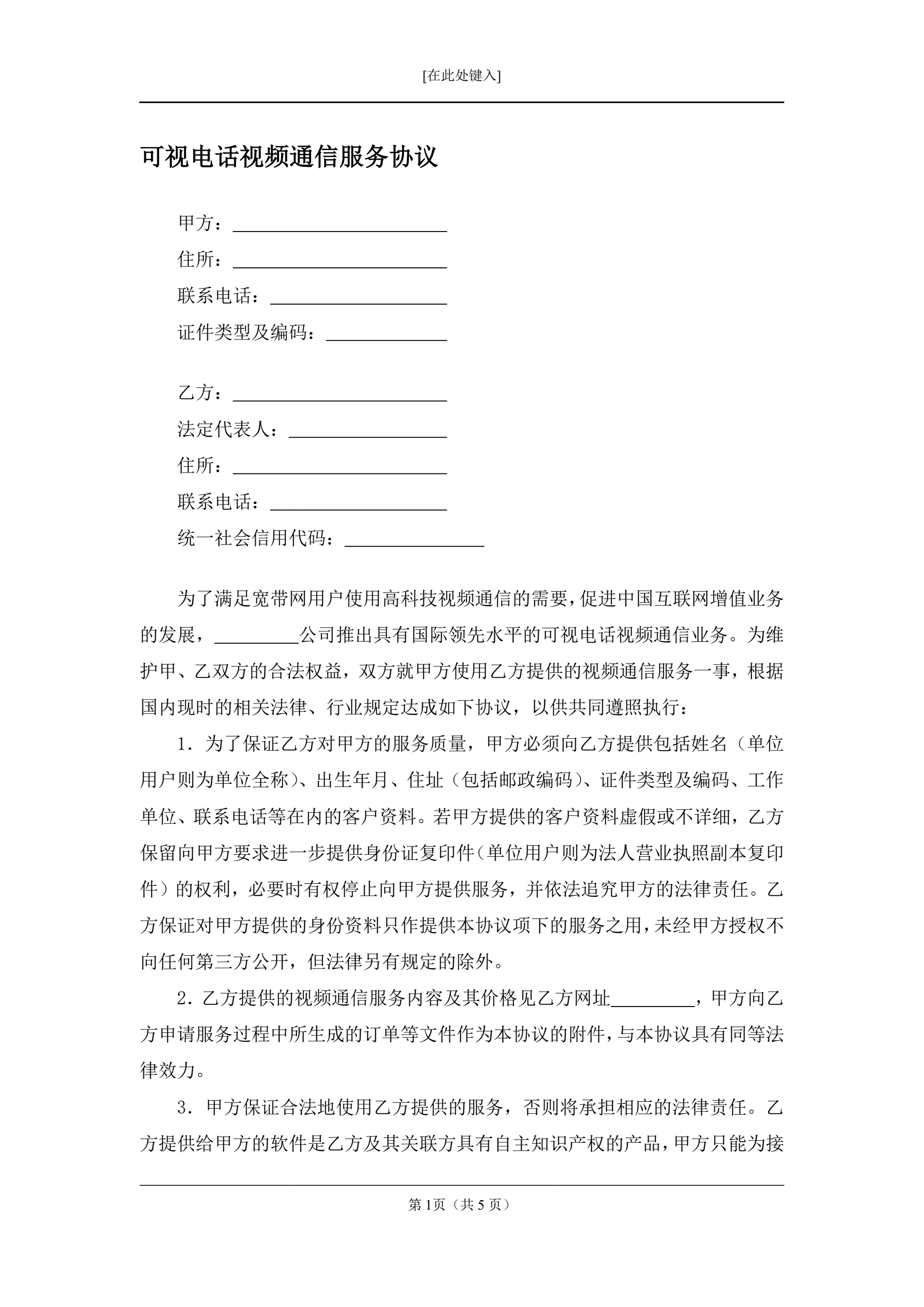 可视电话视频通信服务协议