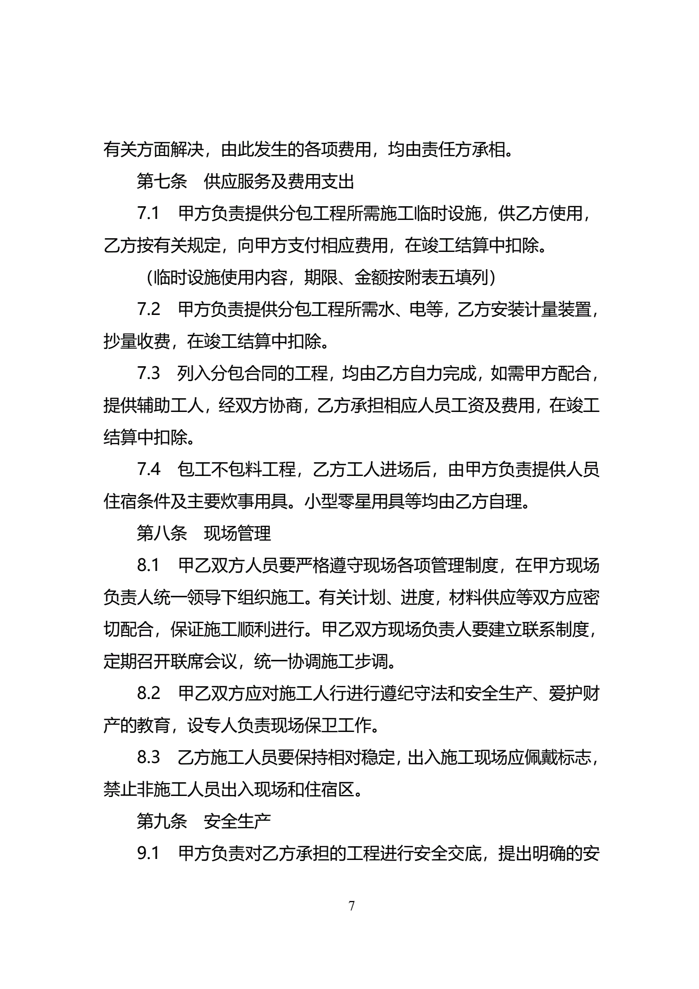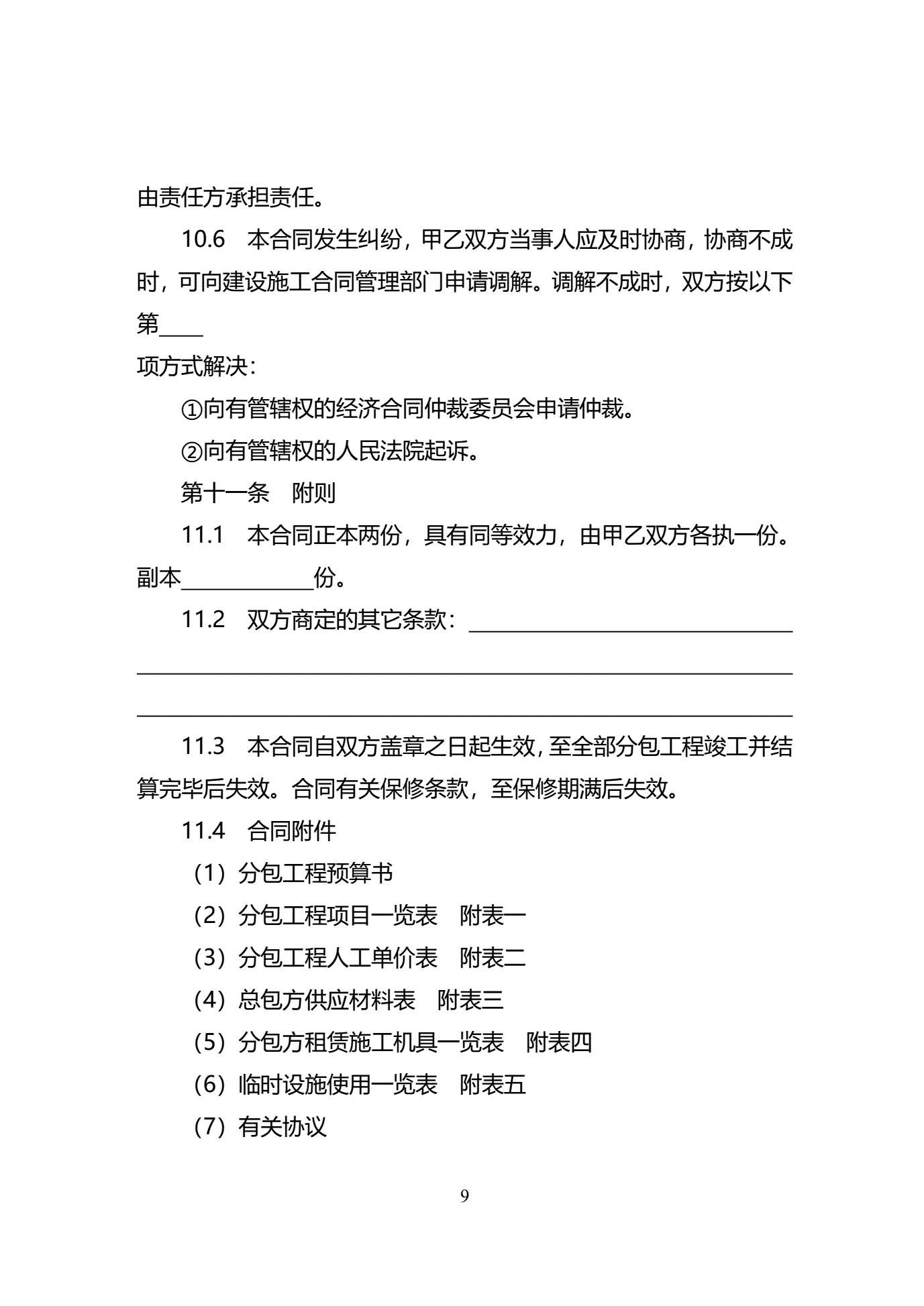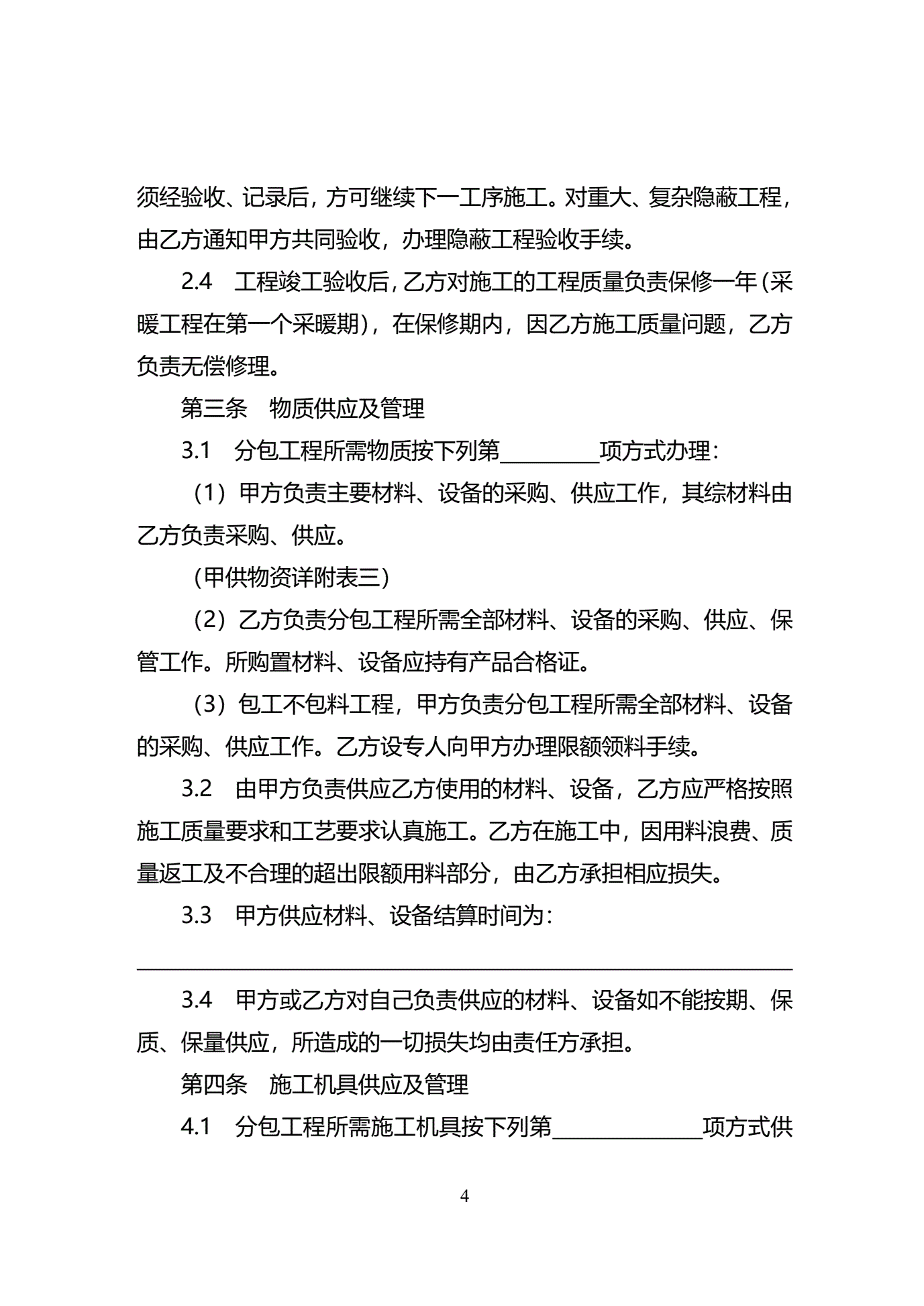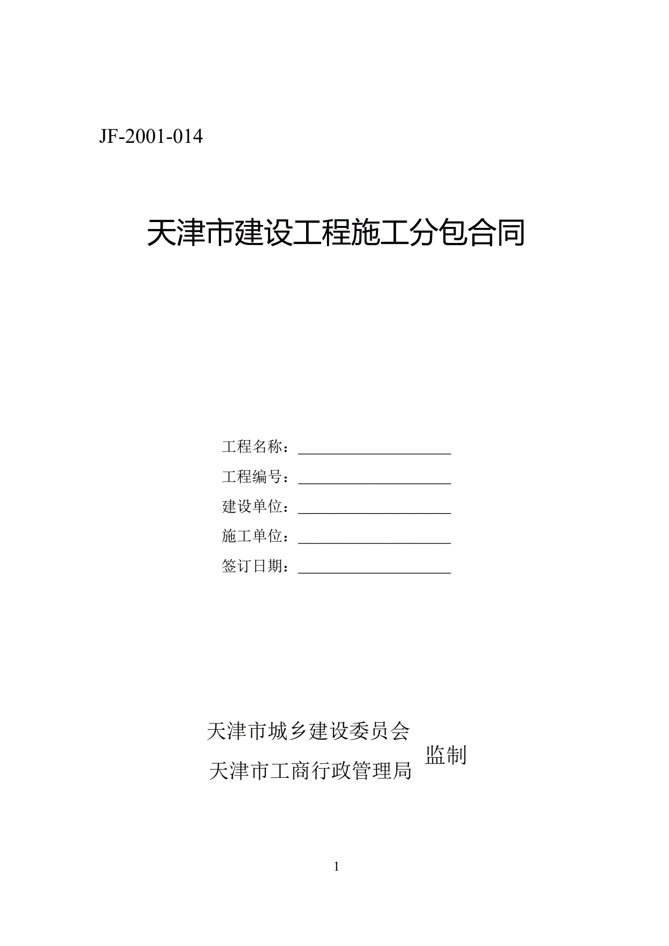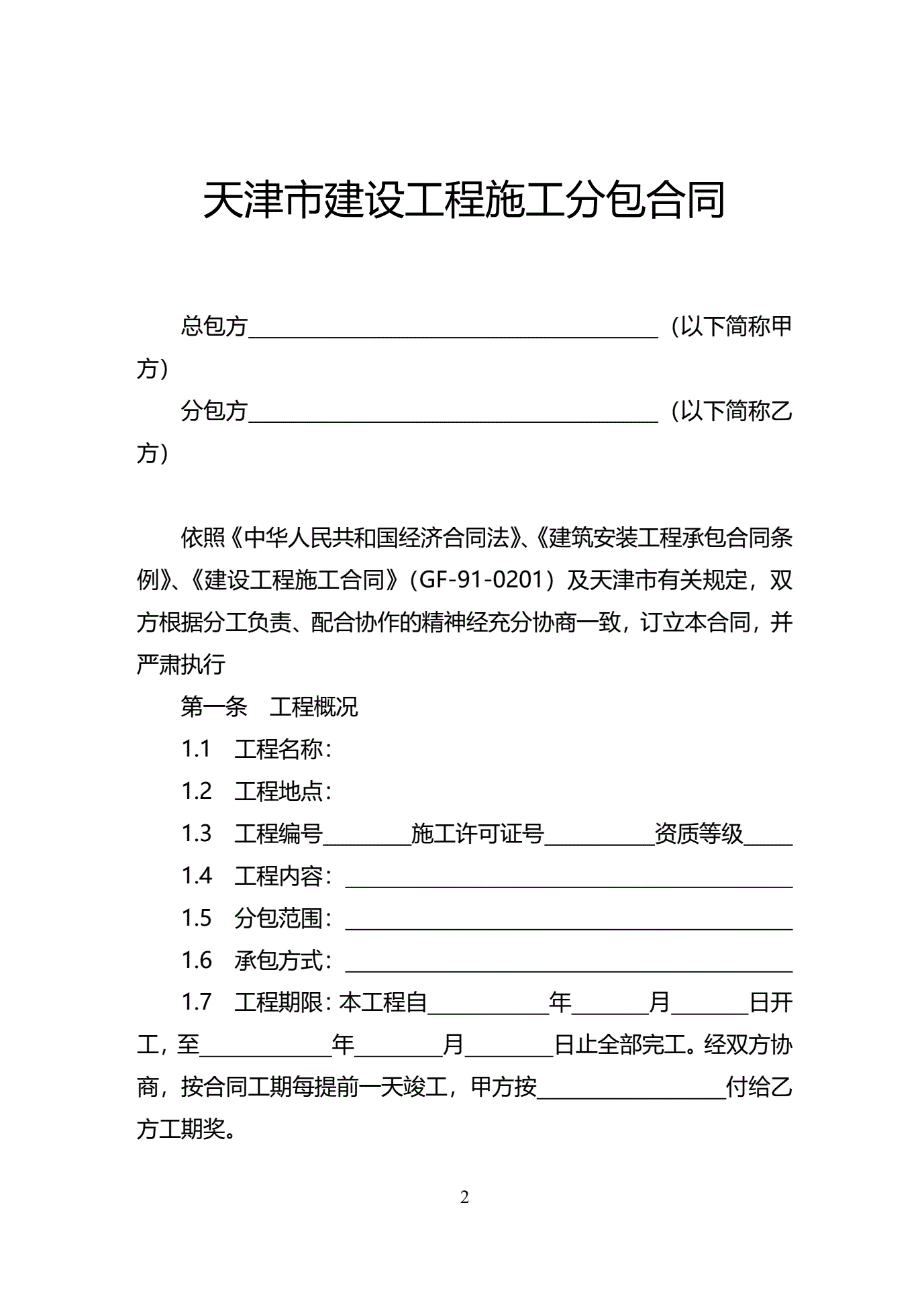 >天津市建设工程施工分包合同