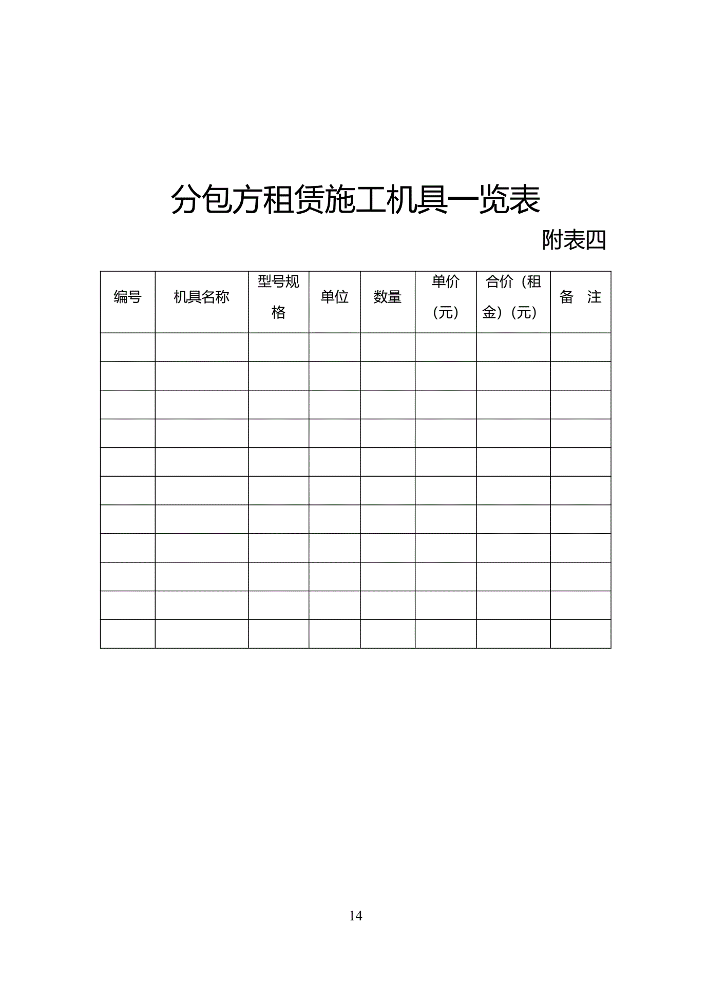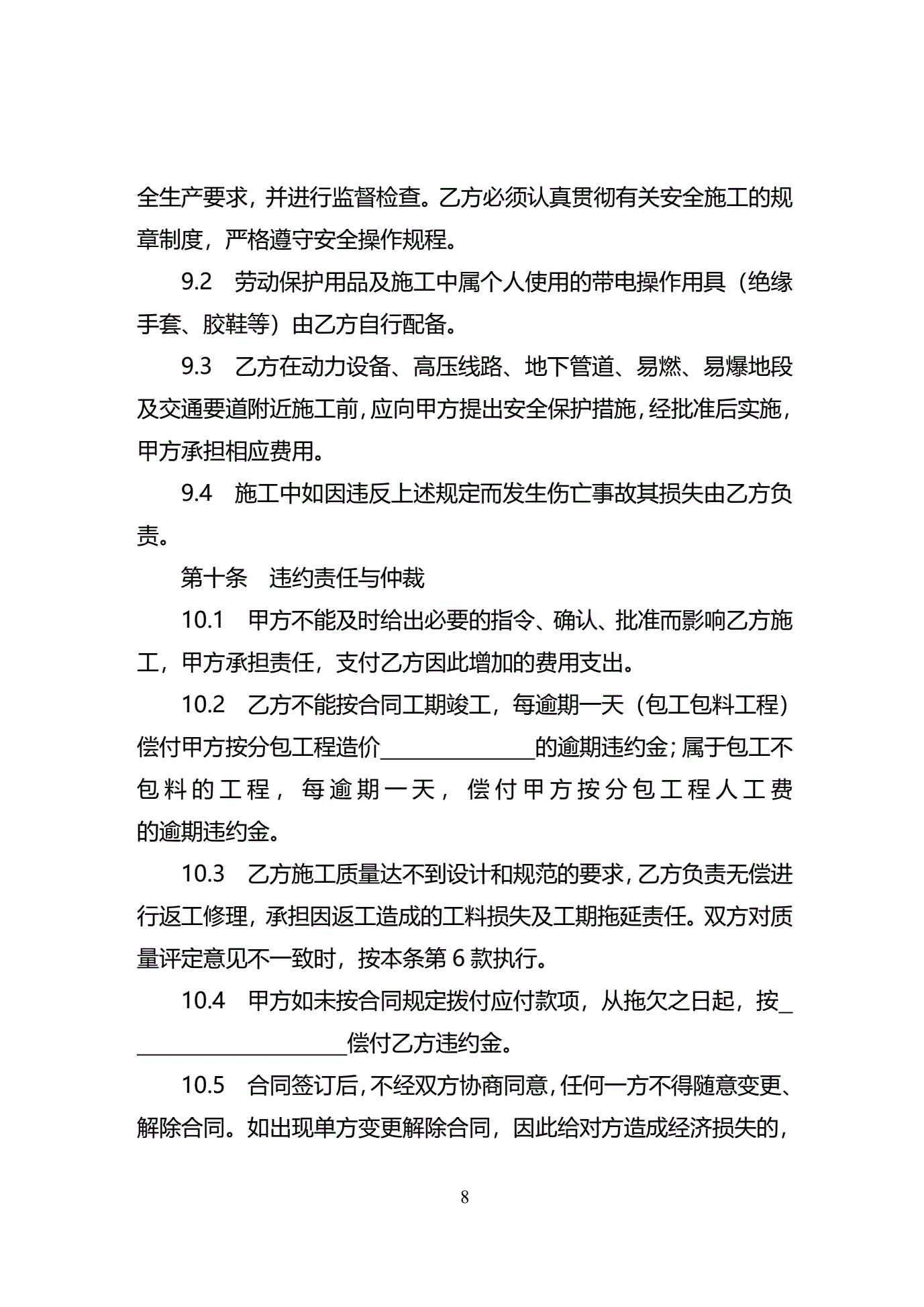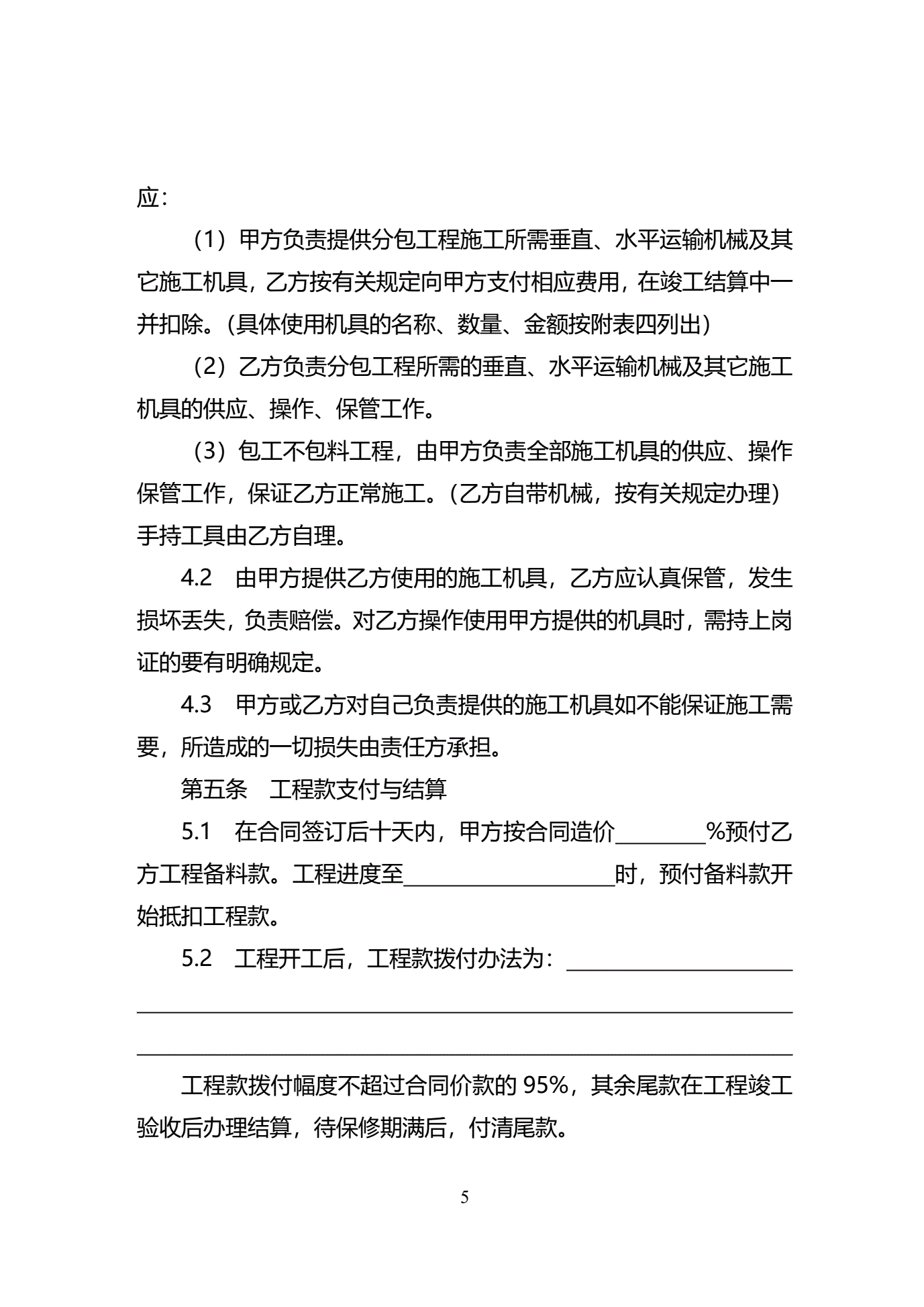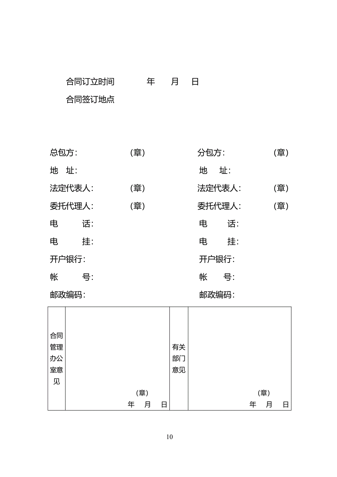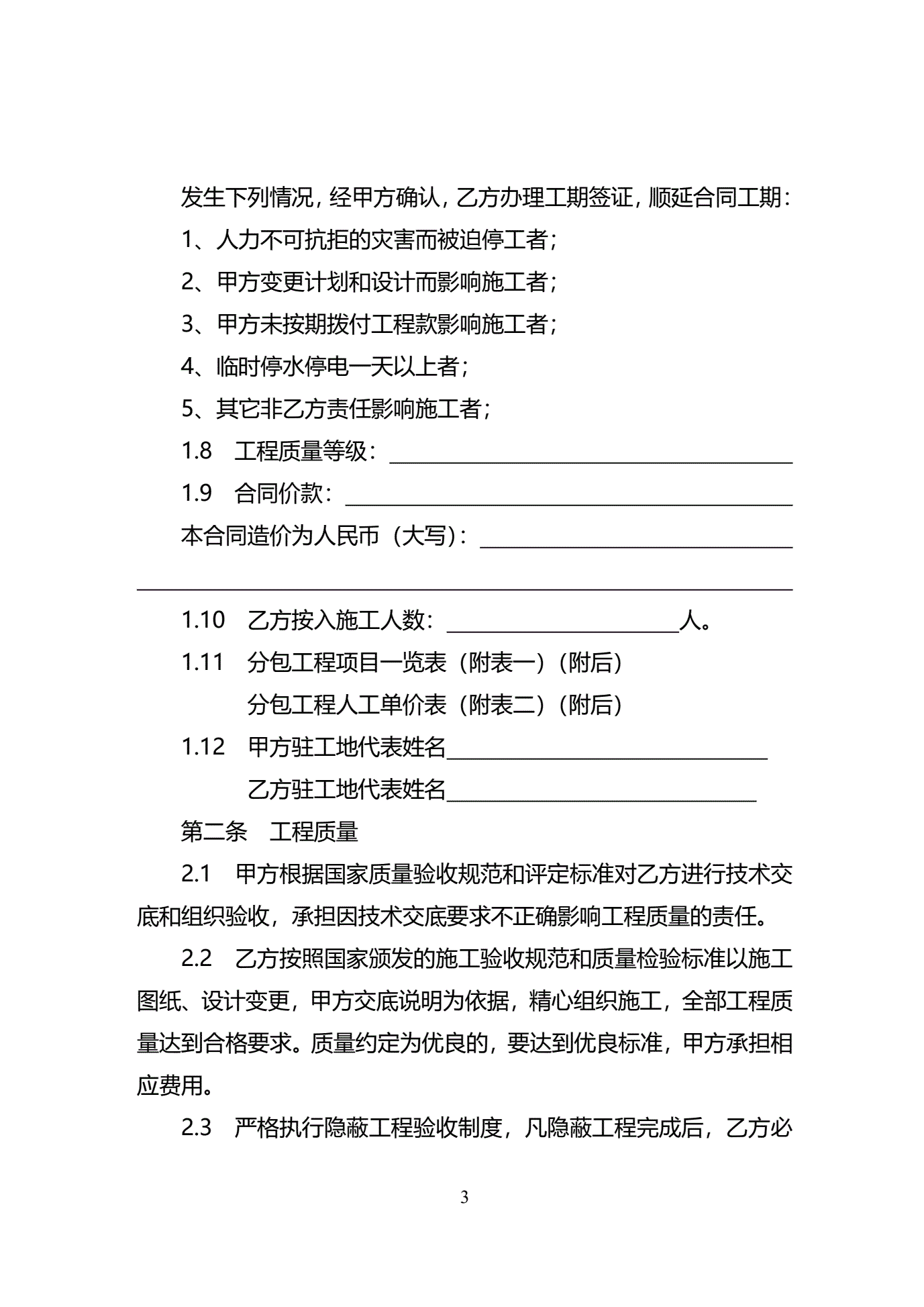 >天津市建设工程施工分包合同