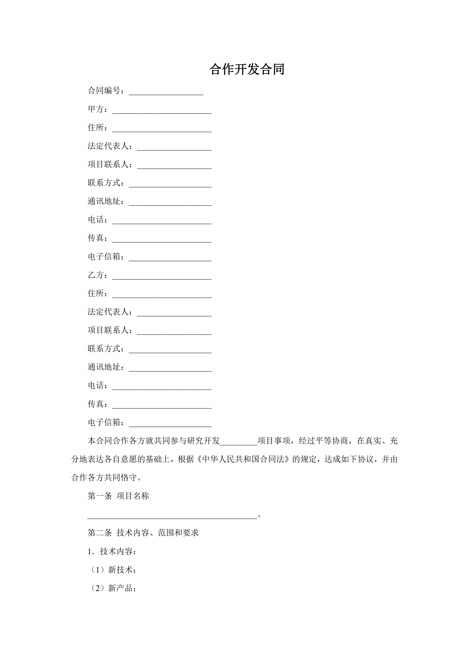 合作开发合同