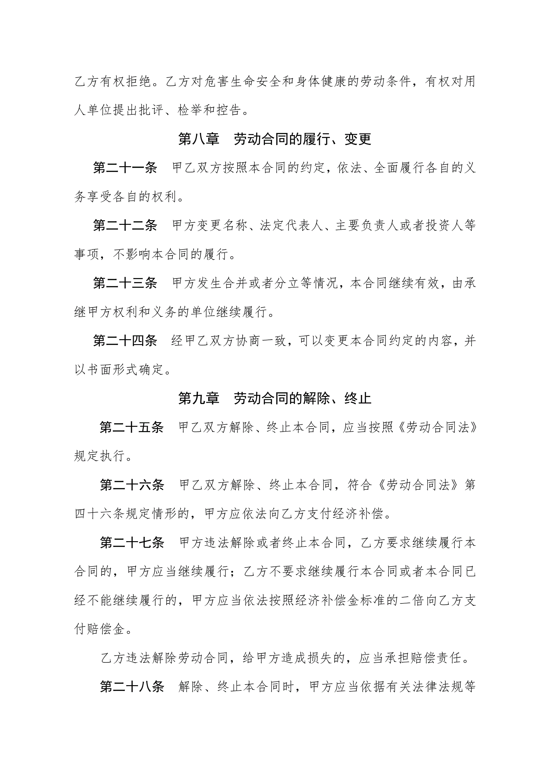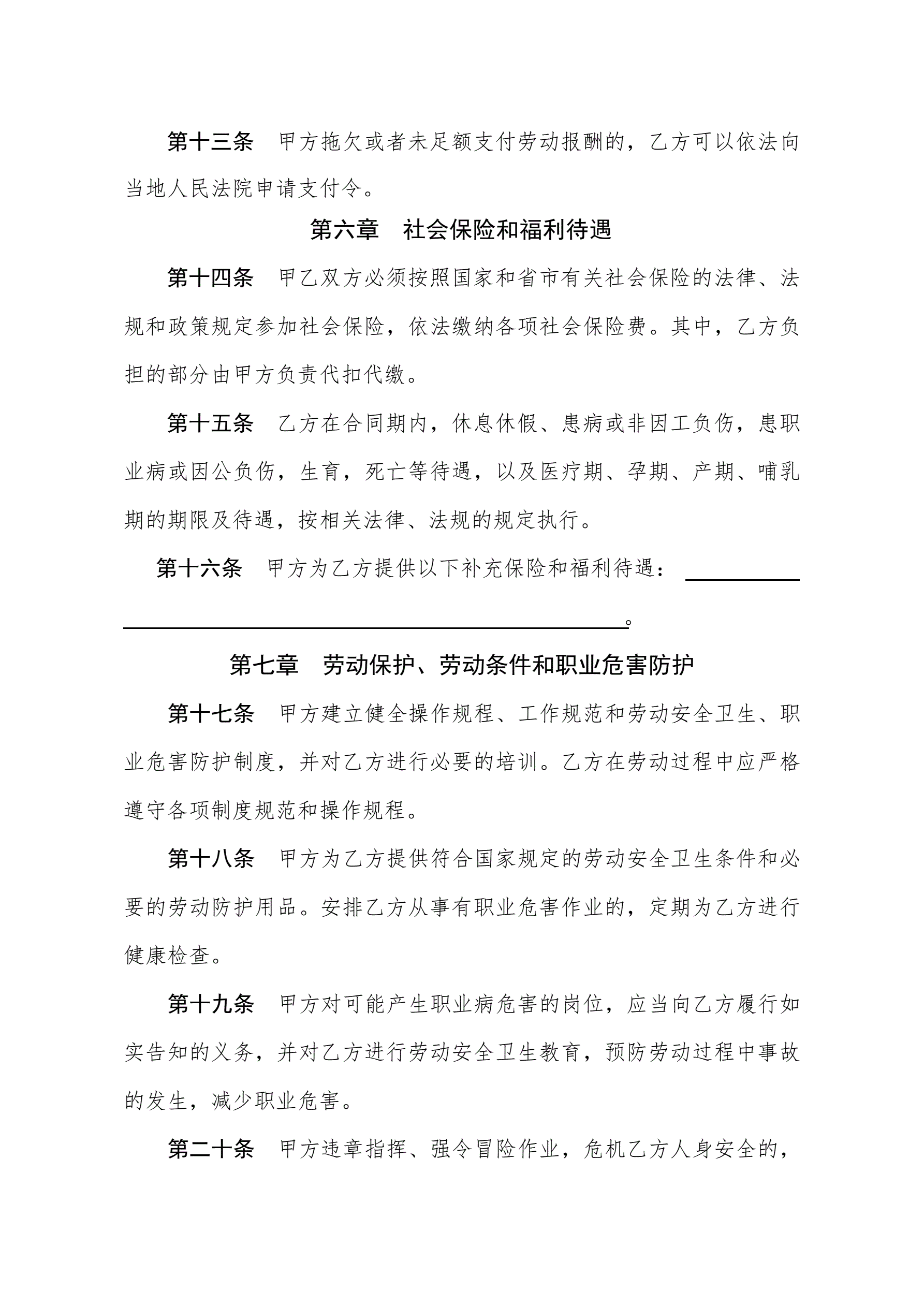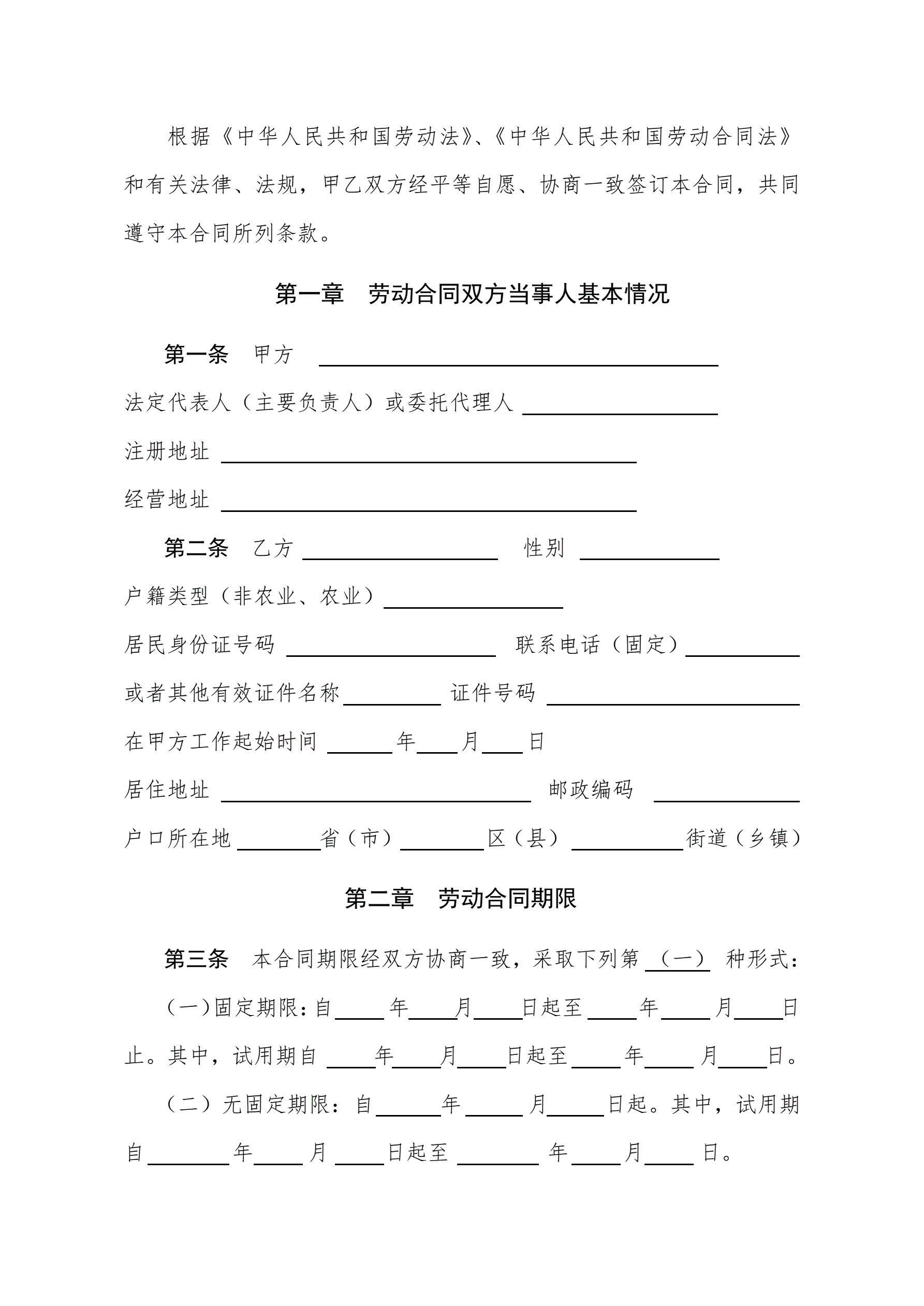 沈阳市劳动合同书电子版