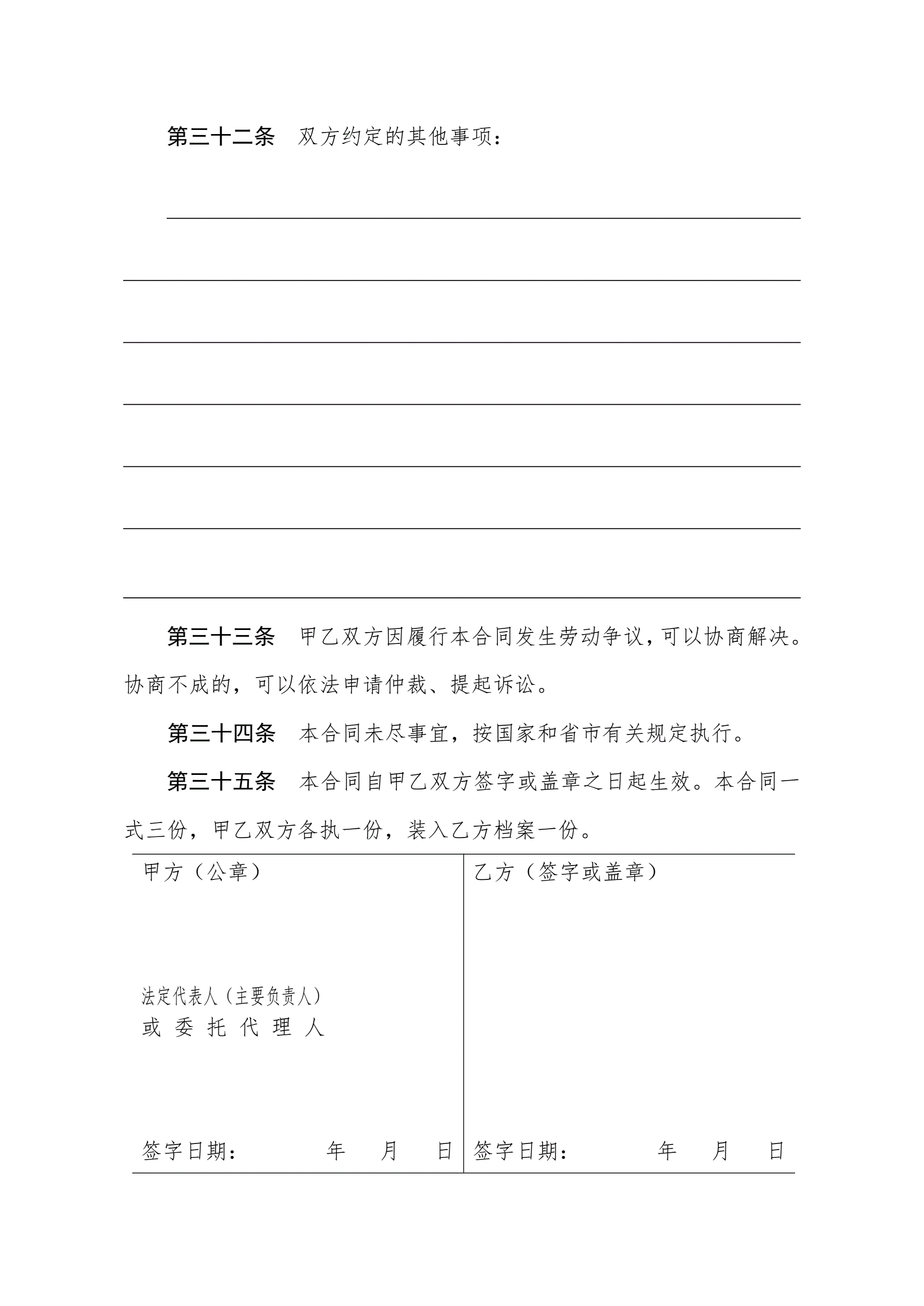 >沈阳市劳动合同书电子版