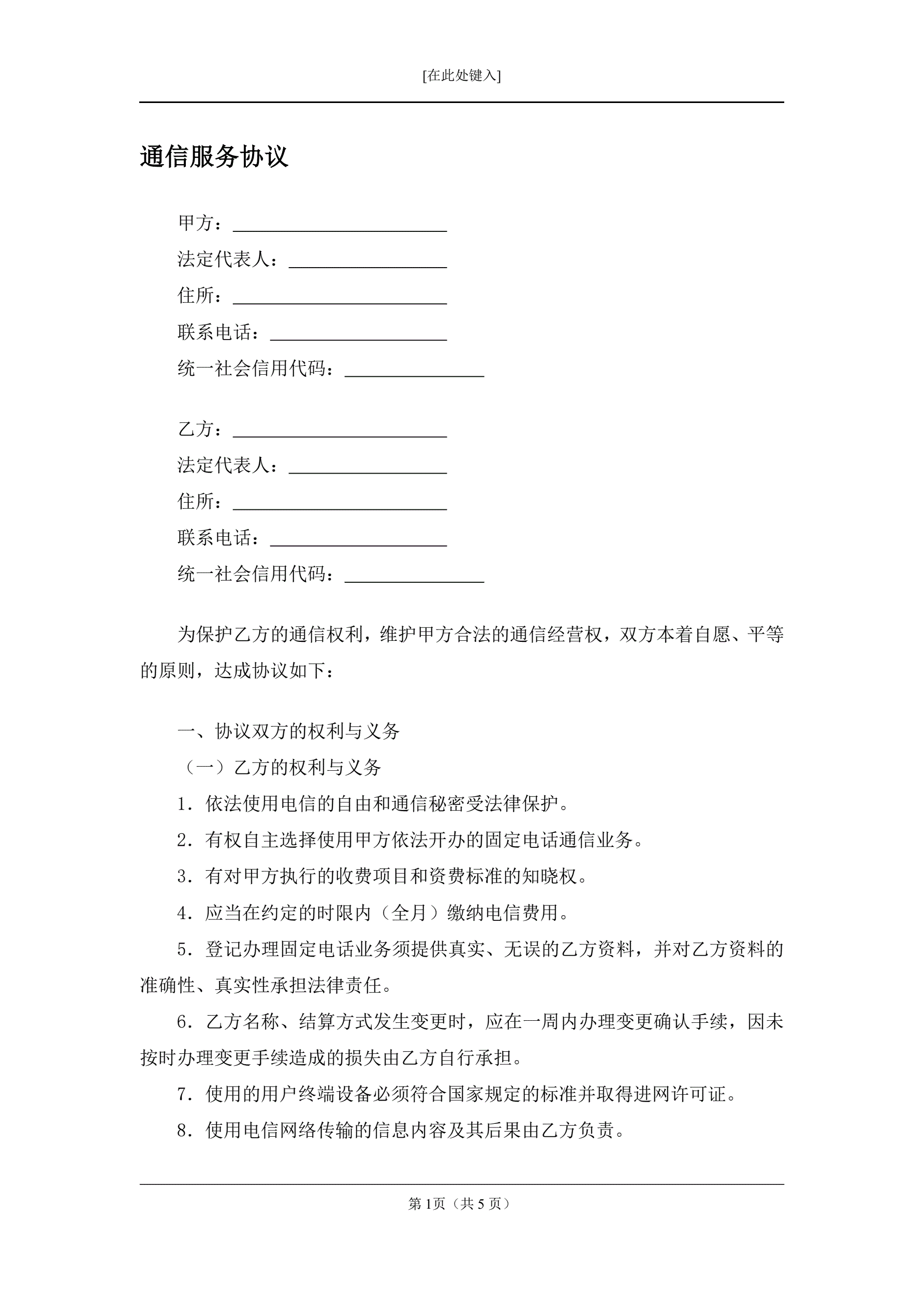 通信服务协议
