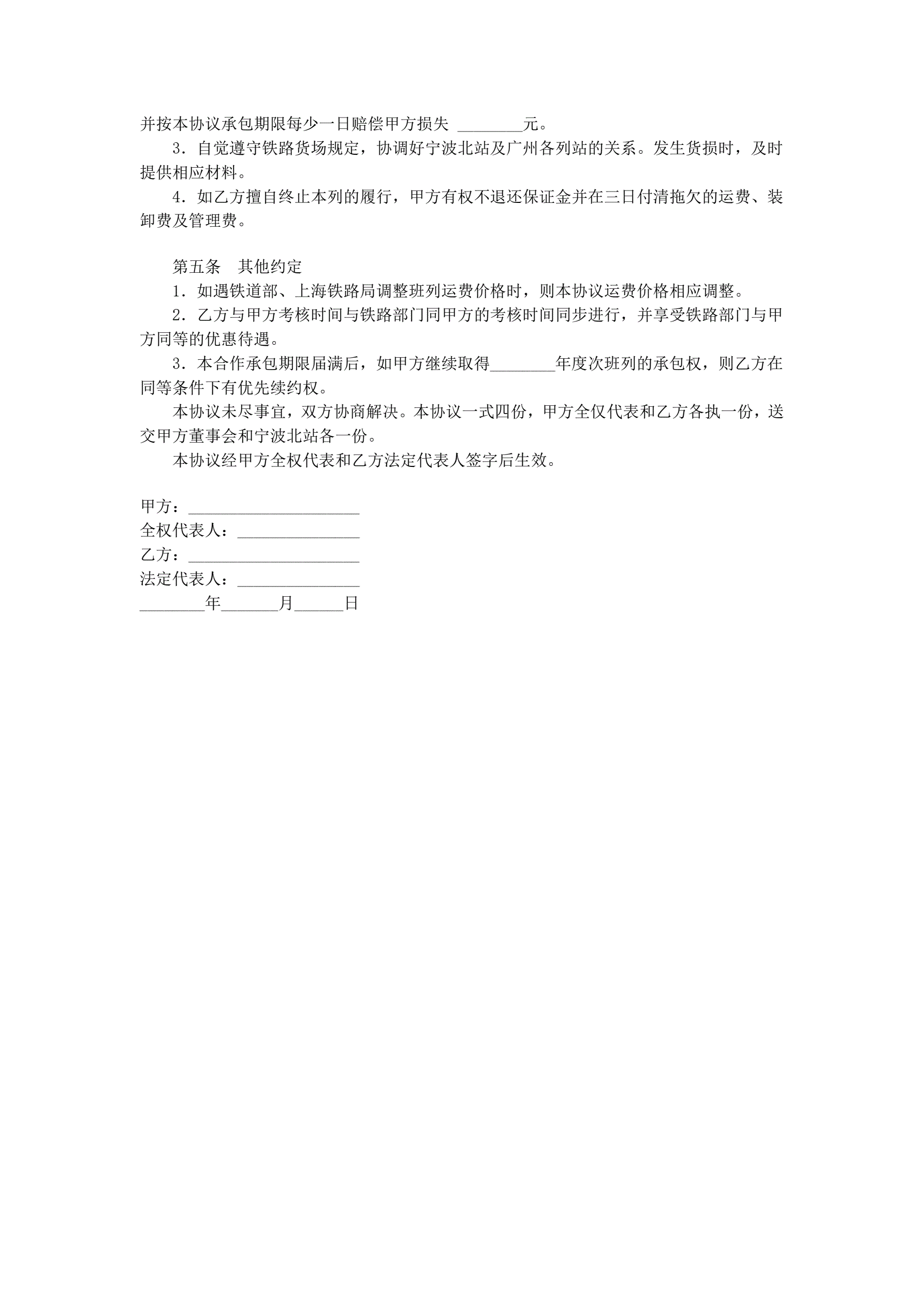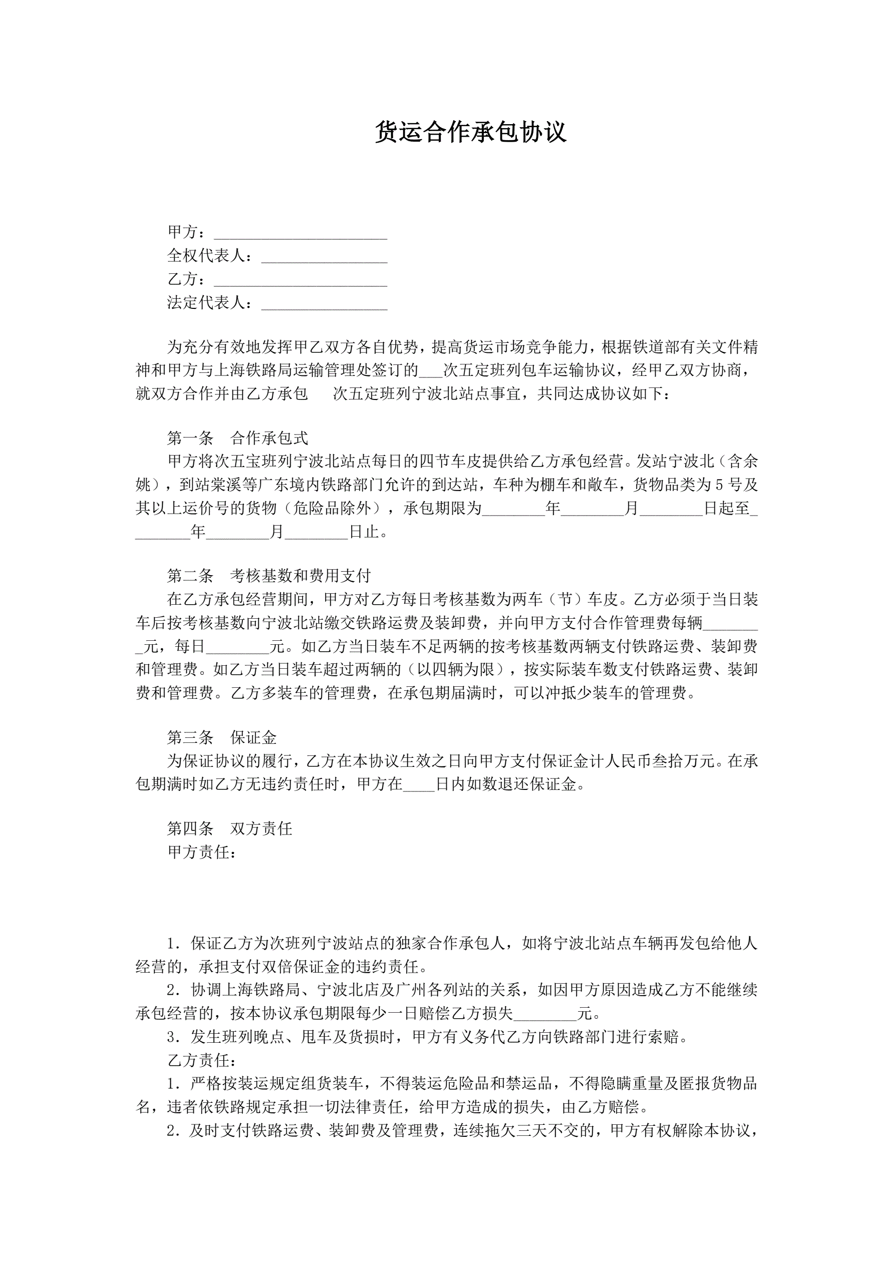 货运合作承包协议