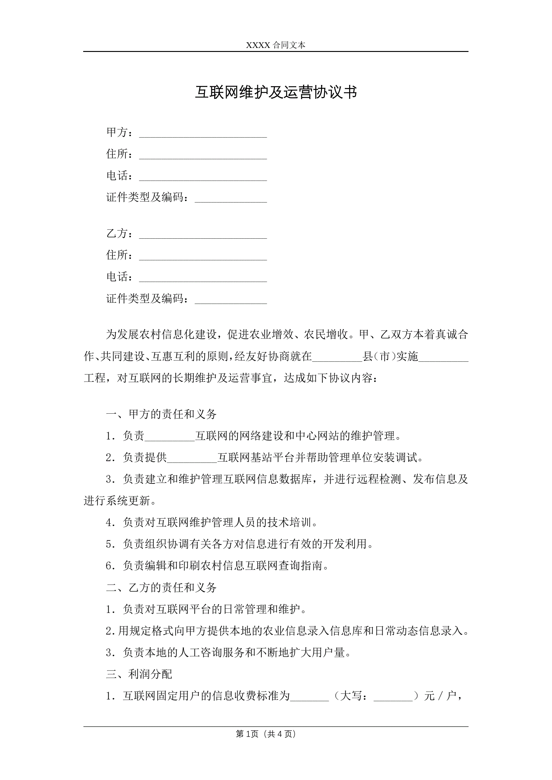 合同名称:互联网维护及运营协议书
