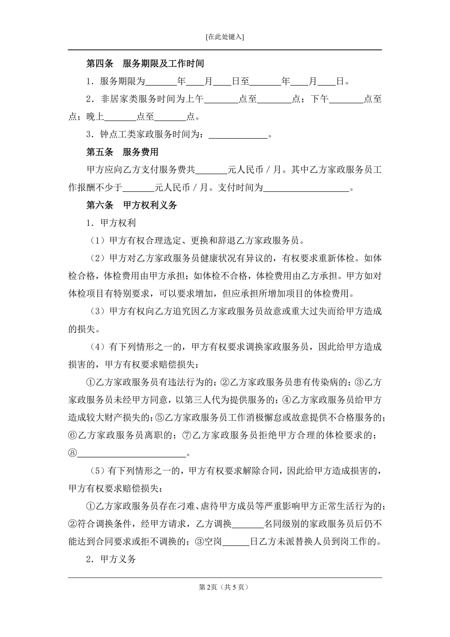 保姆合同