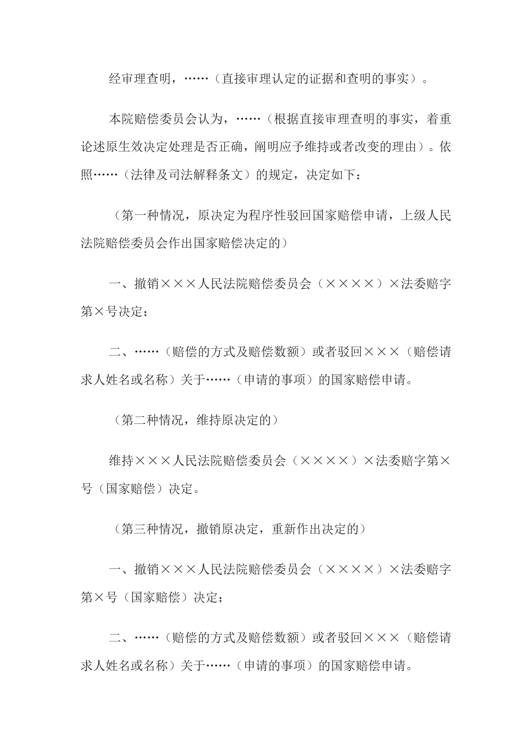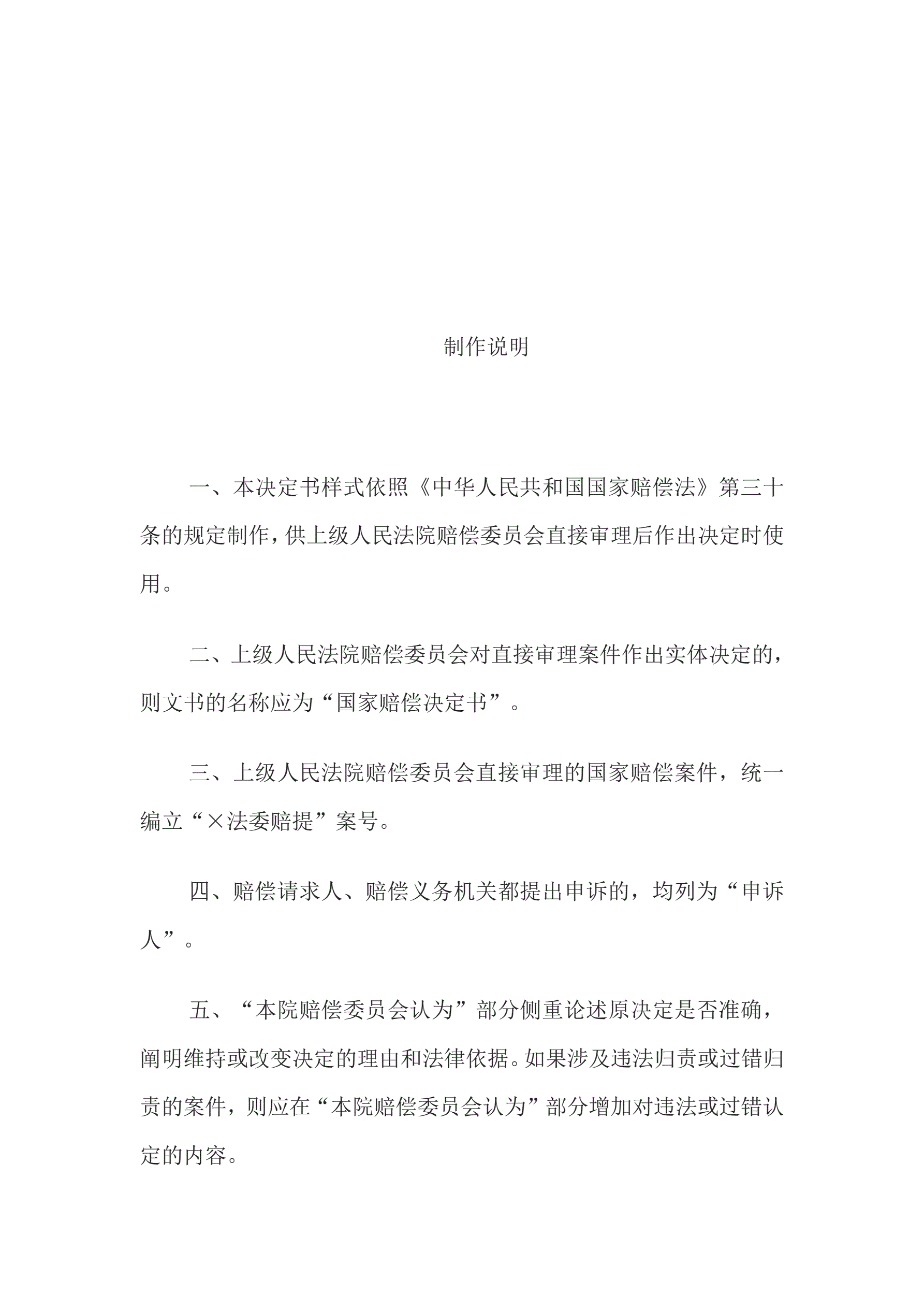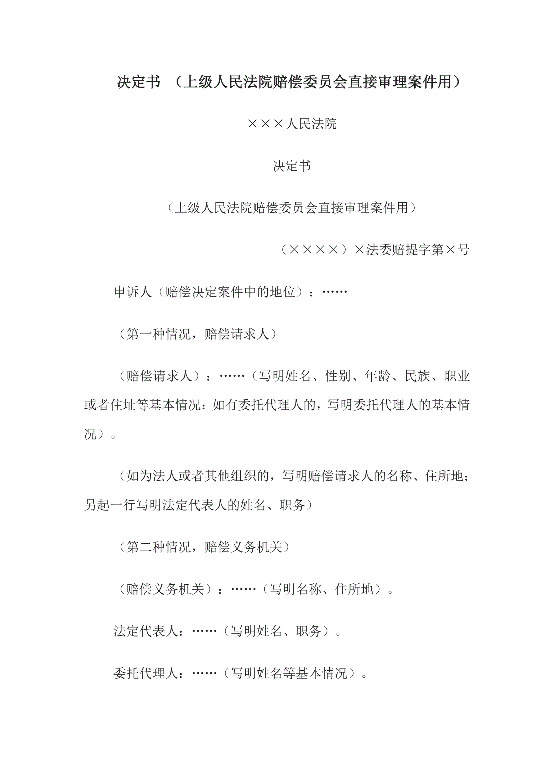 >决定书(上级人民法院赔偿委员会直接审理案件用)