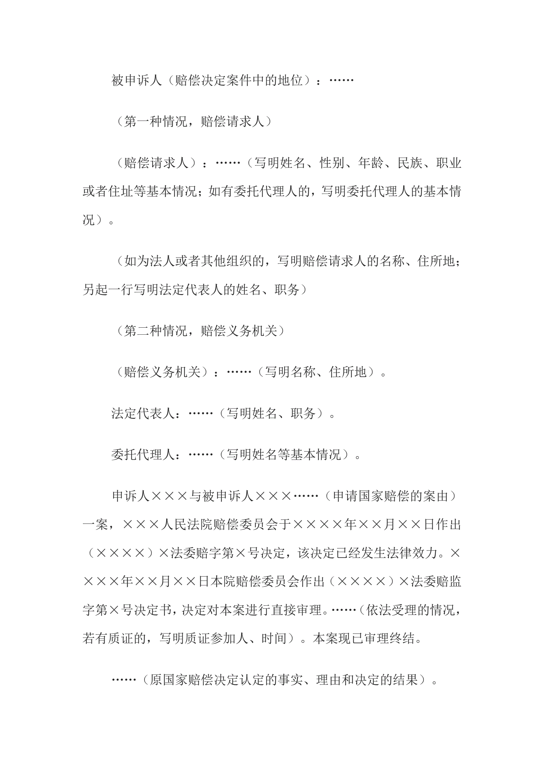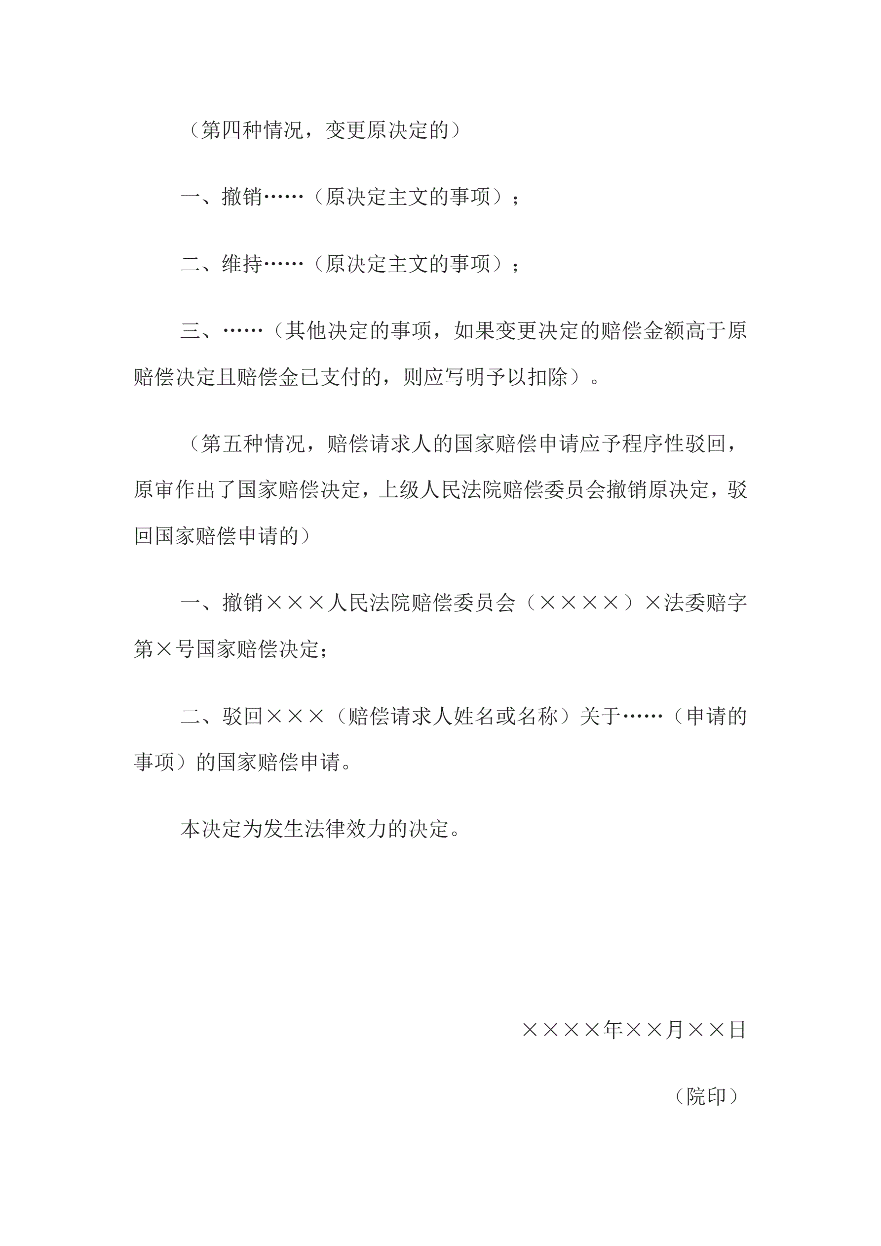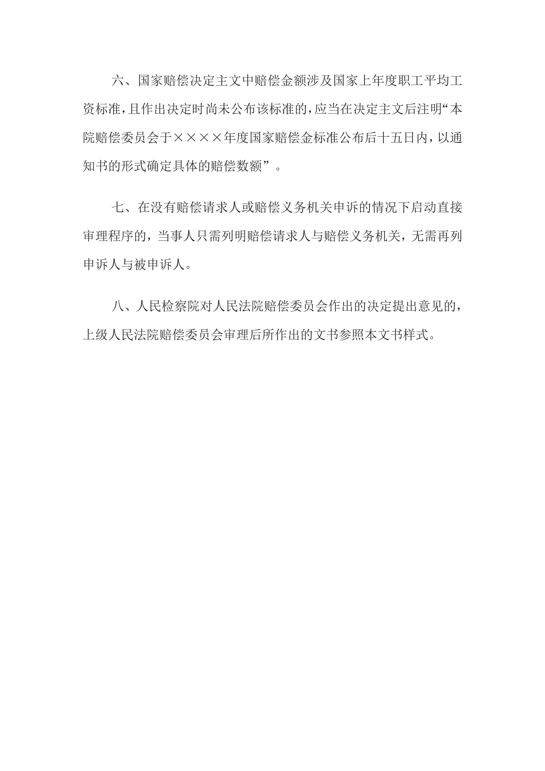>决定书(上级人民法院赔偿委员会直接审理案件用)