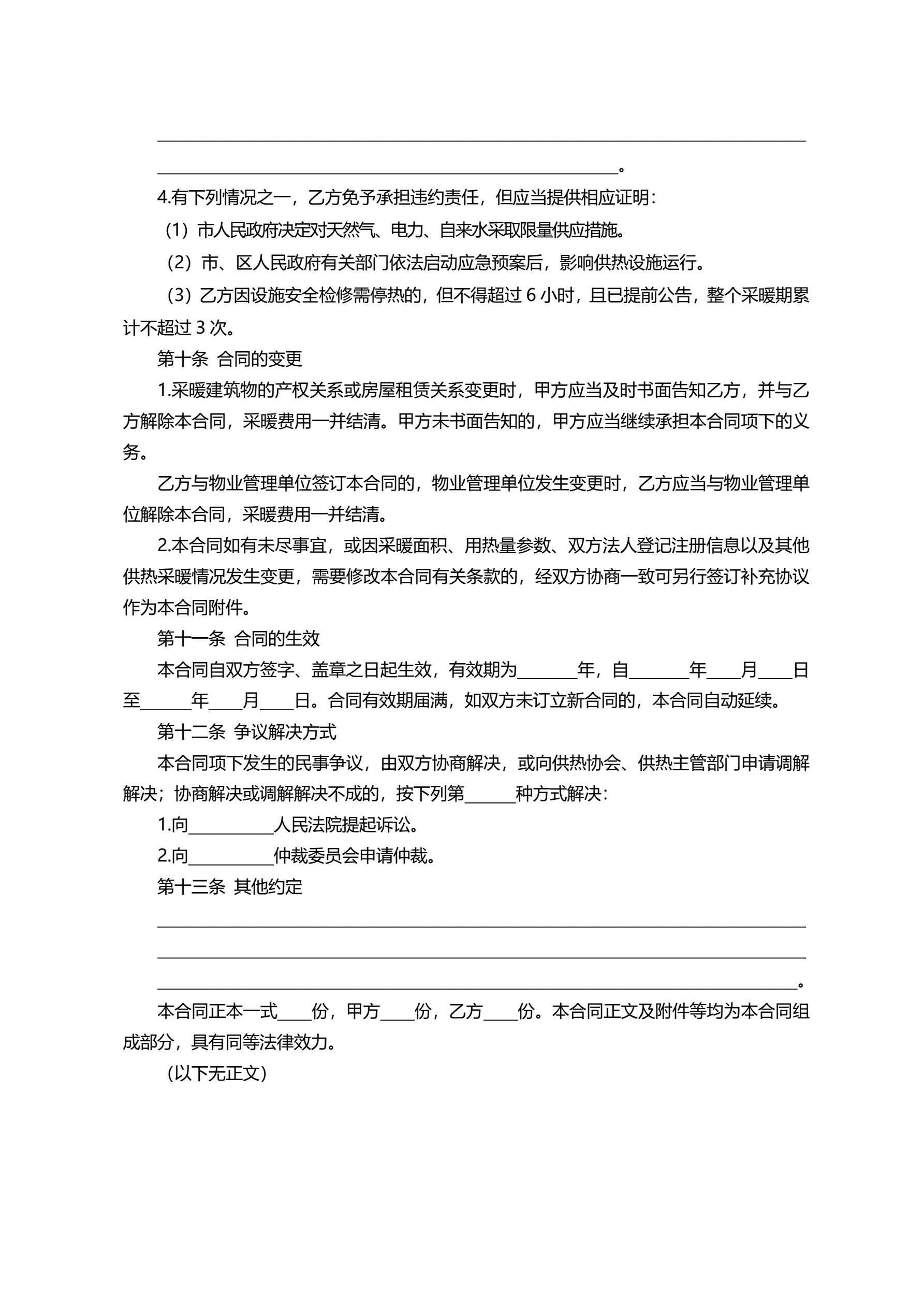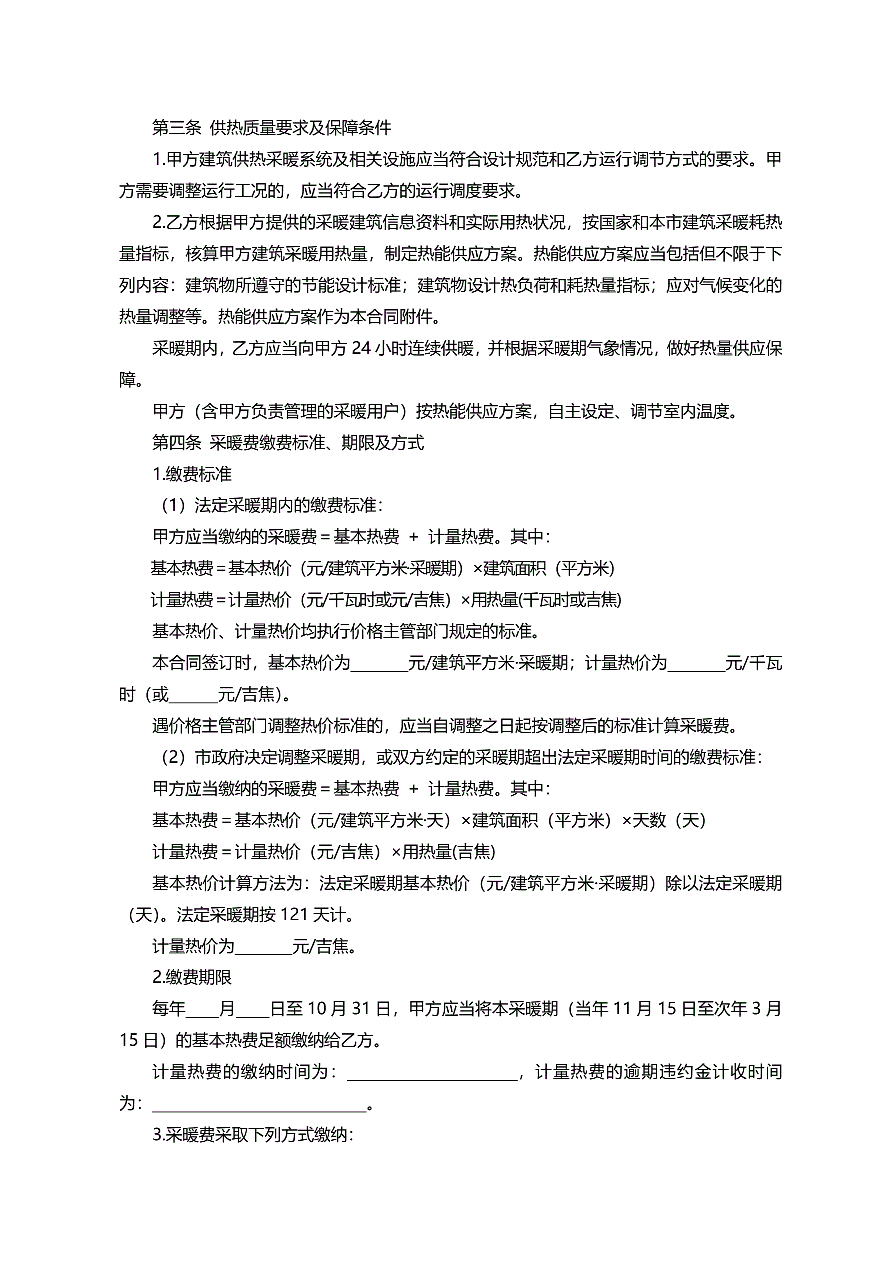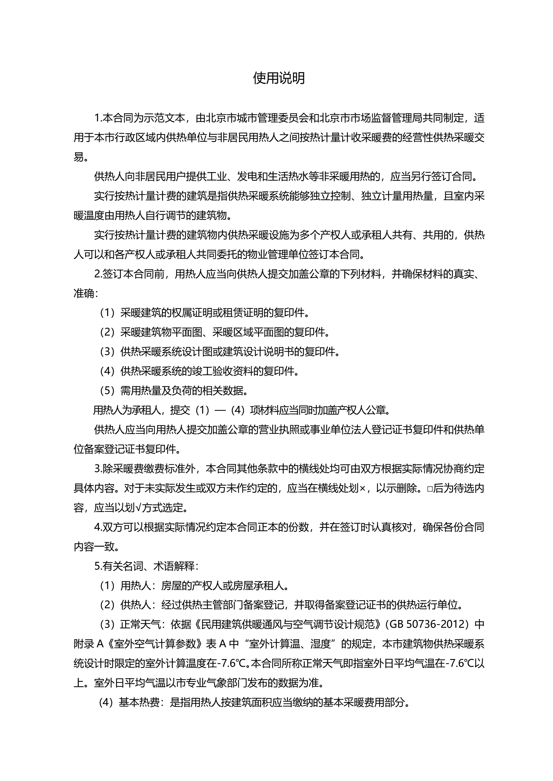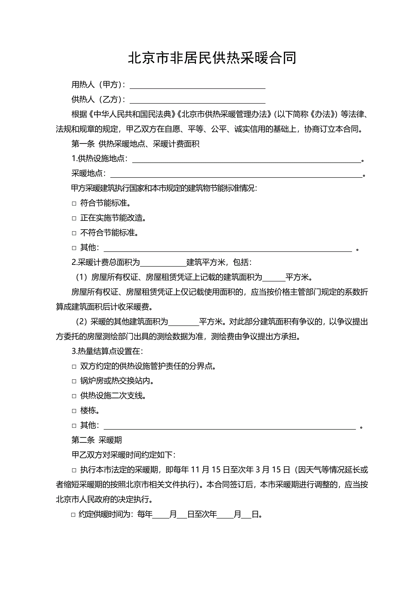 >北京市非居民供热采暖合同