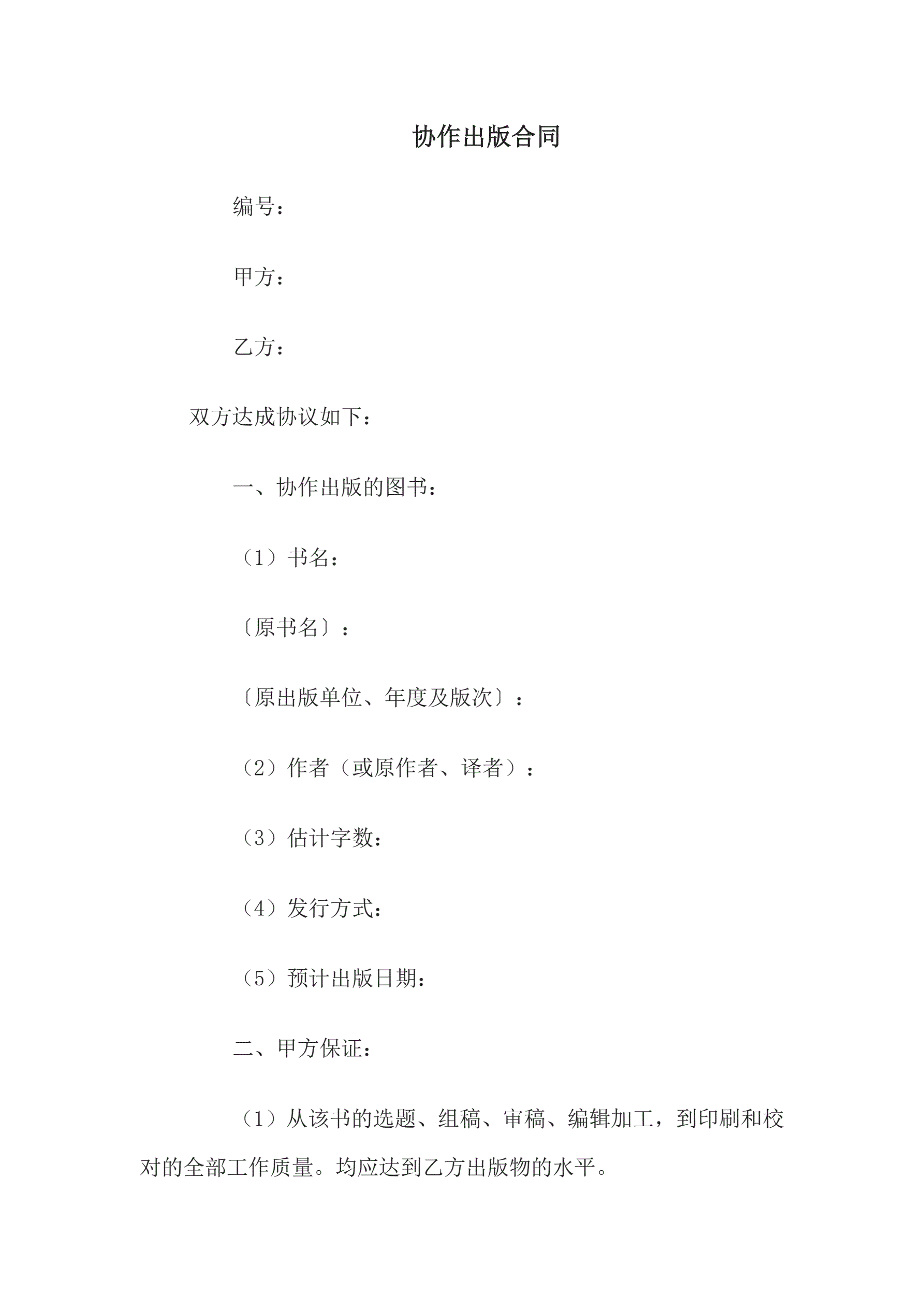 合同名称:协作出版合同