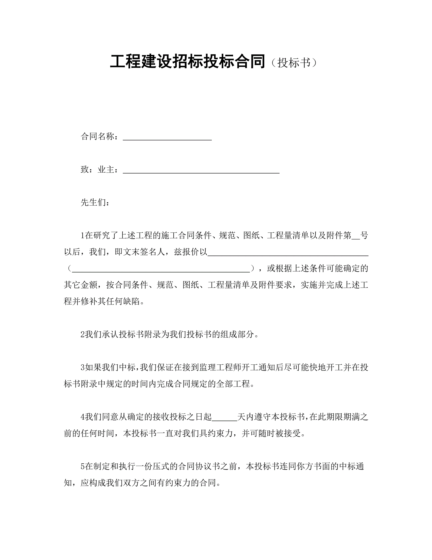>工程建设招标投标合同(投标书)