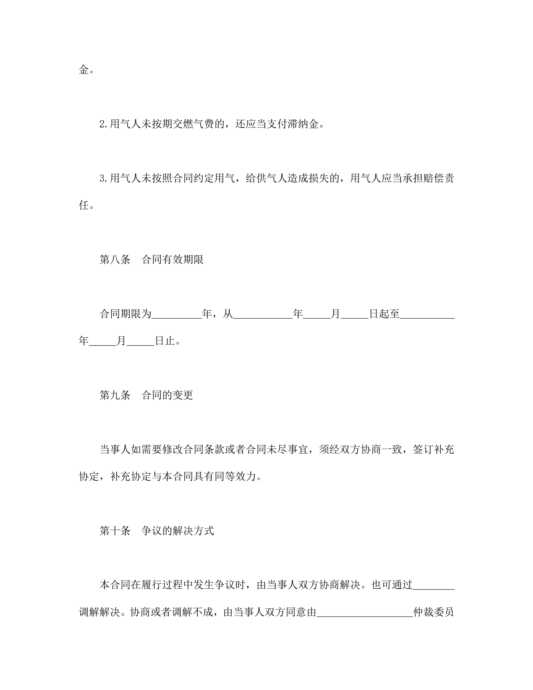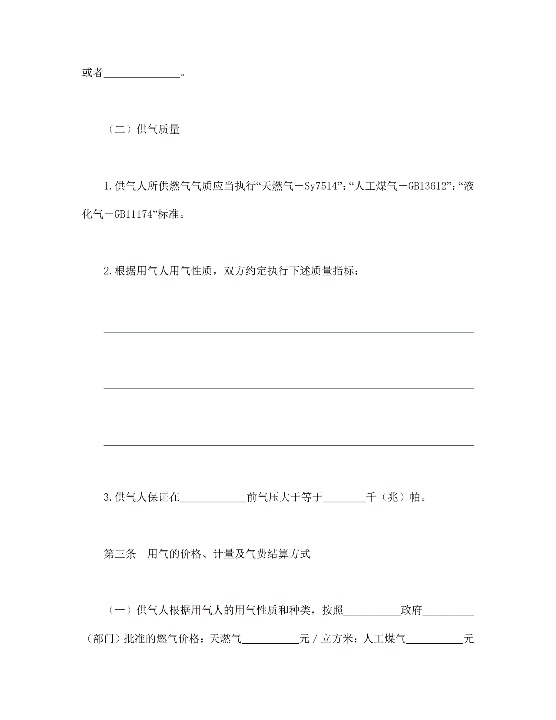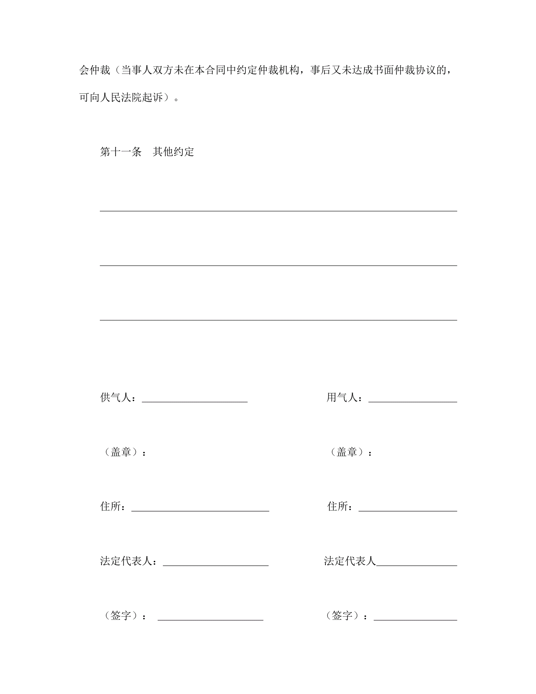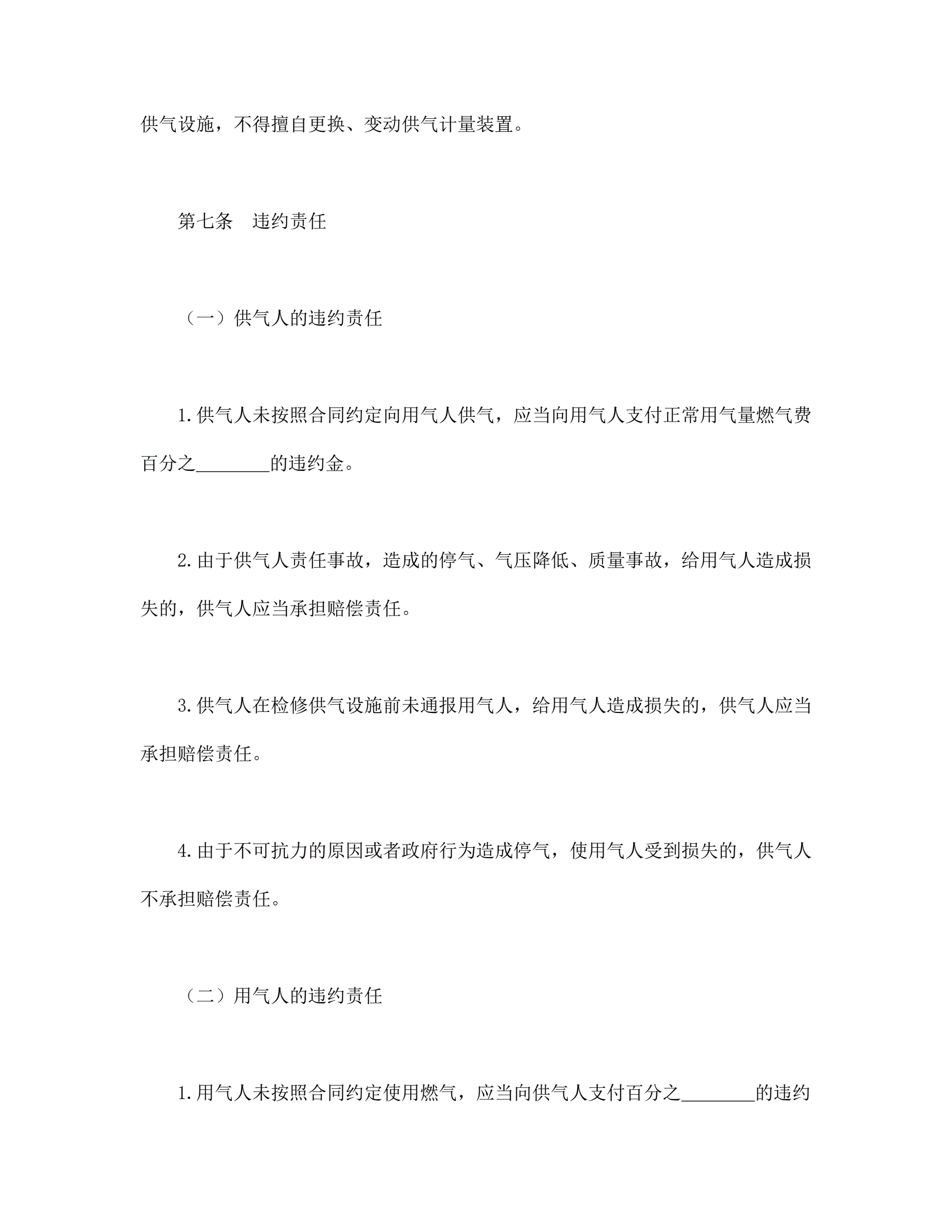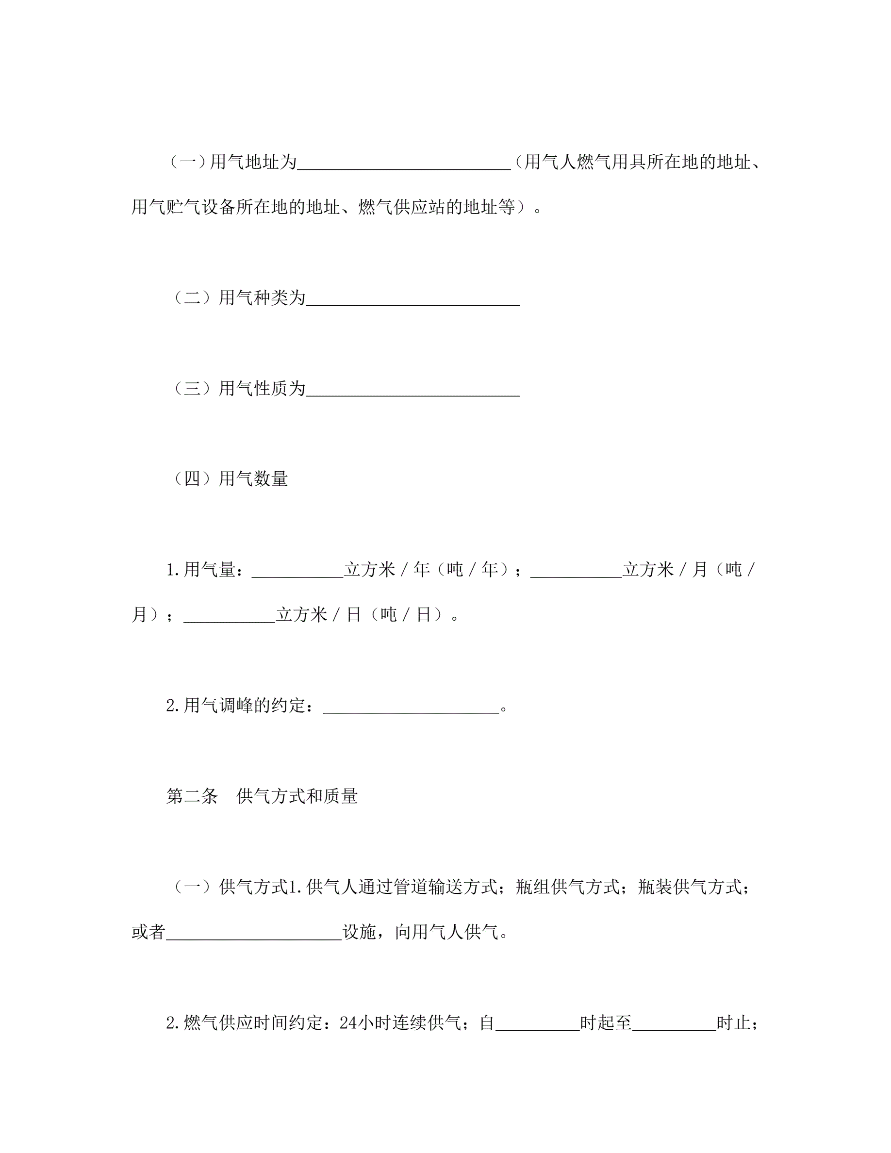 城市供用气合同(示范文本)