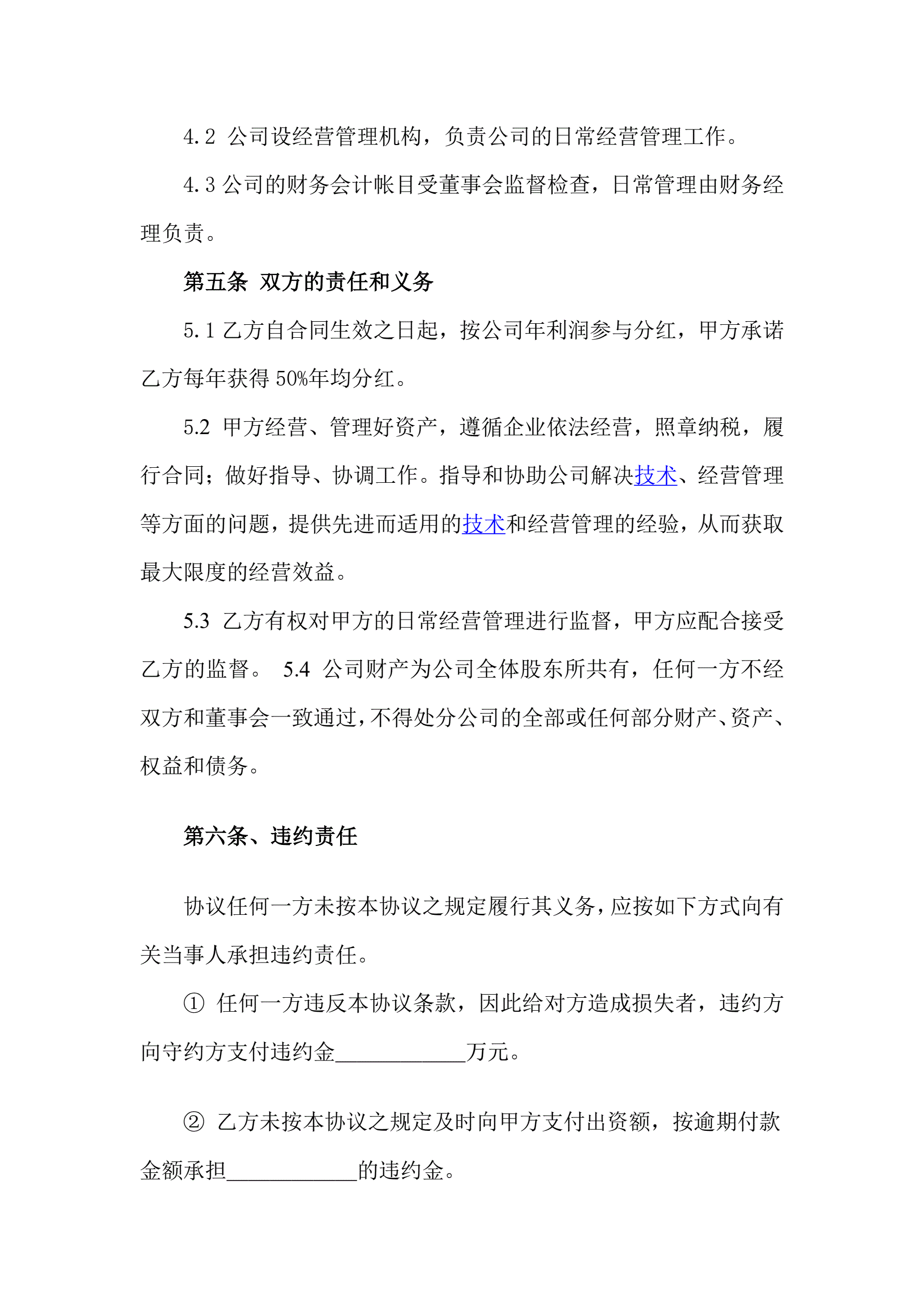 >资金入股合作协议