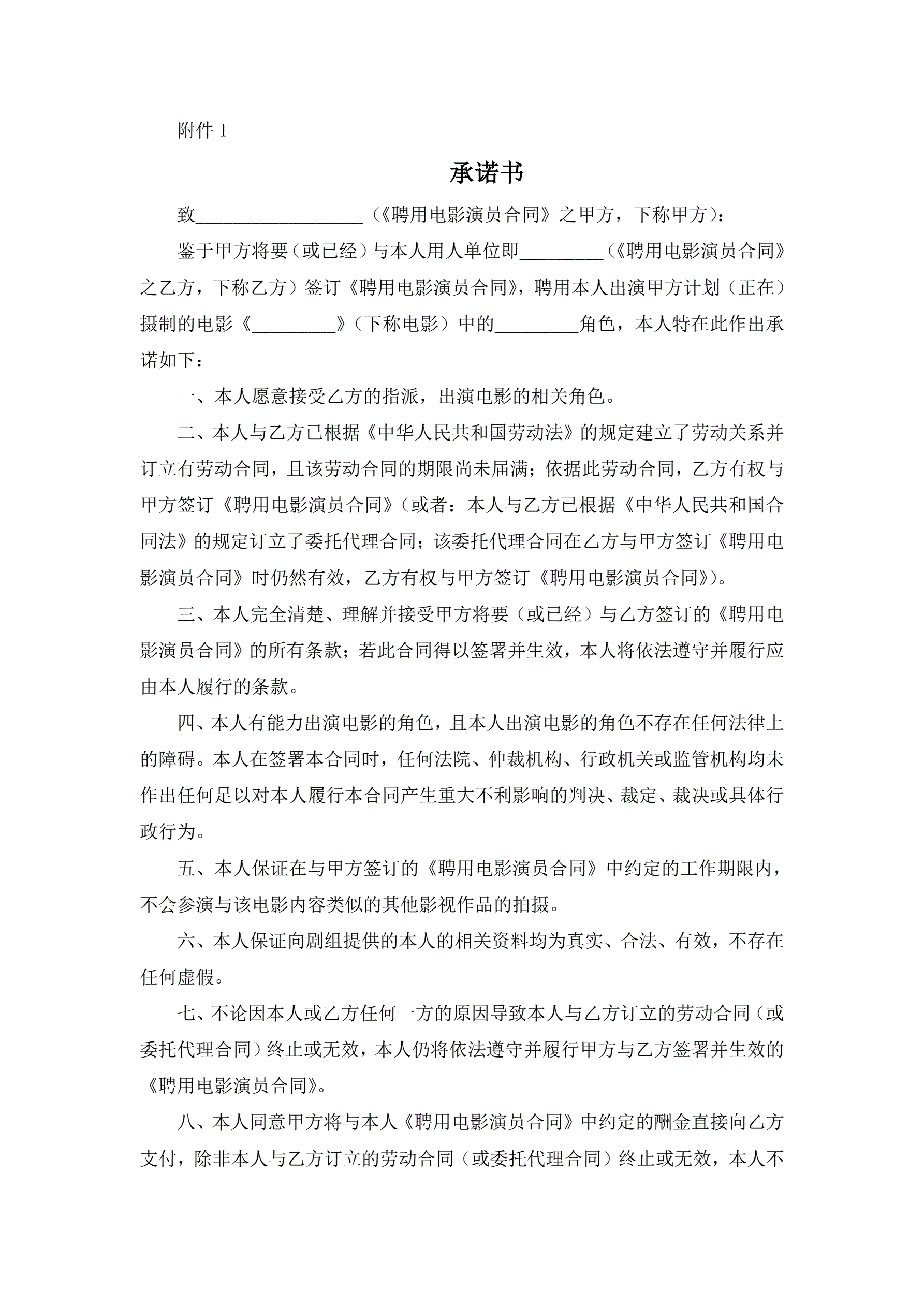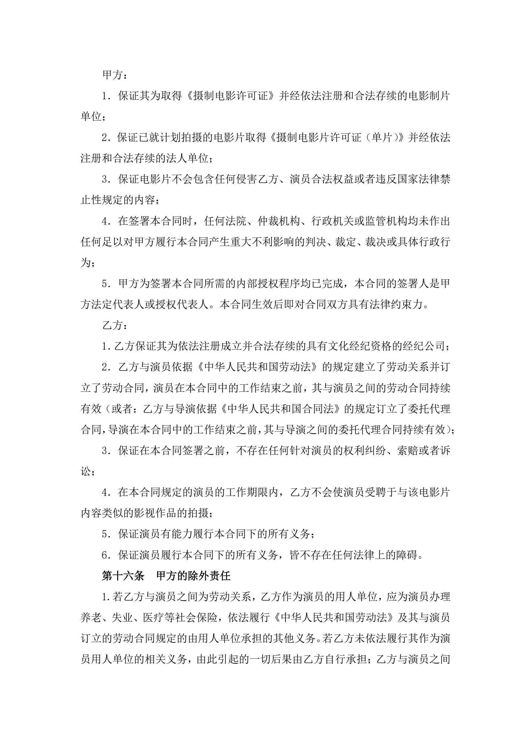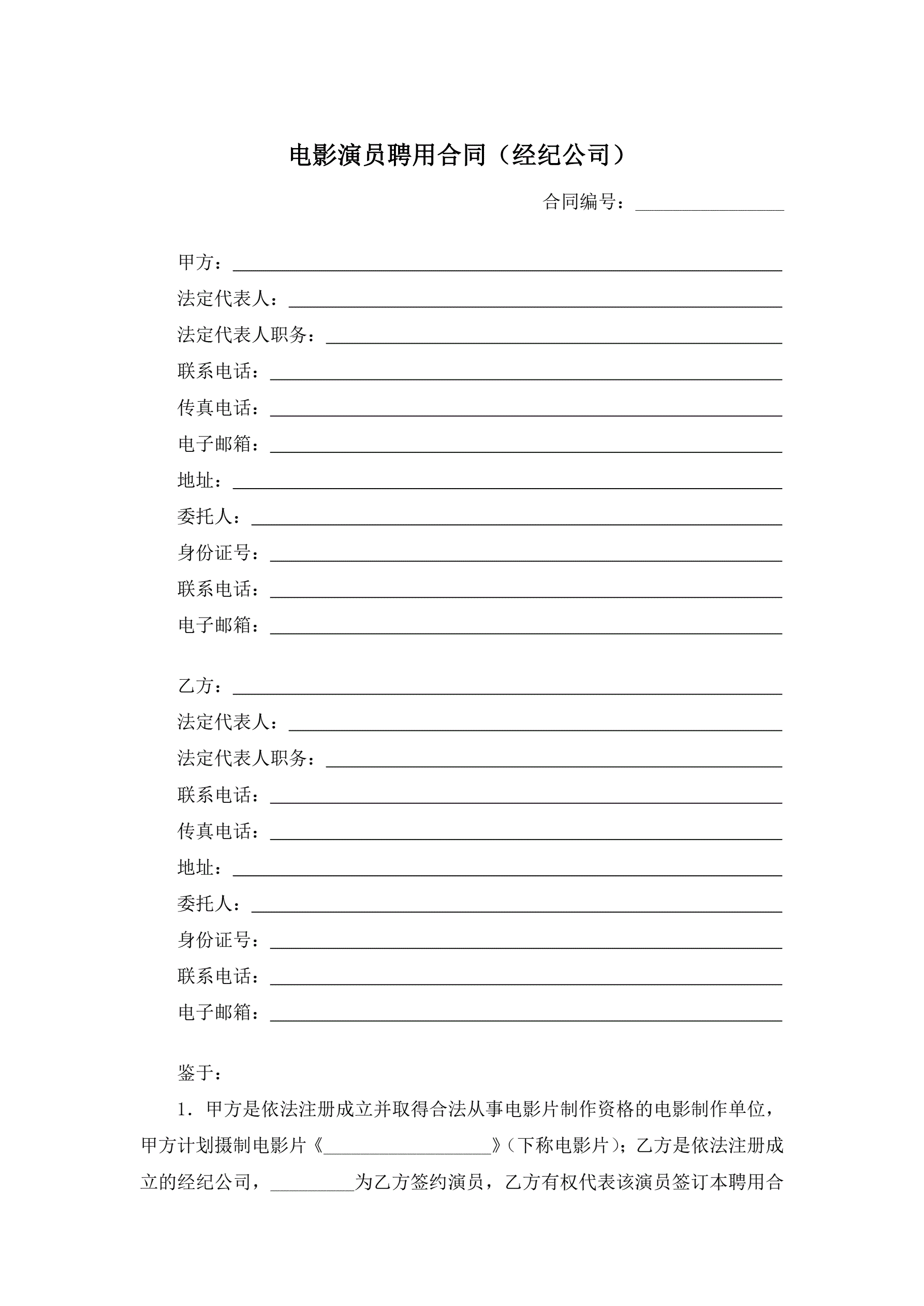 电影演员聘用合同(经纪公司)