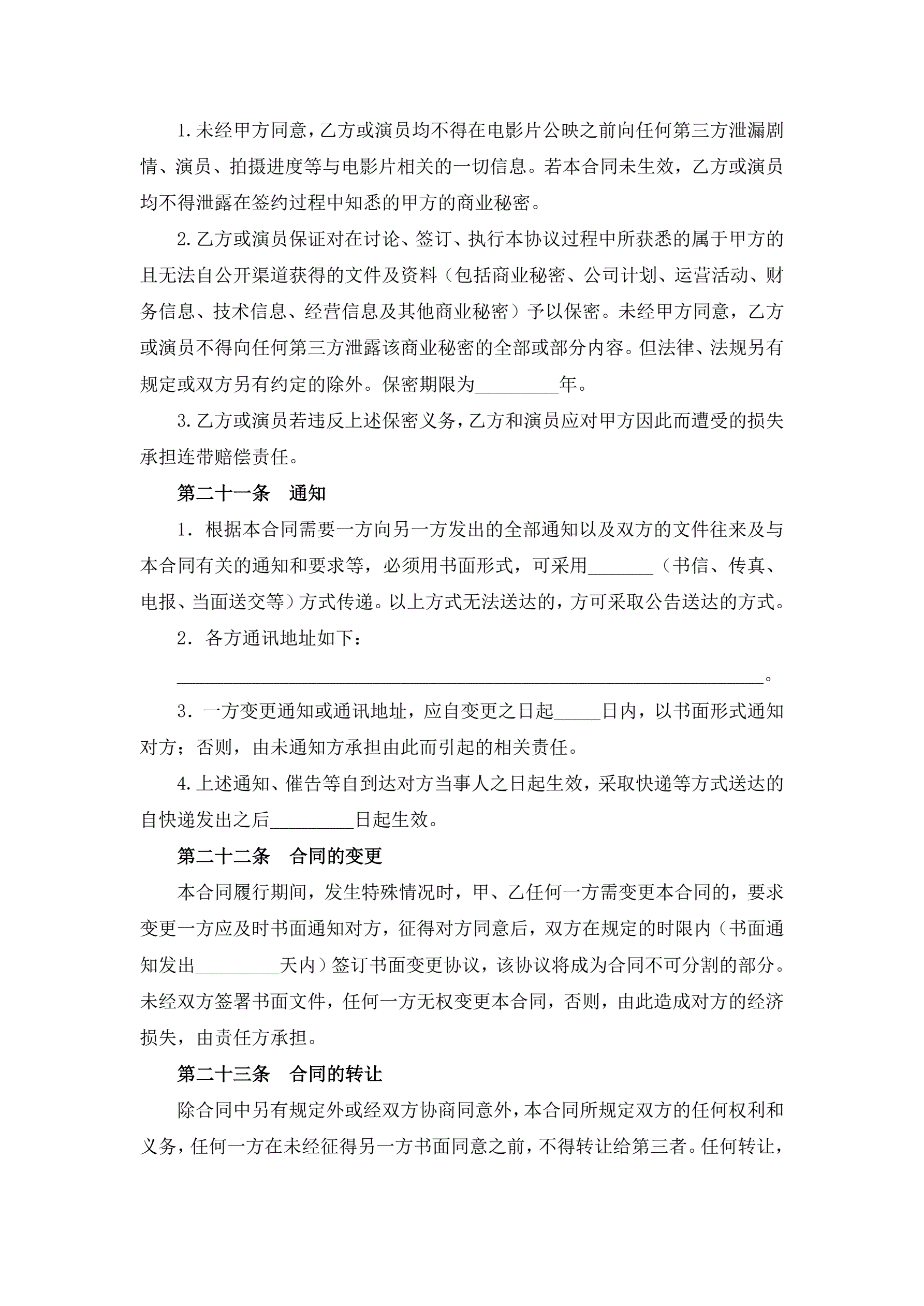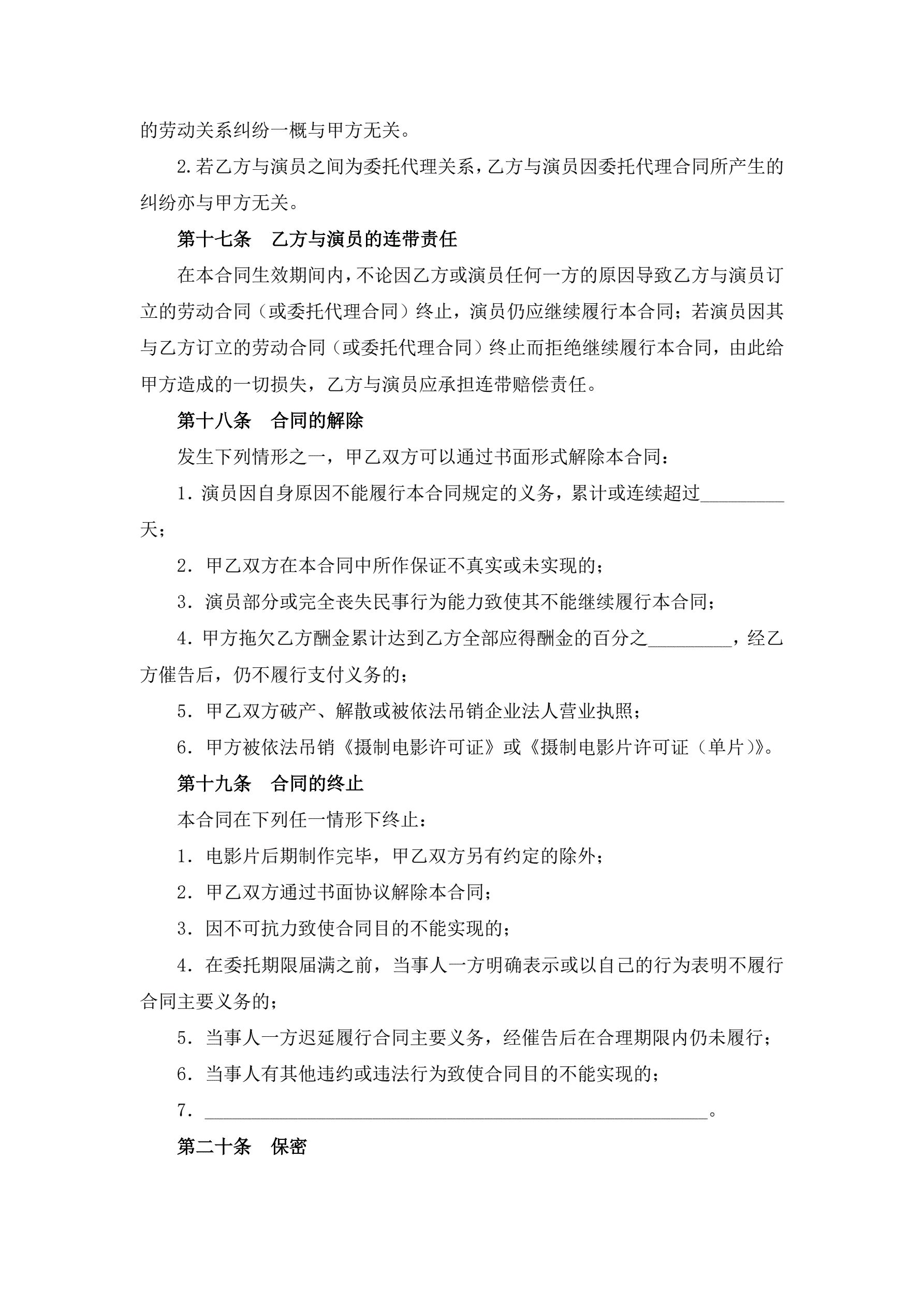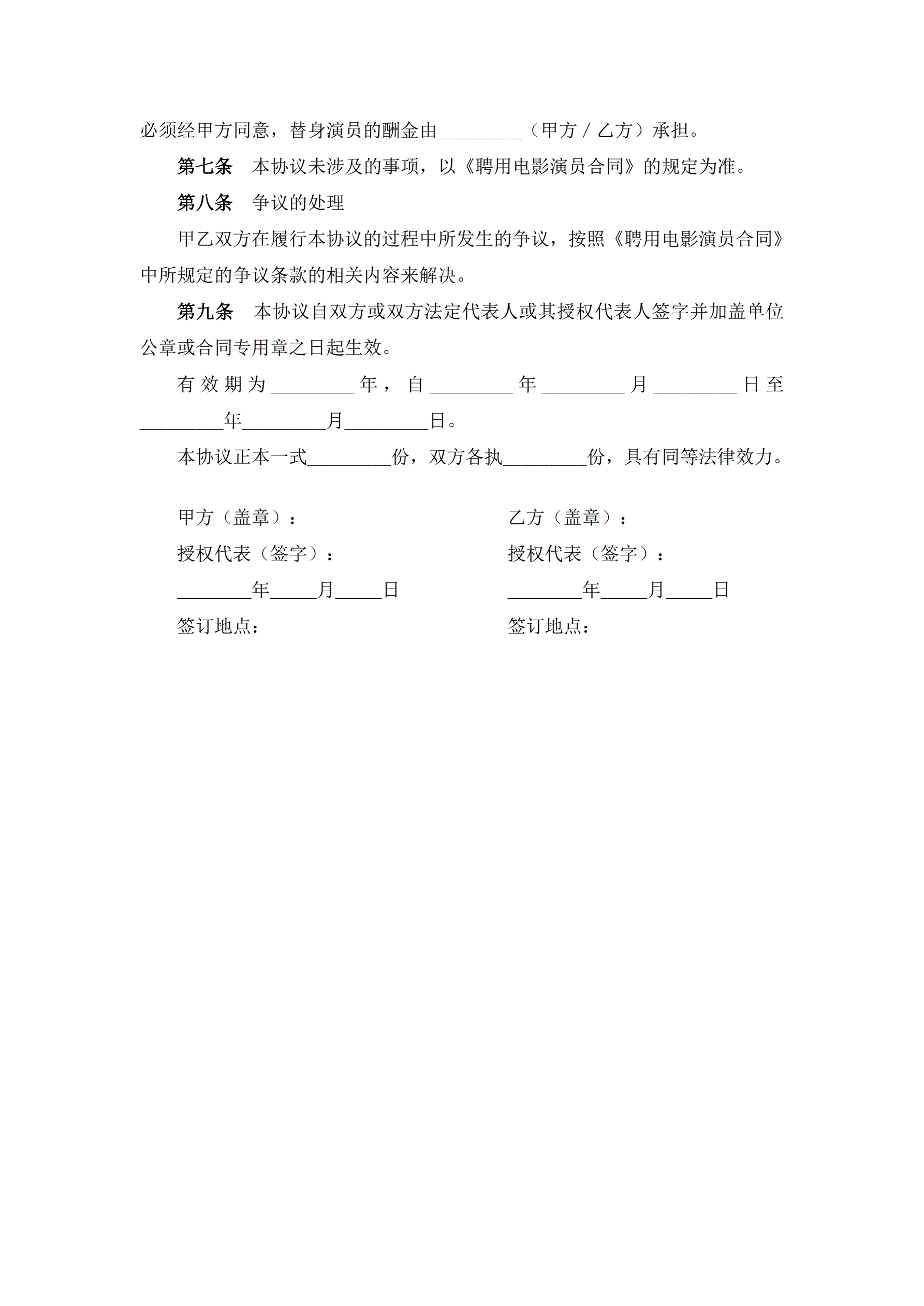 电影演员聘用合同(经纪公司)