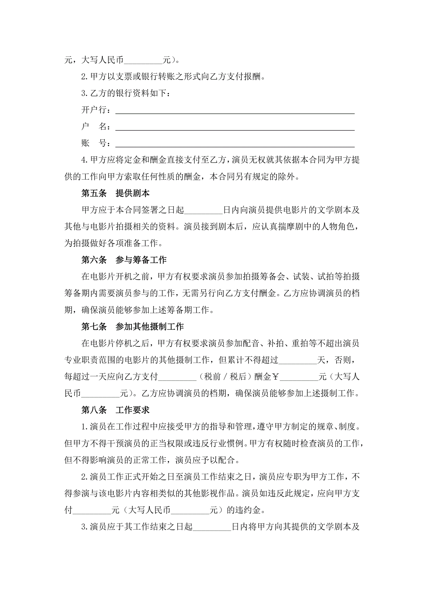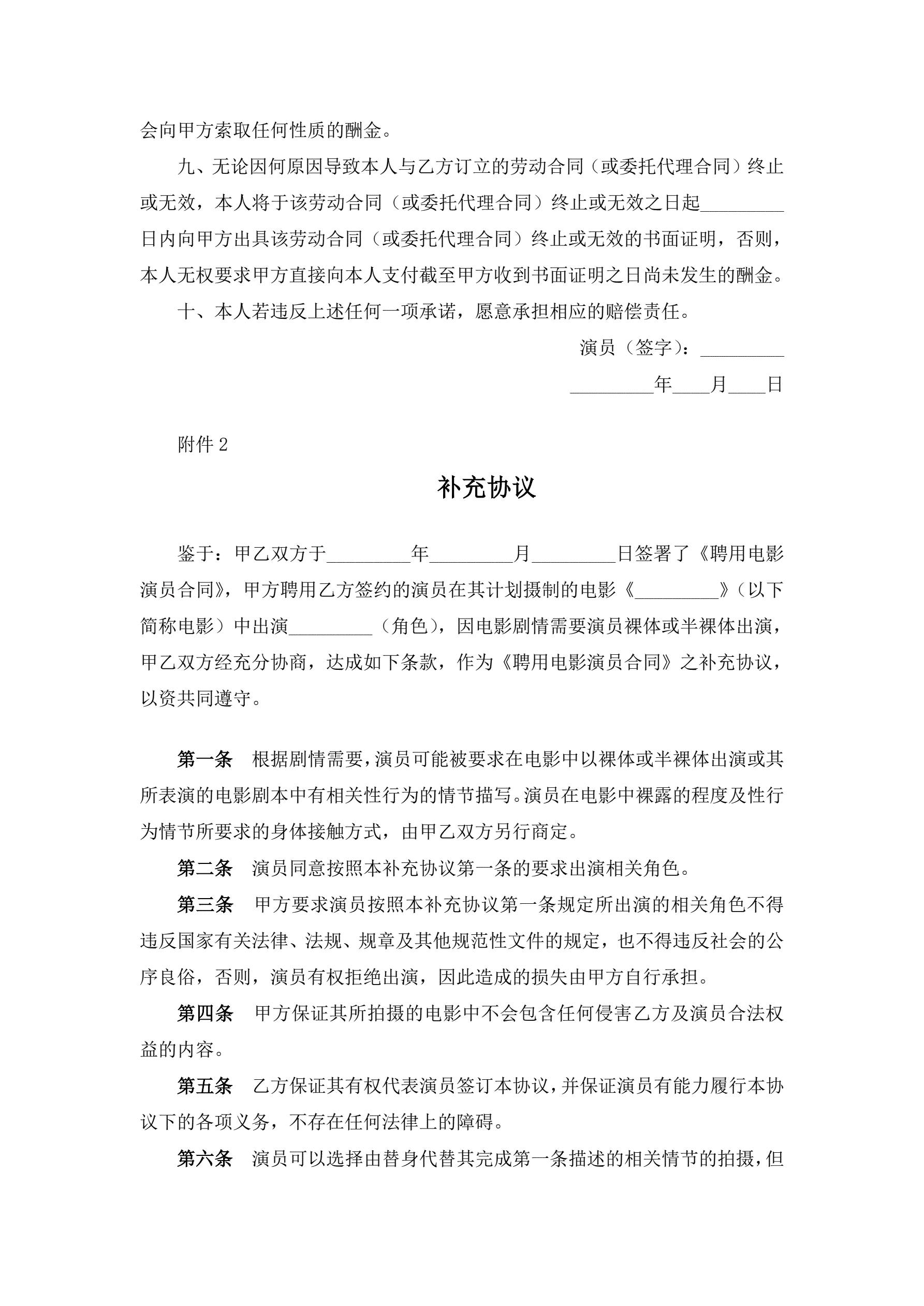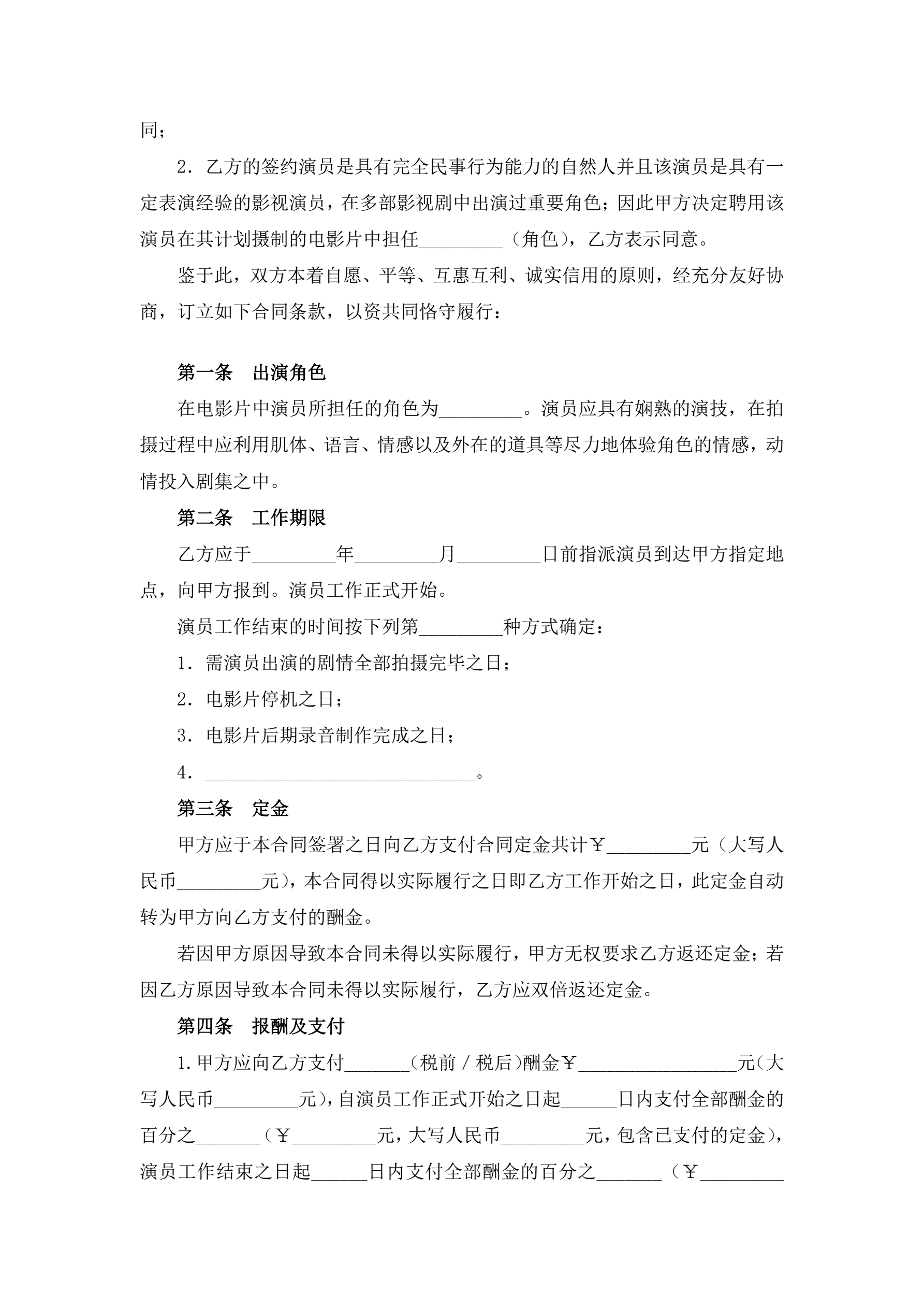 >电影演员聘用合同(经纪公司)