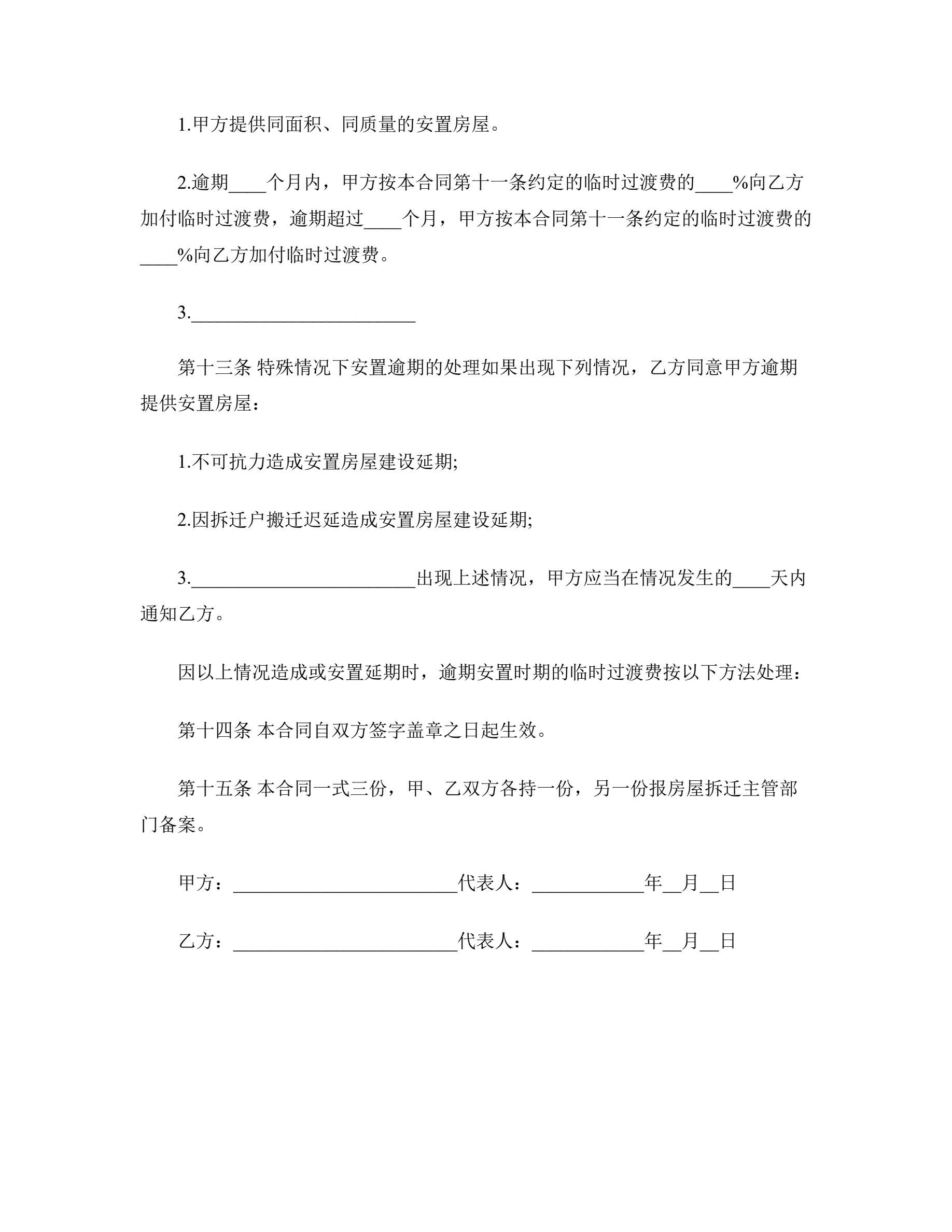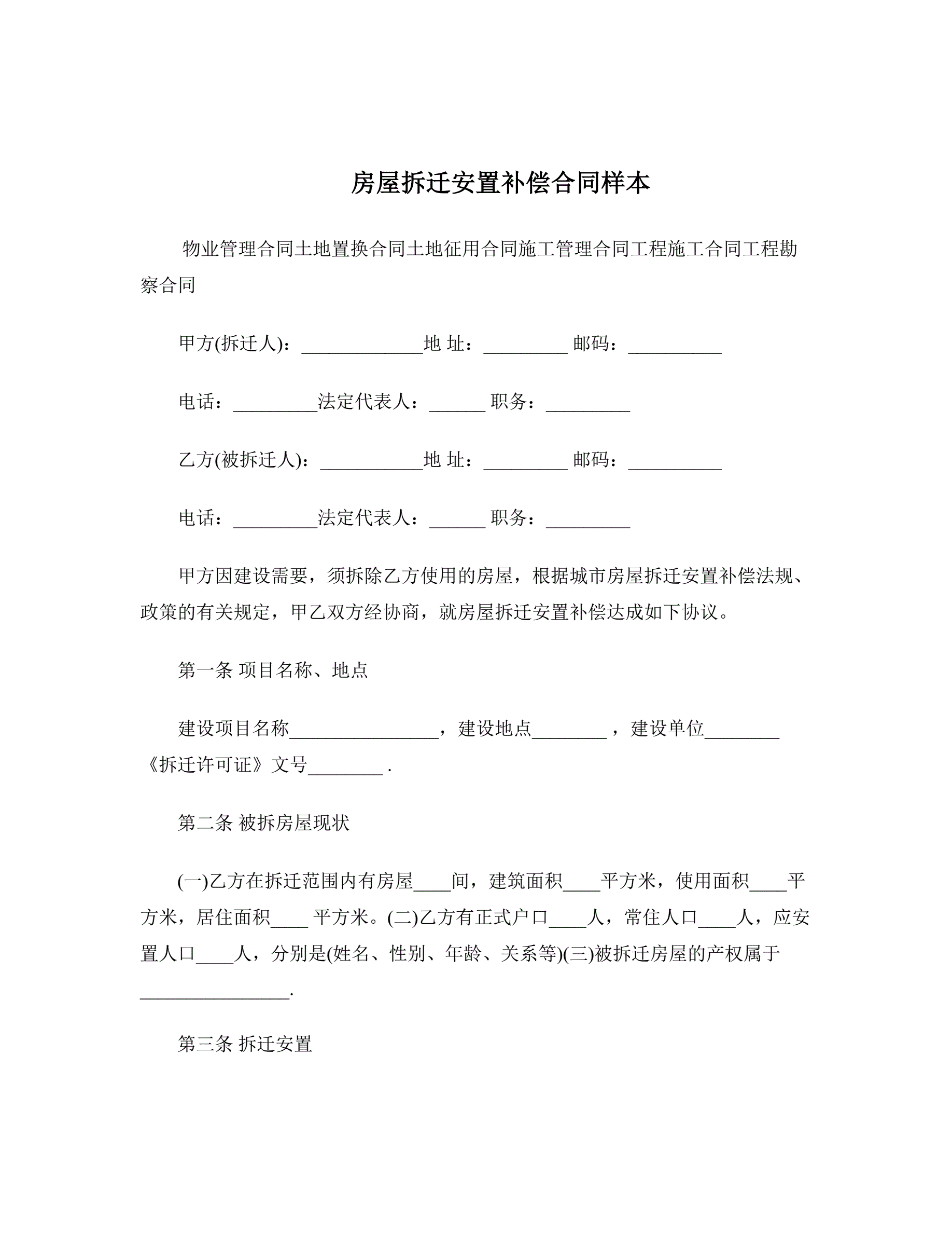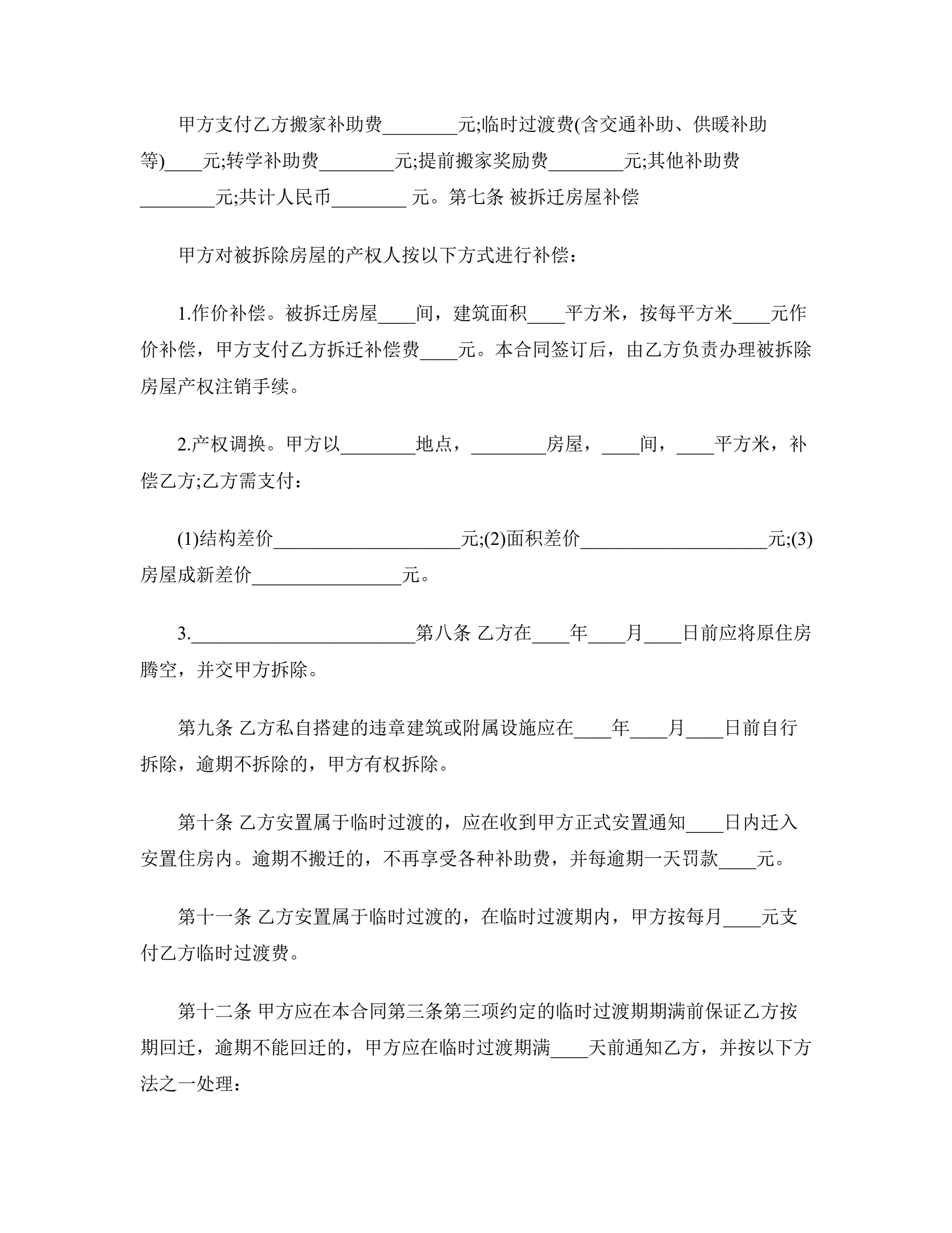 房屋拆迁安置补偿合同样本