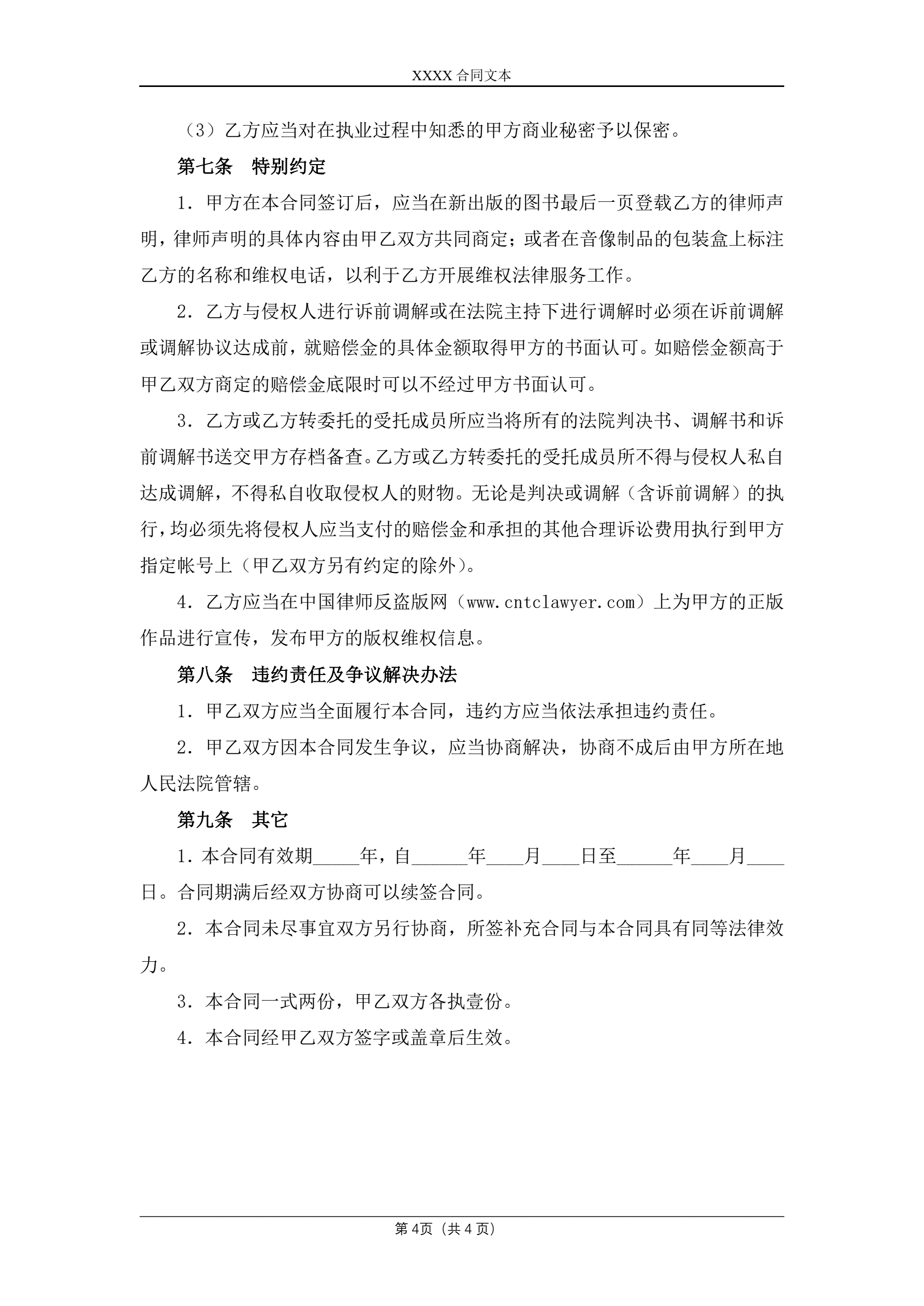 >法律服务合同(著作权保护)