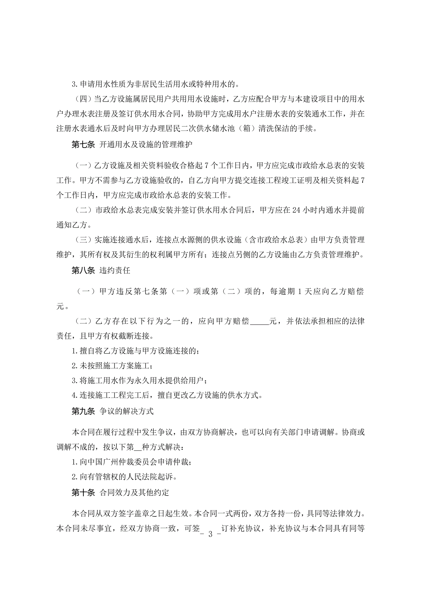>广州市供水用水设施连接合同(2017版)
