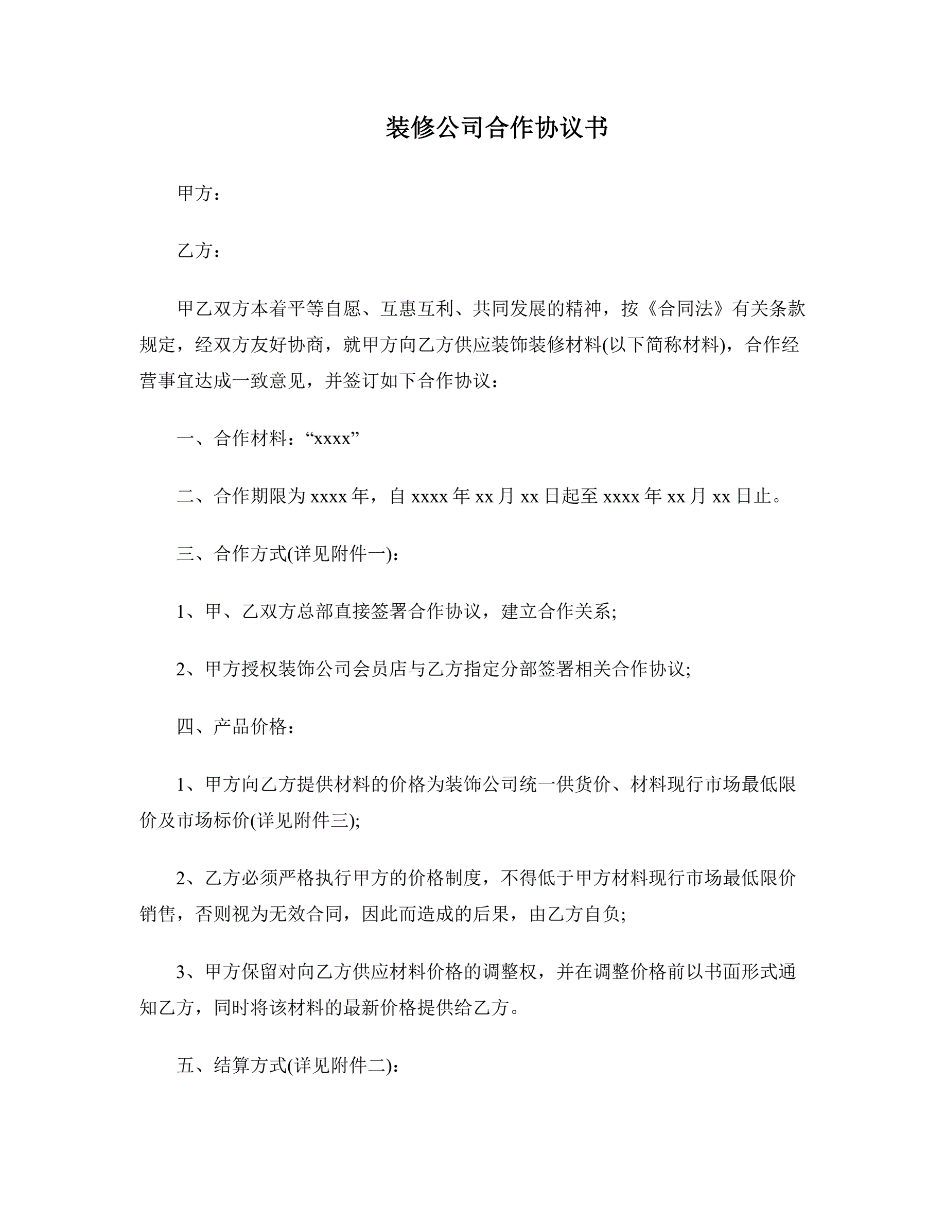 装修公司合作协议书