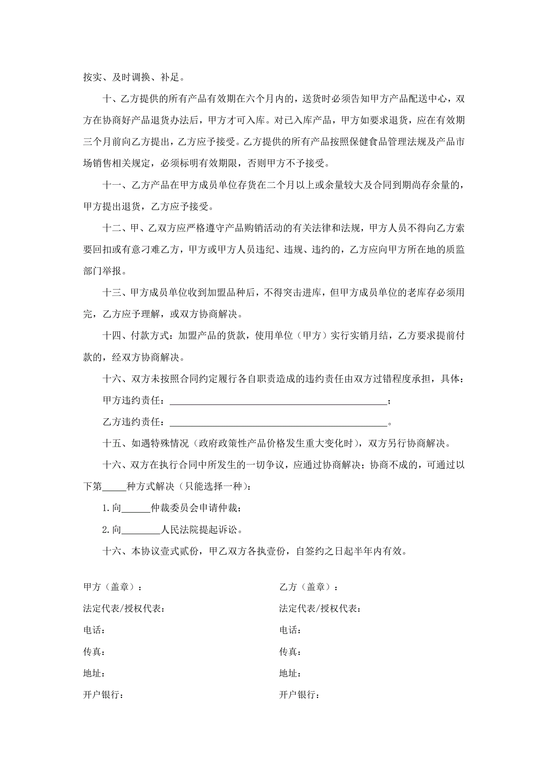 保健食品加盟购销协议