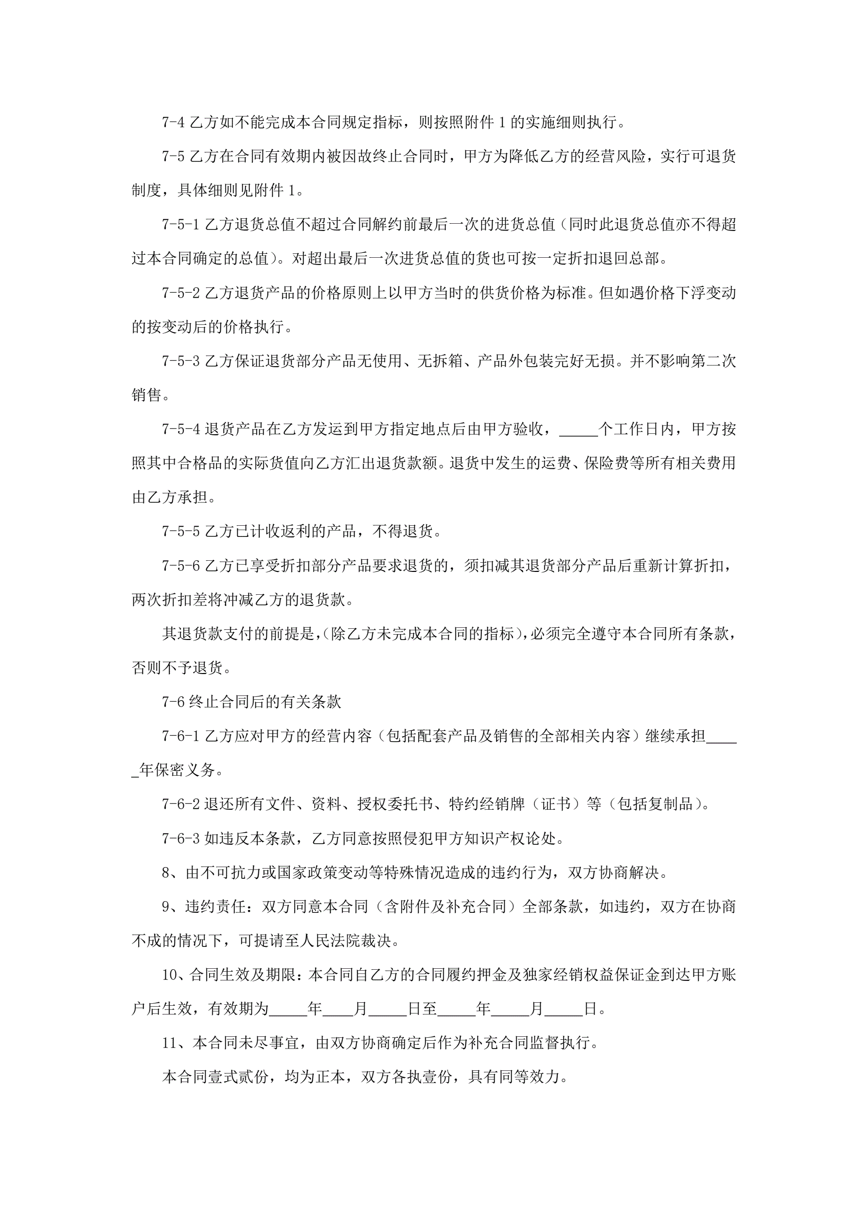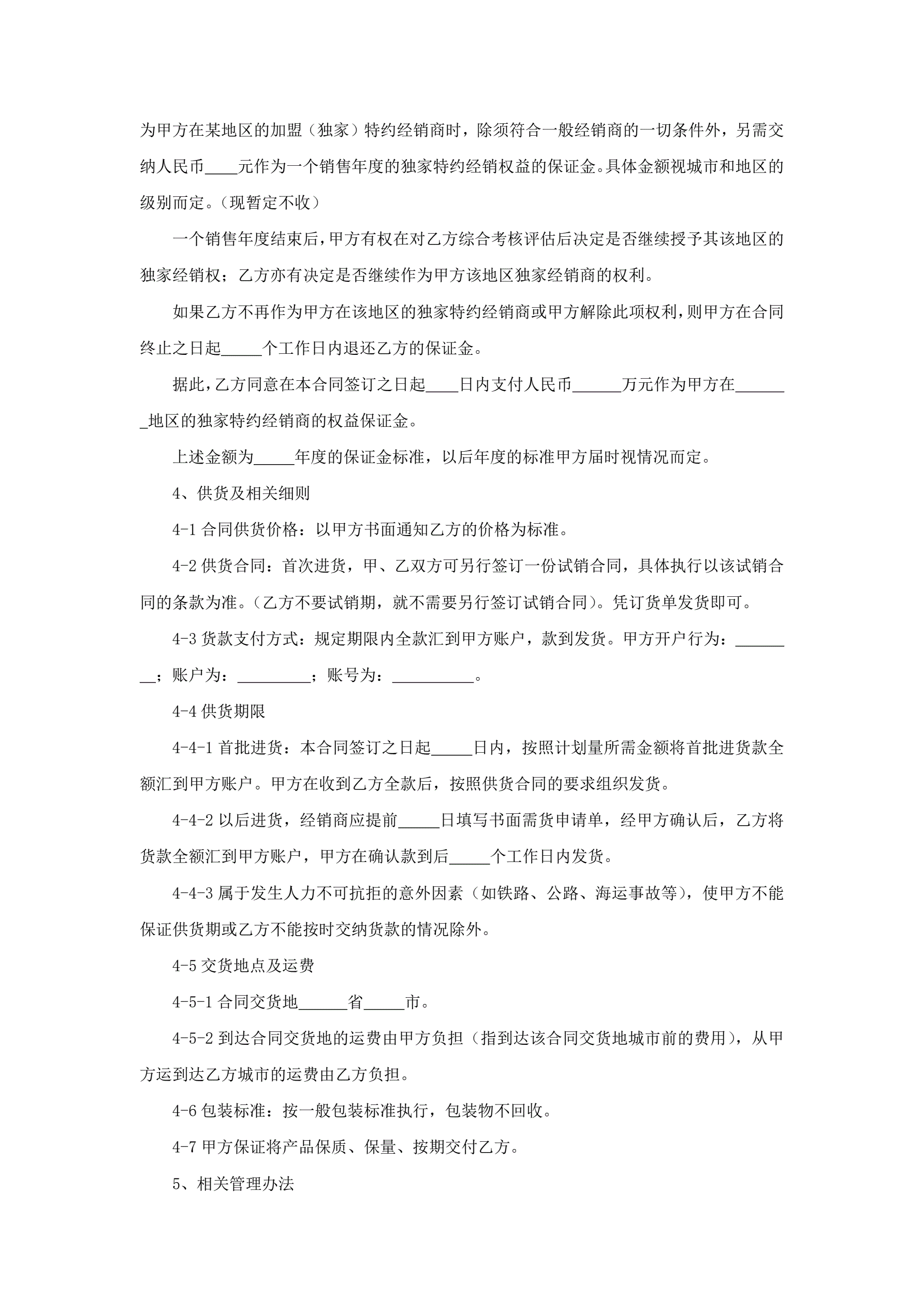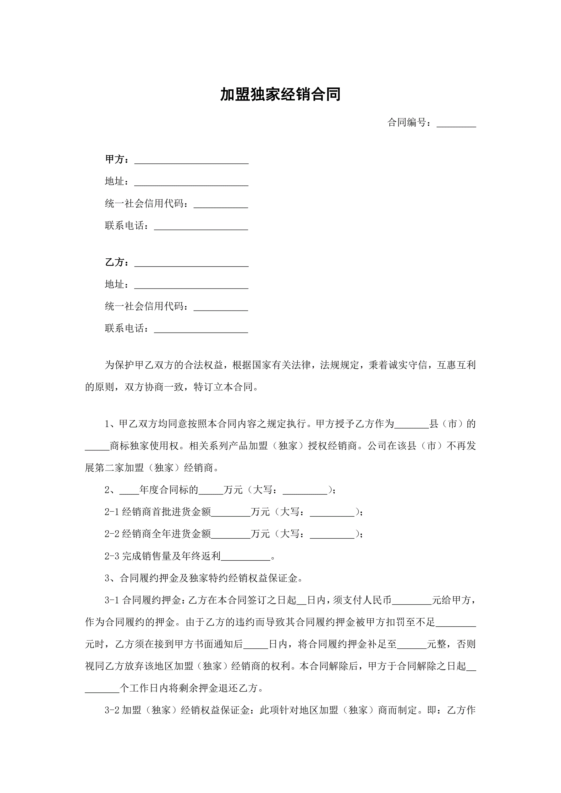 加盟独家经销合同