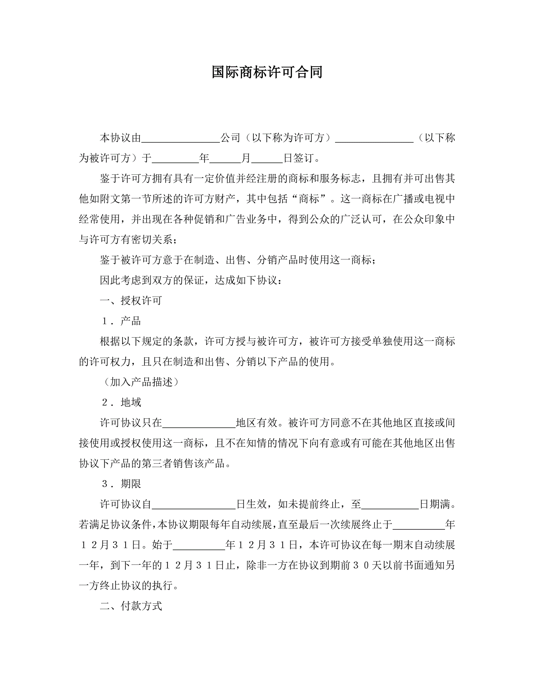 国际商标许可合同