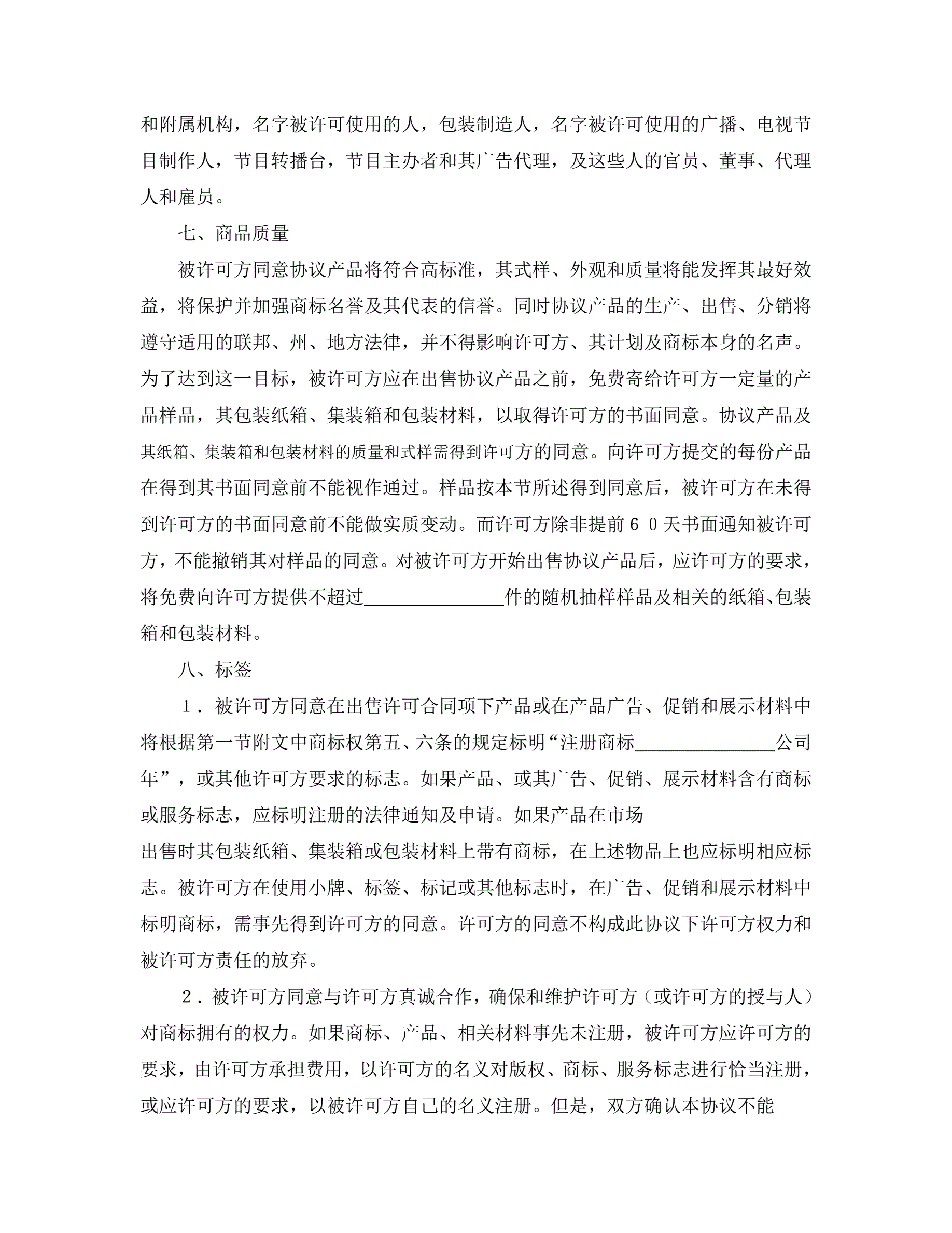 >国际商标许可合同
