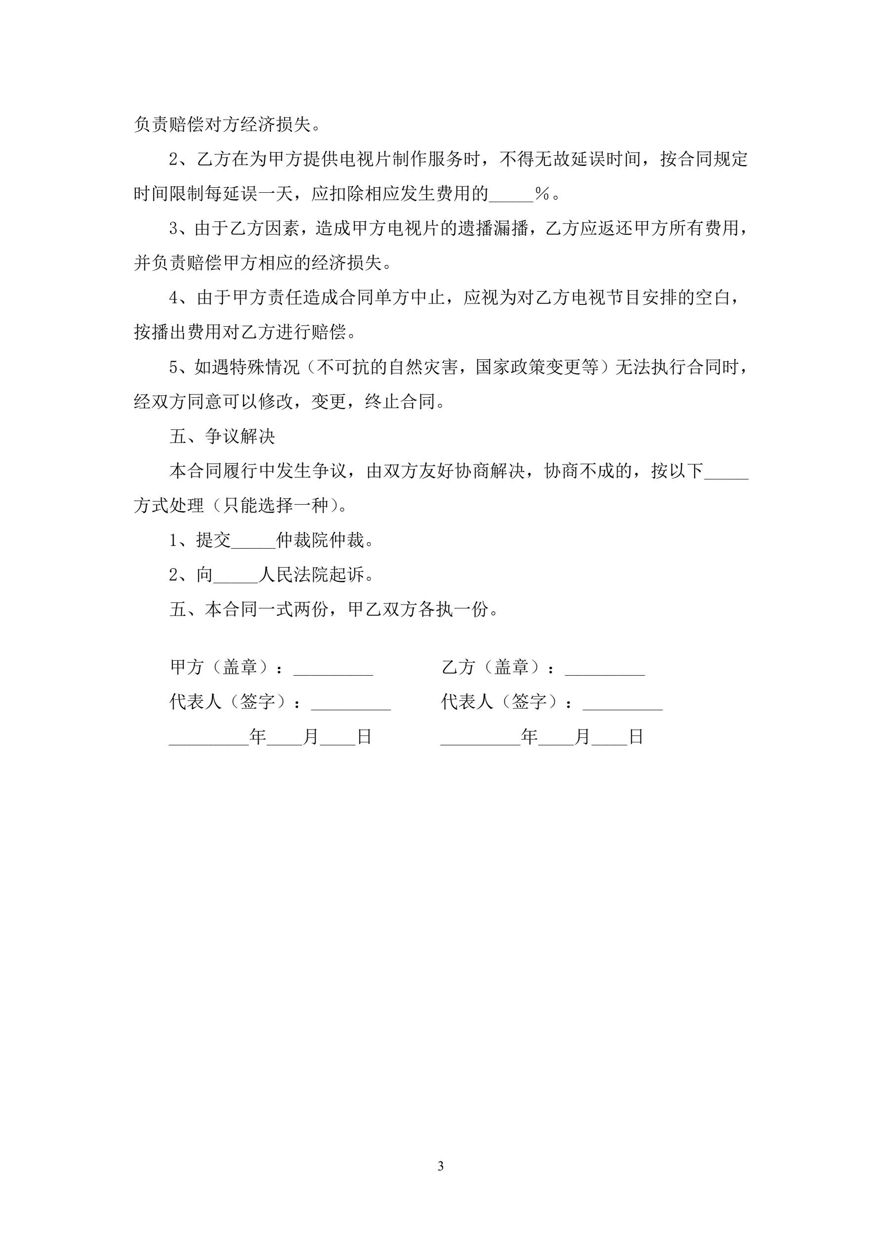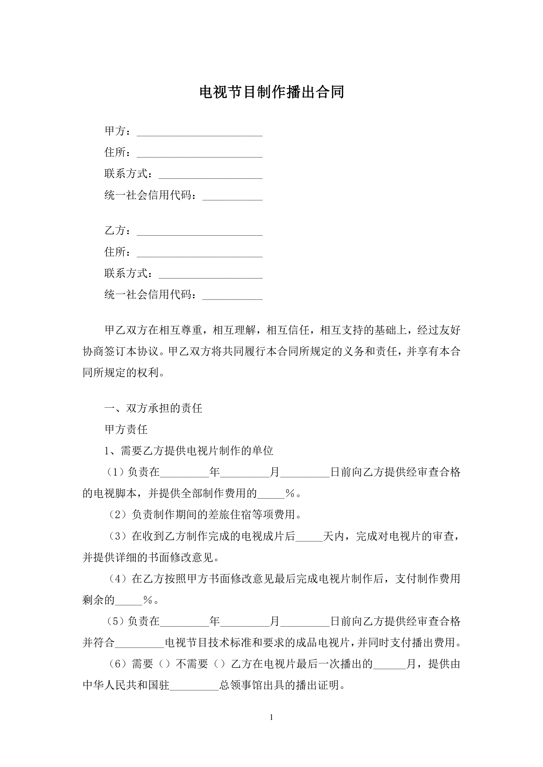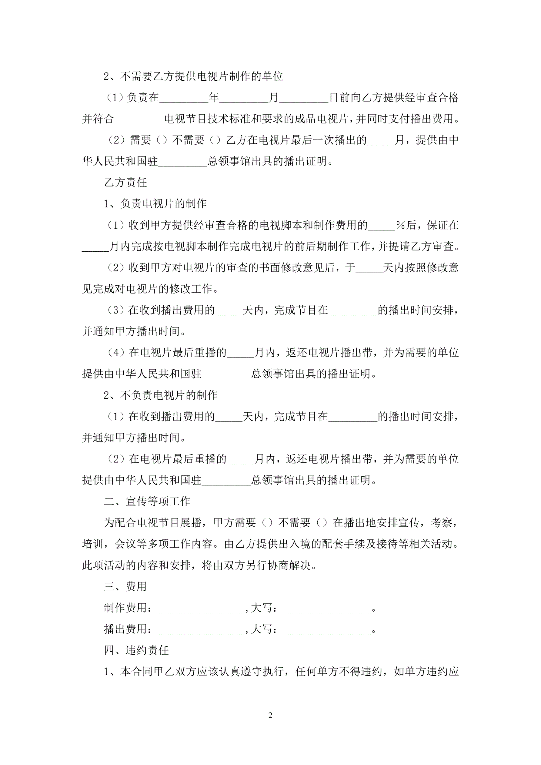 电视节目制作播出合同