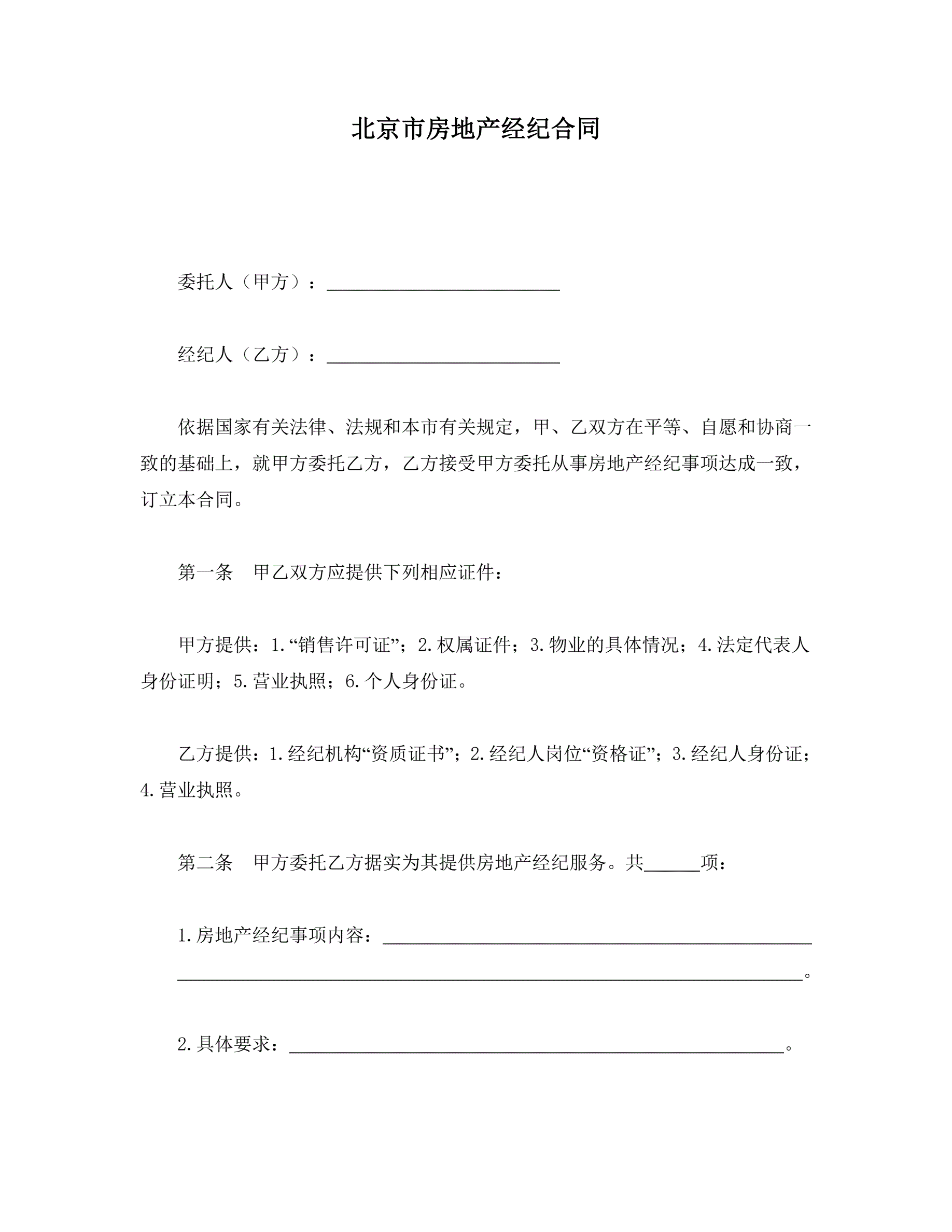 >北京市房地产经纪合同