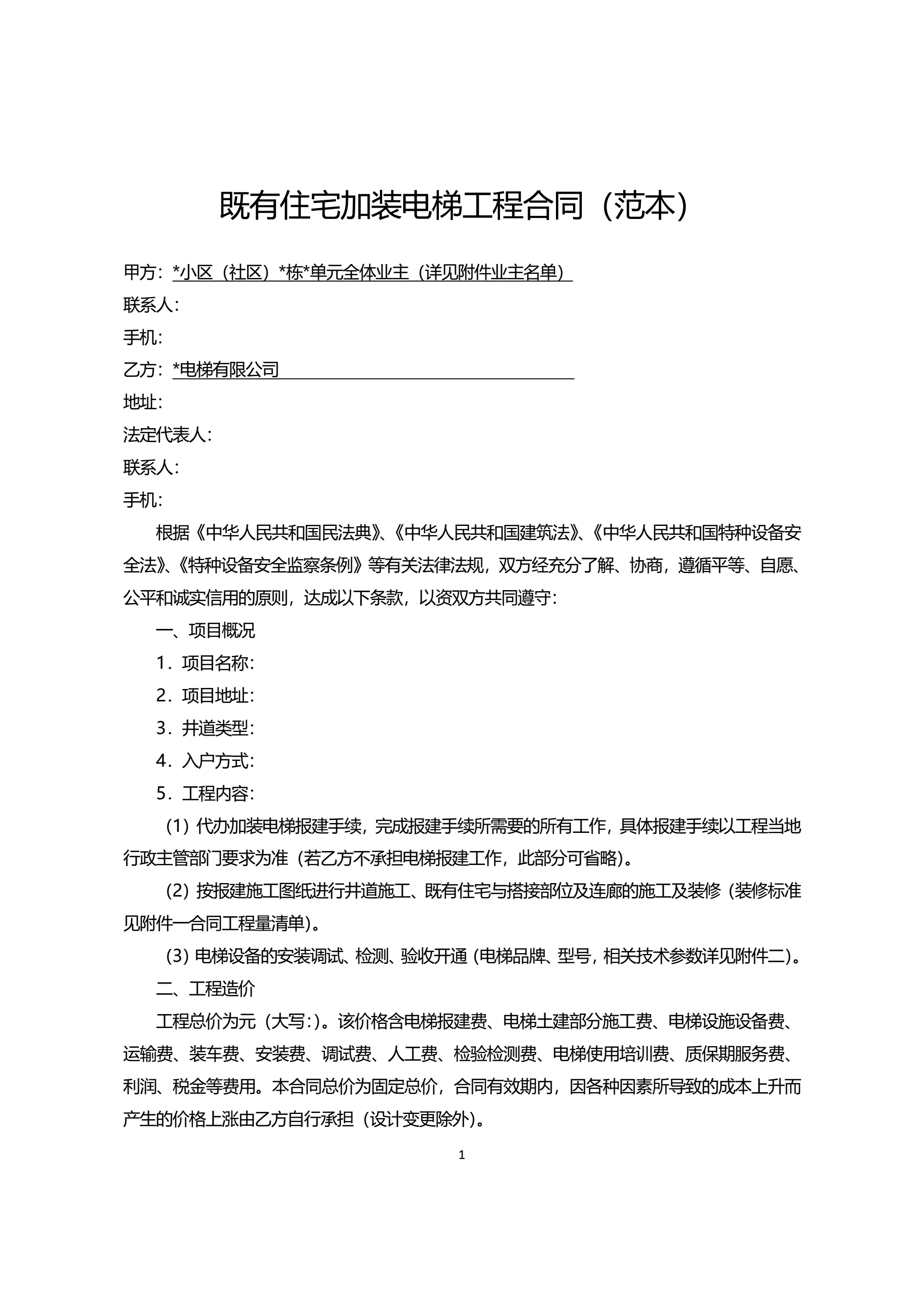 >附件1既有住宅加装电梯工程合同(范本)
