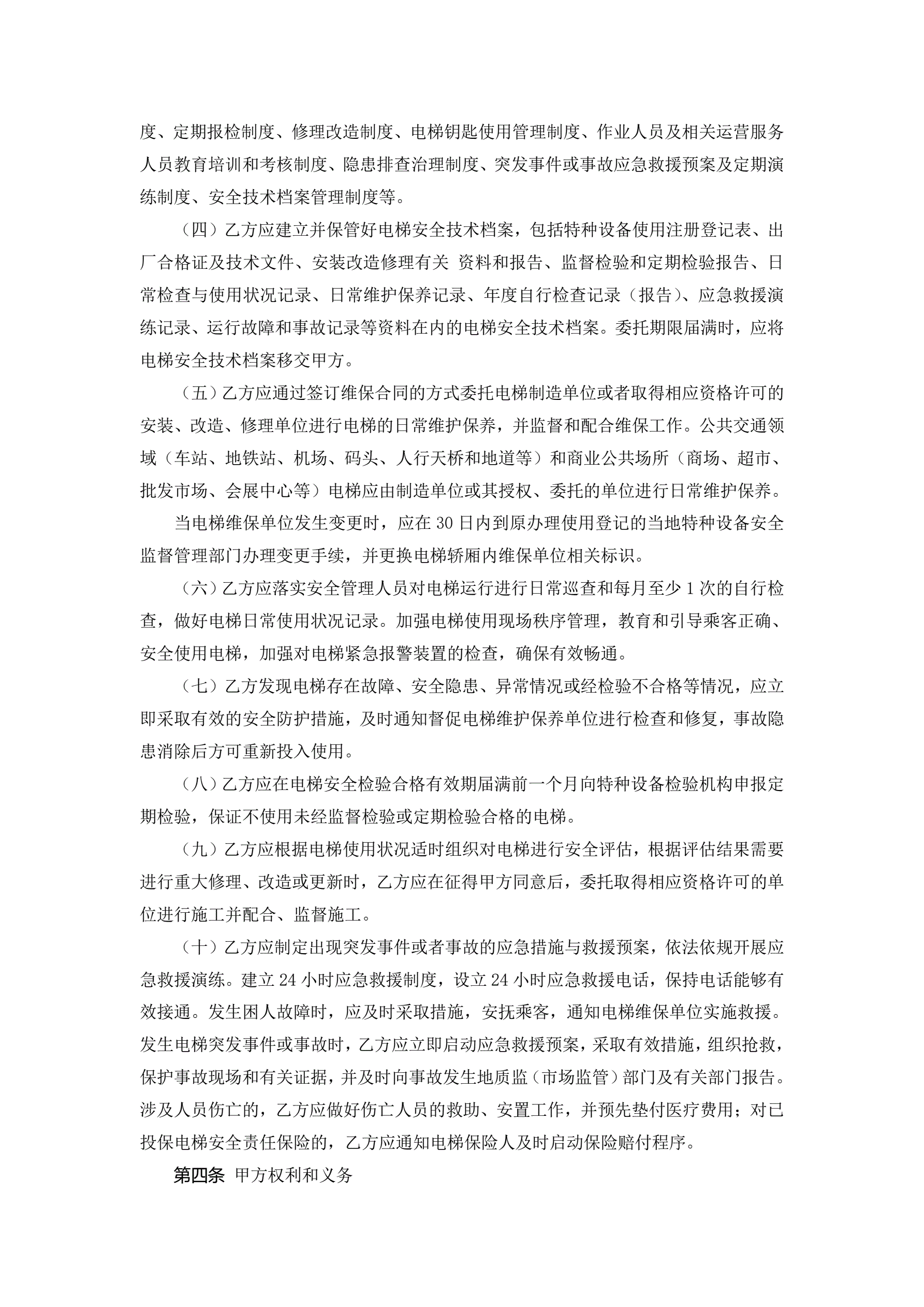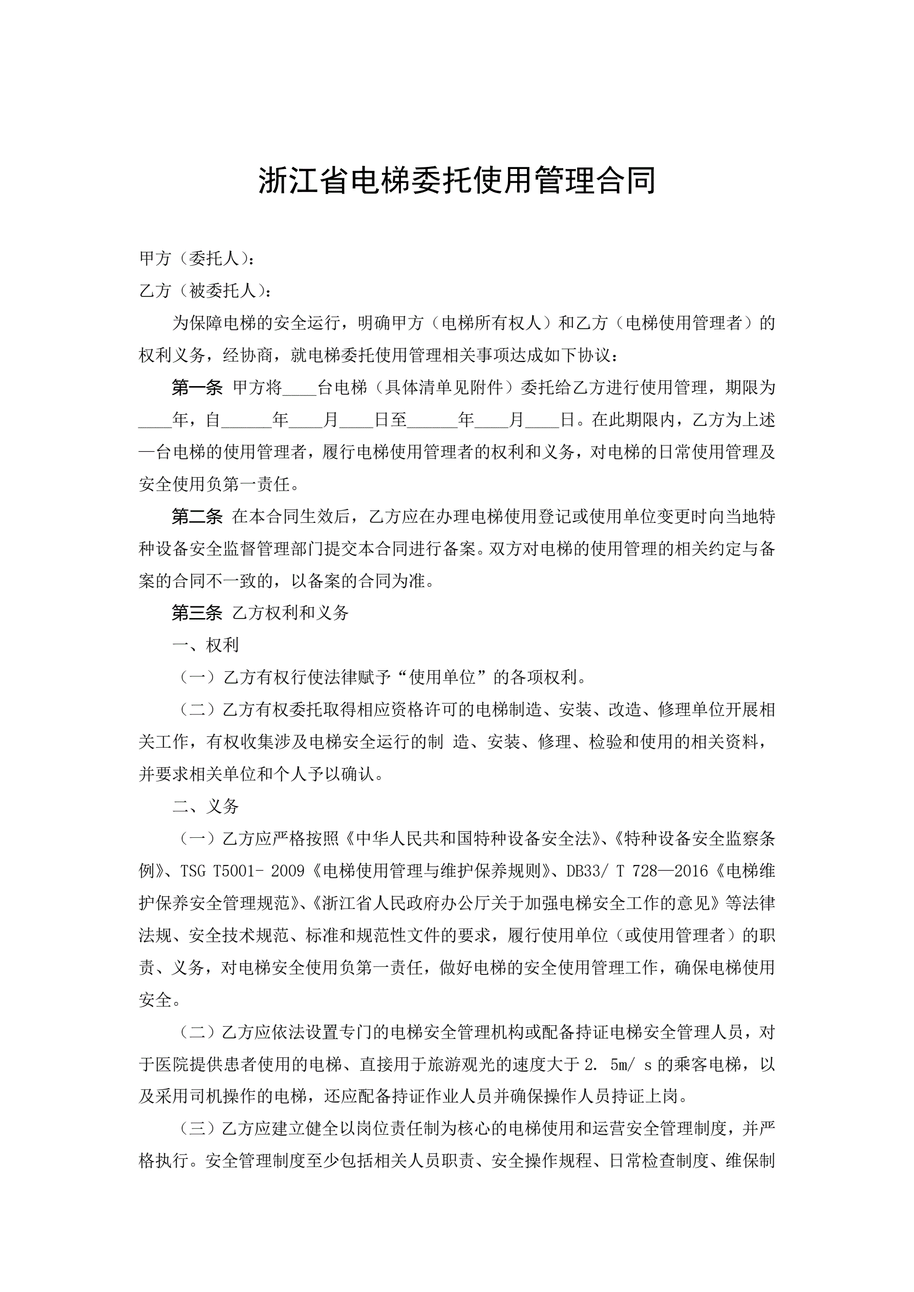 《浙江省电梯委托使用管理合同示范文本(试行)》