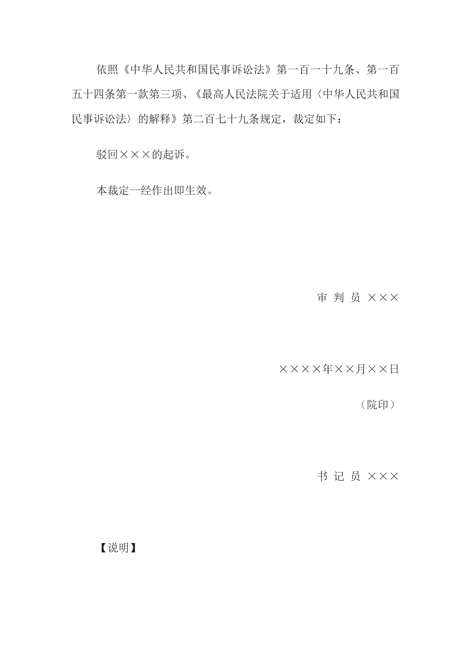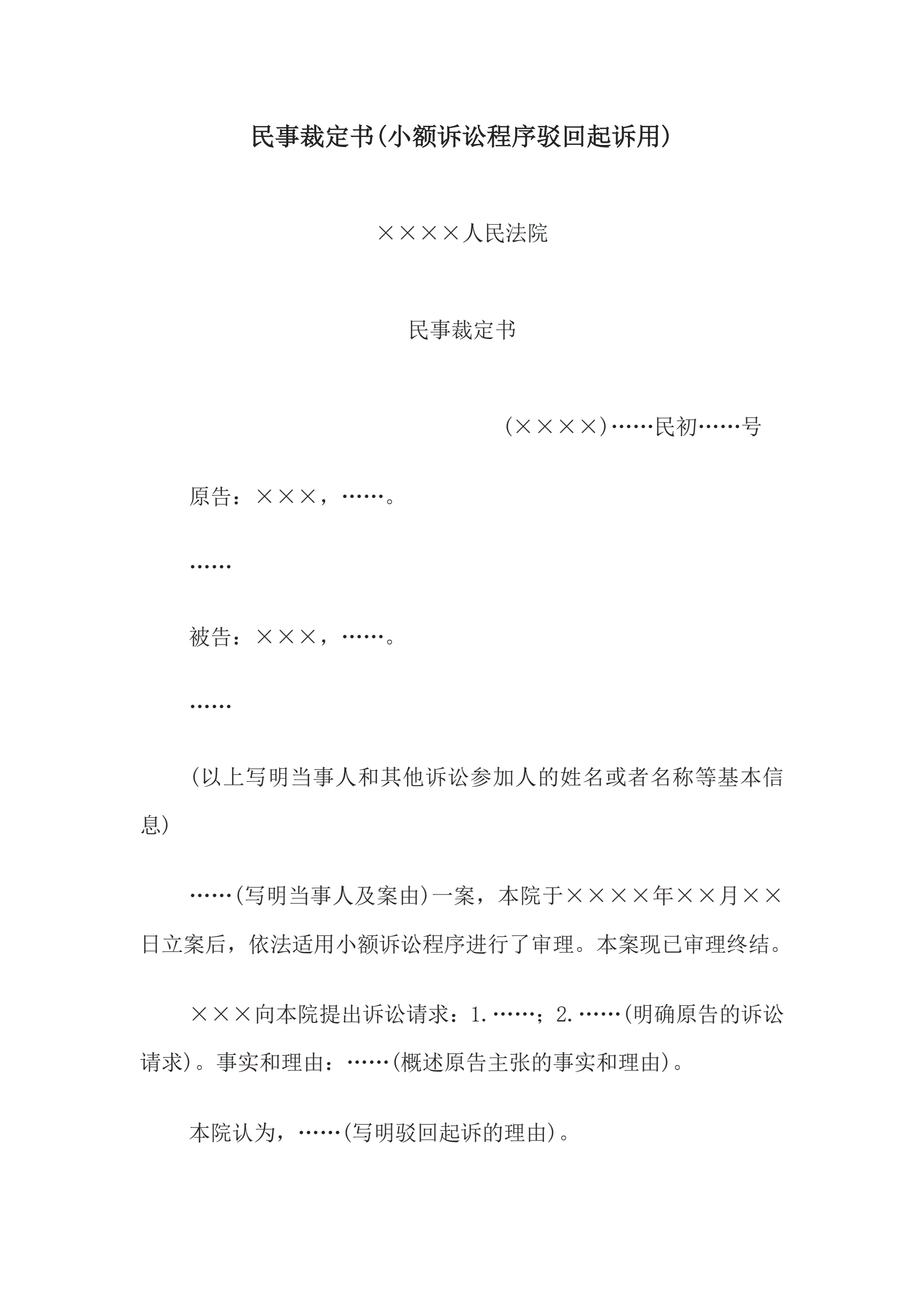 合同名称:民事裁定书(小额诉讼程序驳回起诉用)