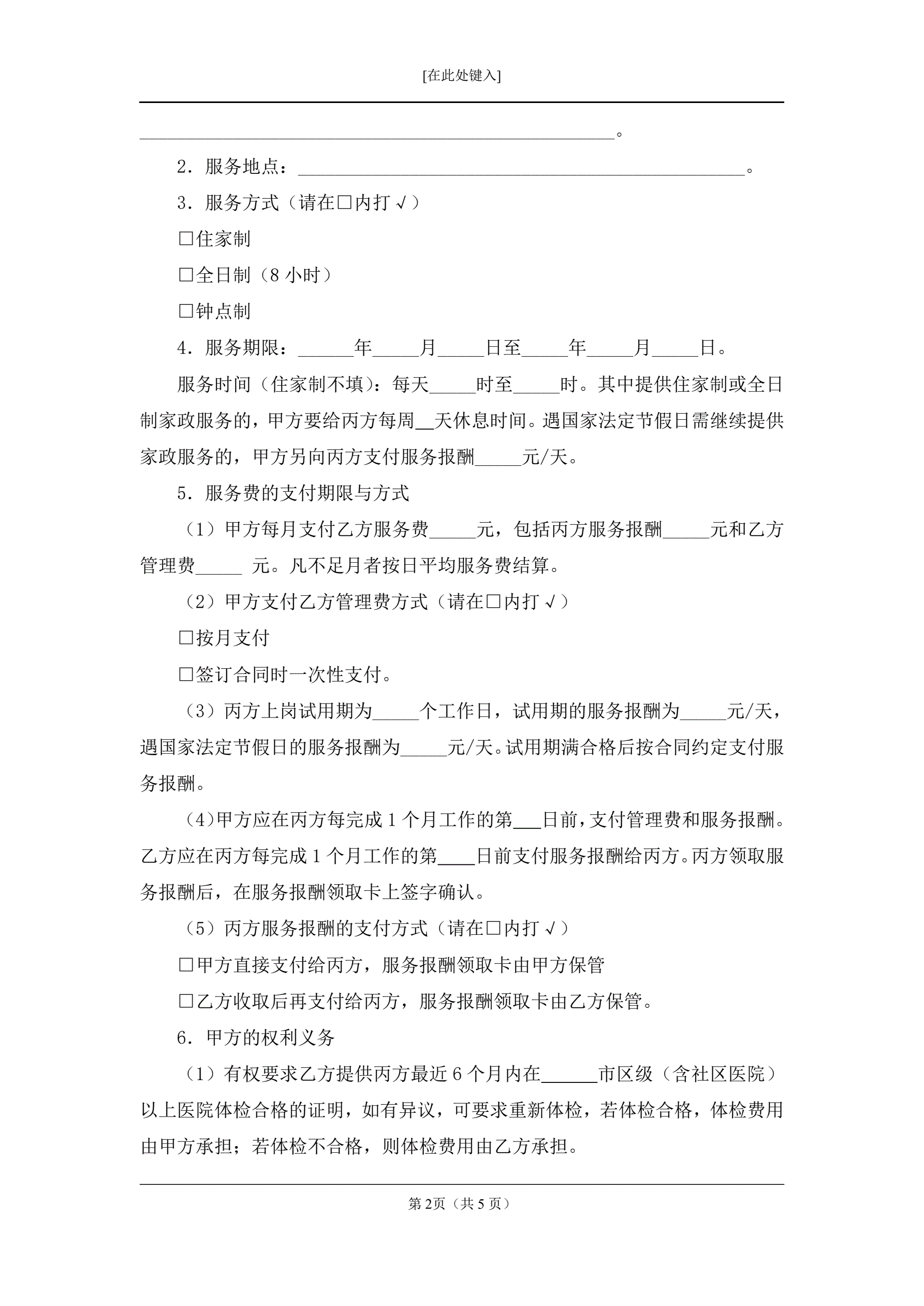 保姆合同