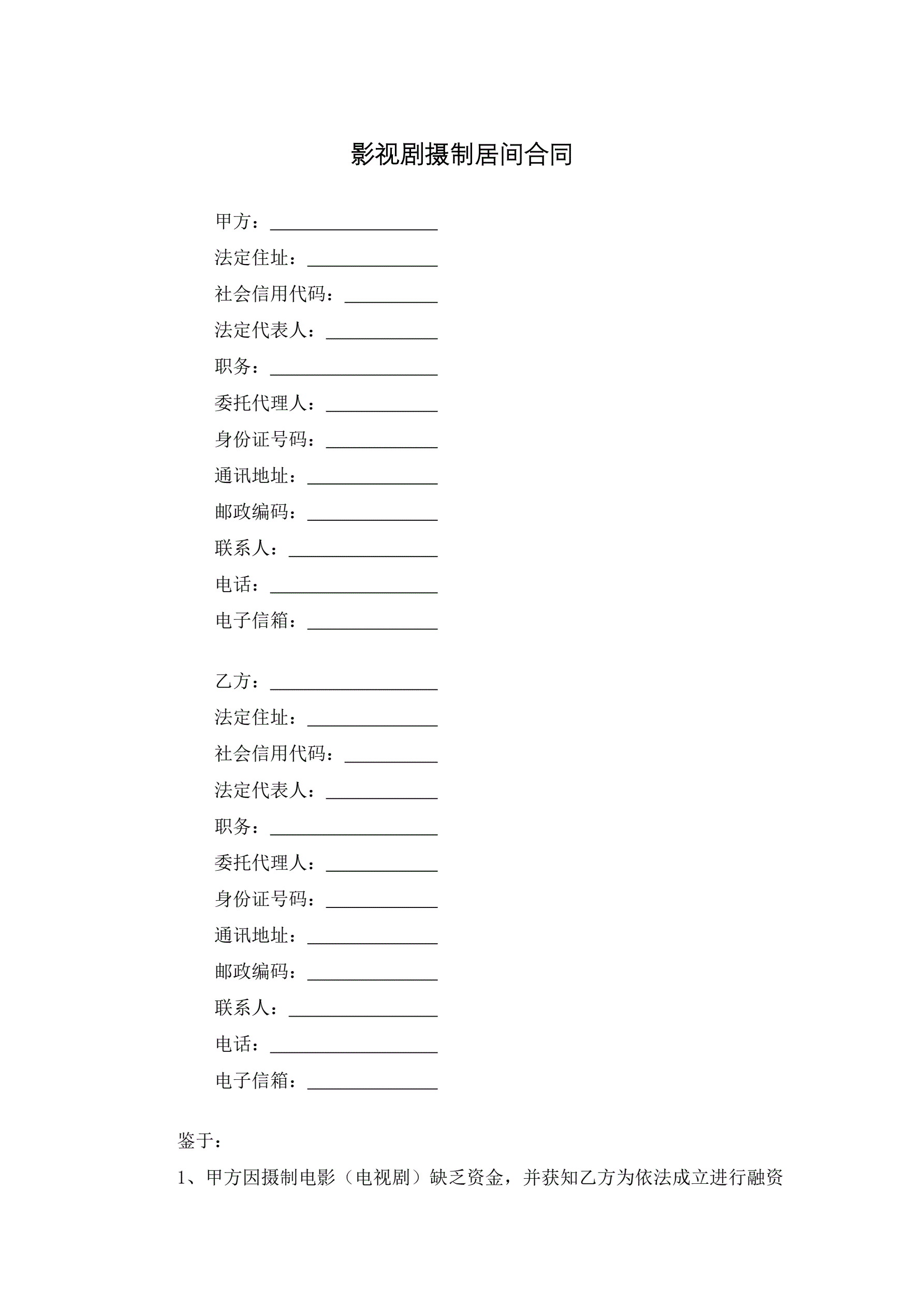 影视剧摄制居间合同