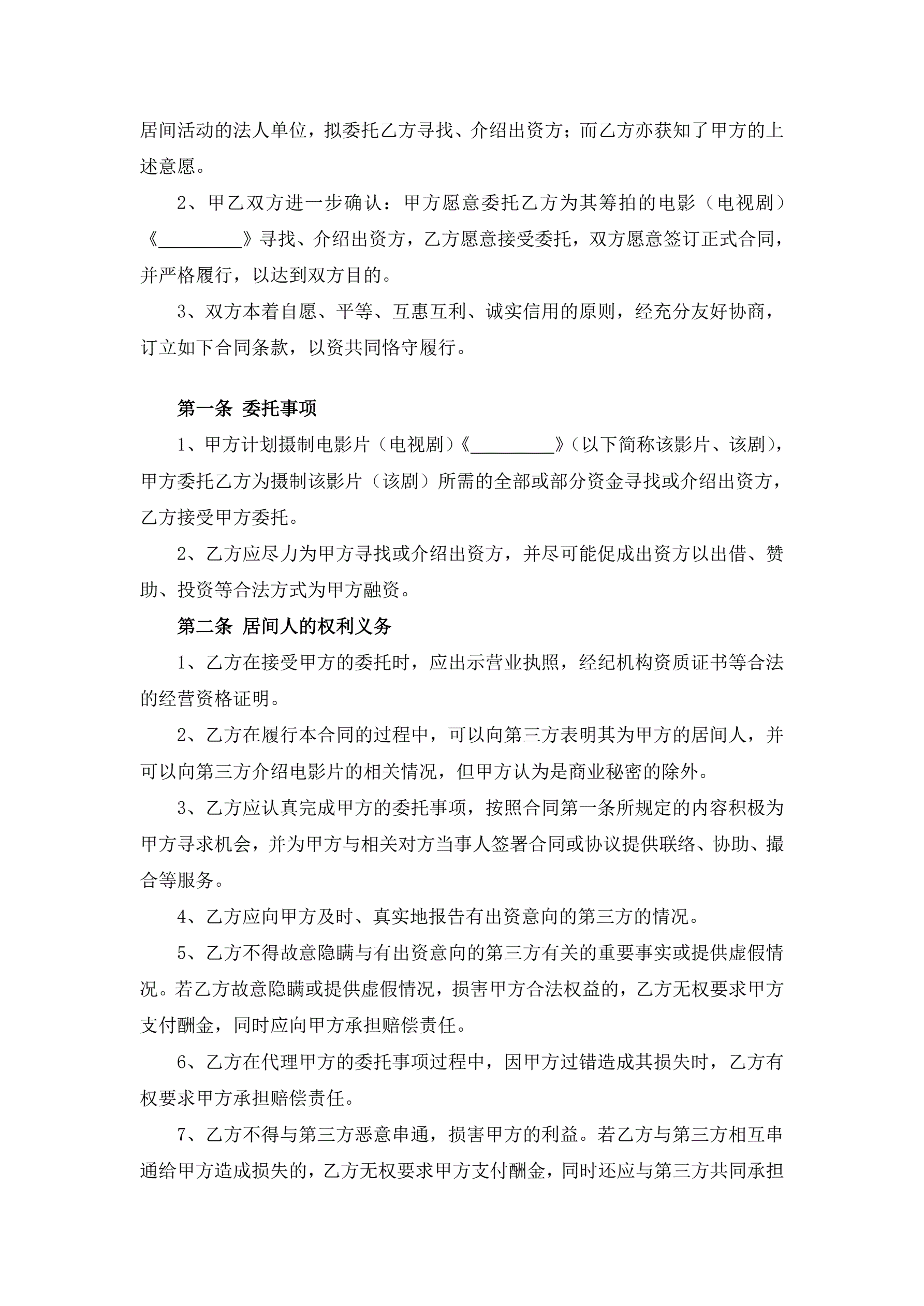 >影视剧摄制居间合同
