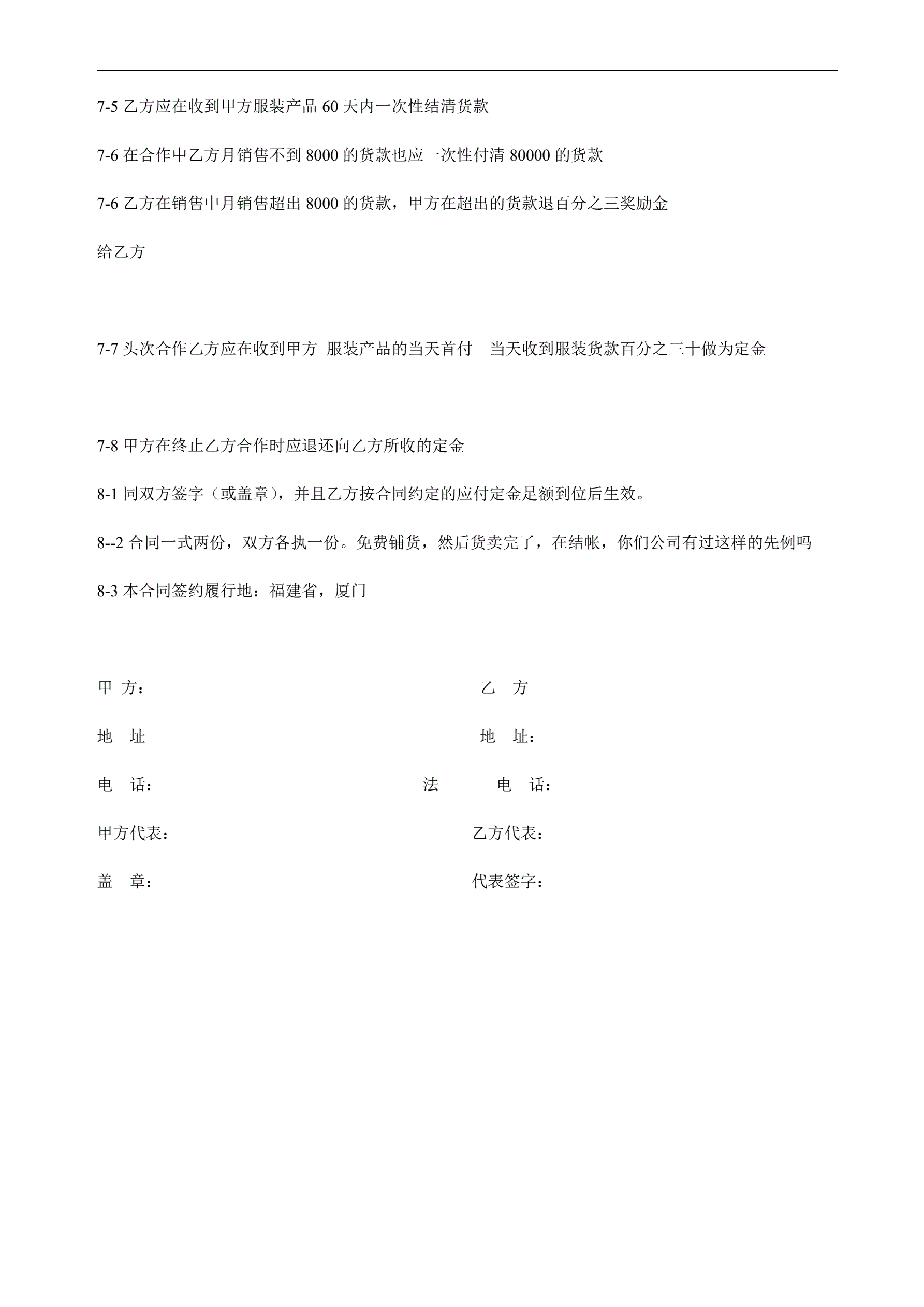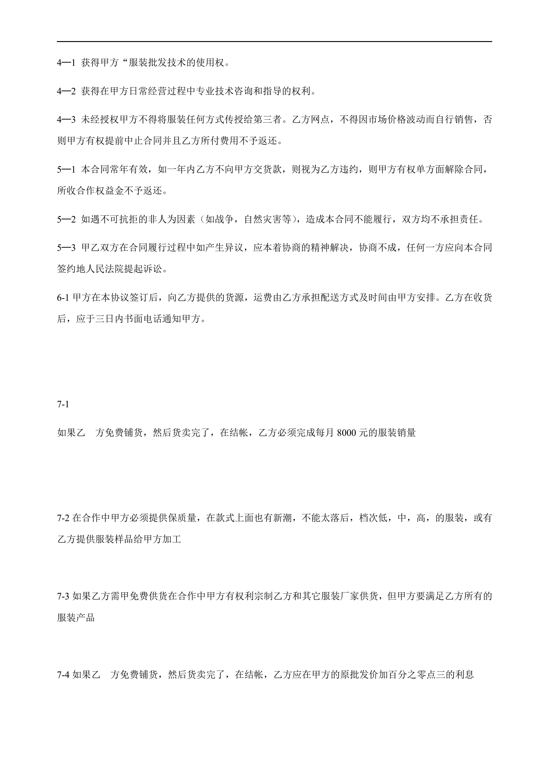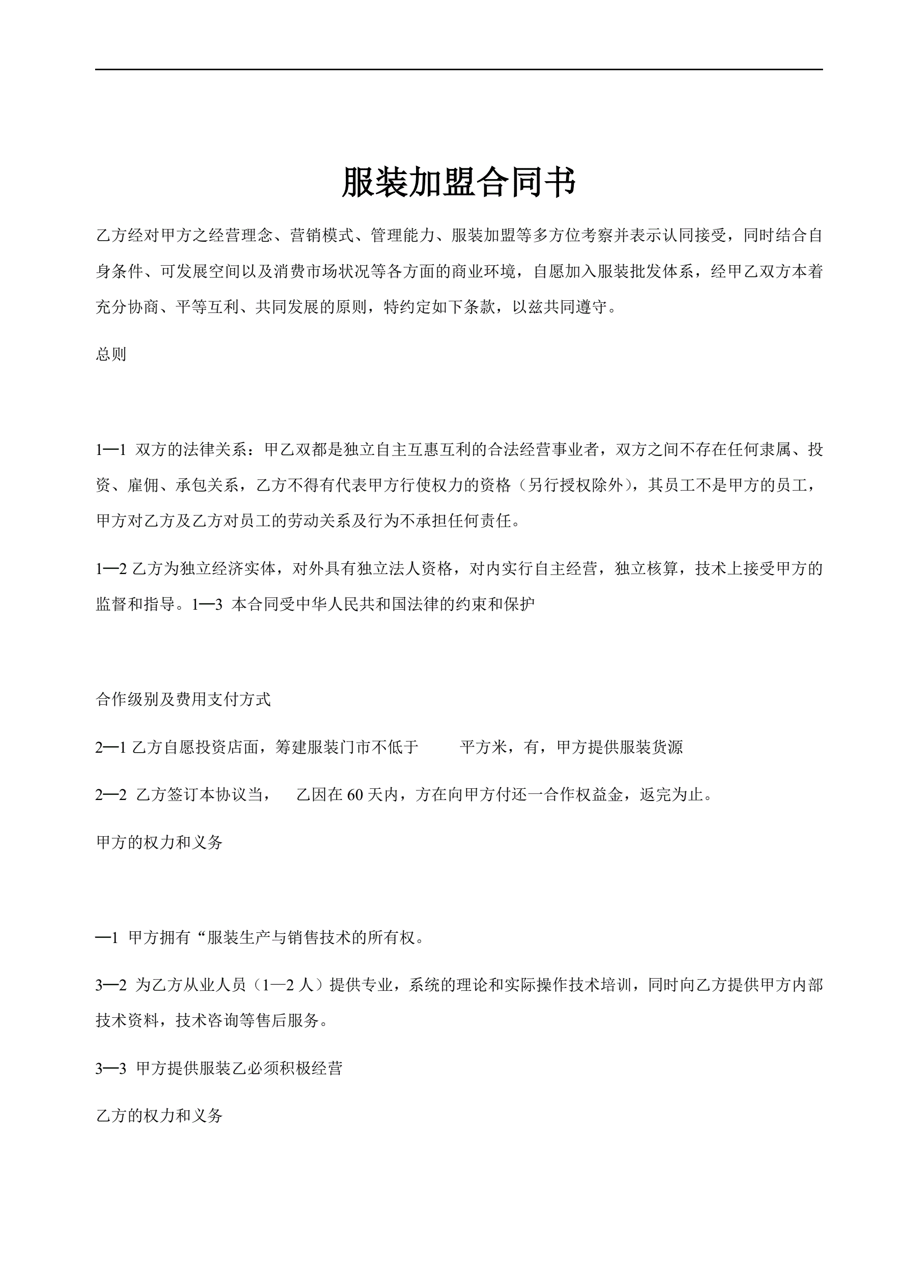 >服装加盟合同书
