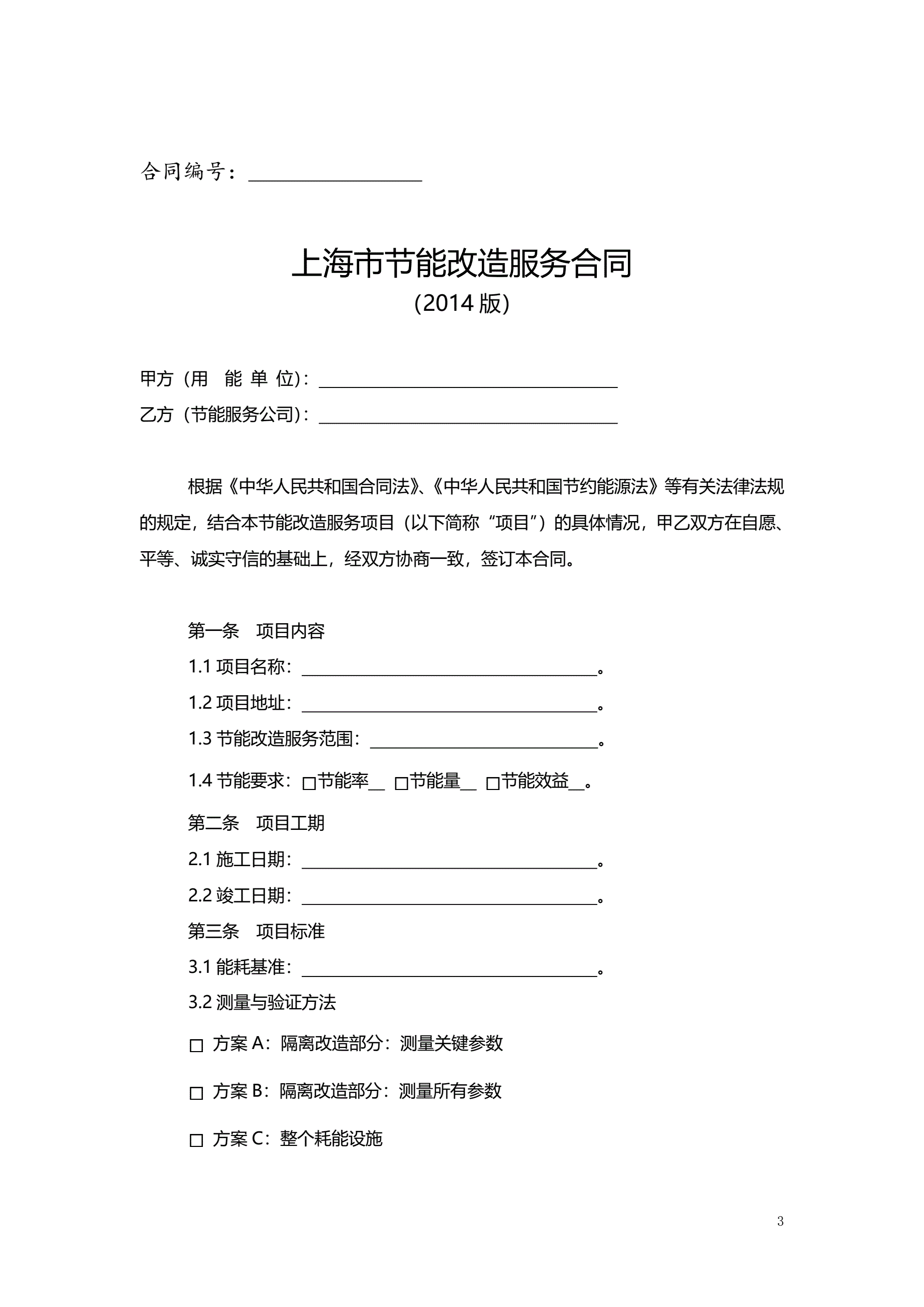 >上海市节能改造服务合同2014版