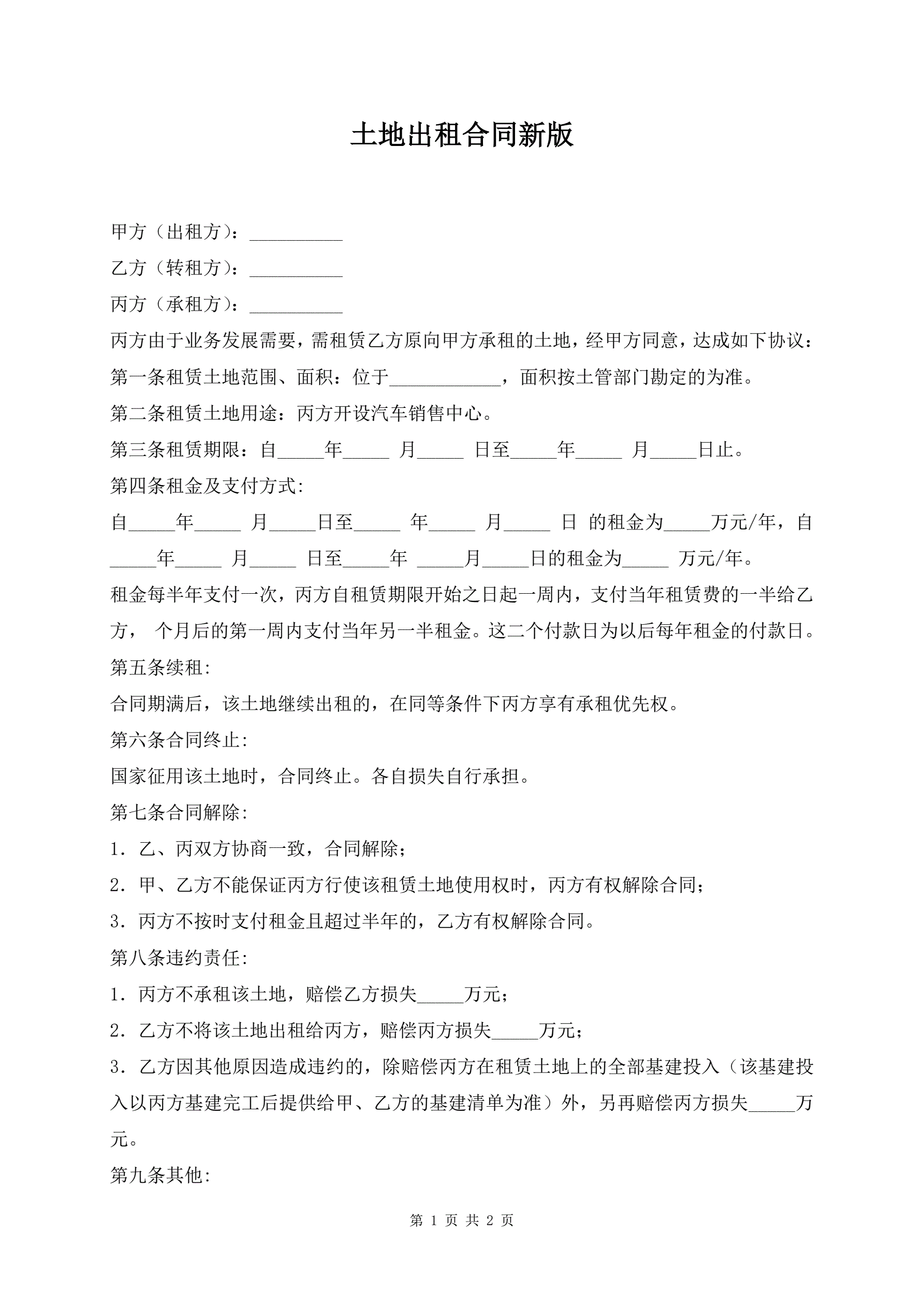 土地出租合同新版