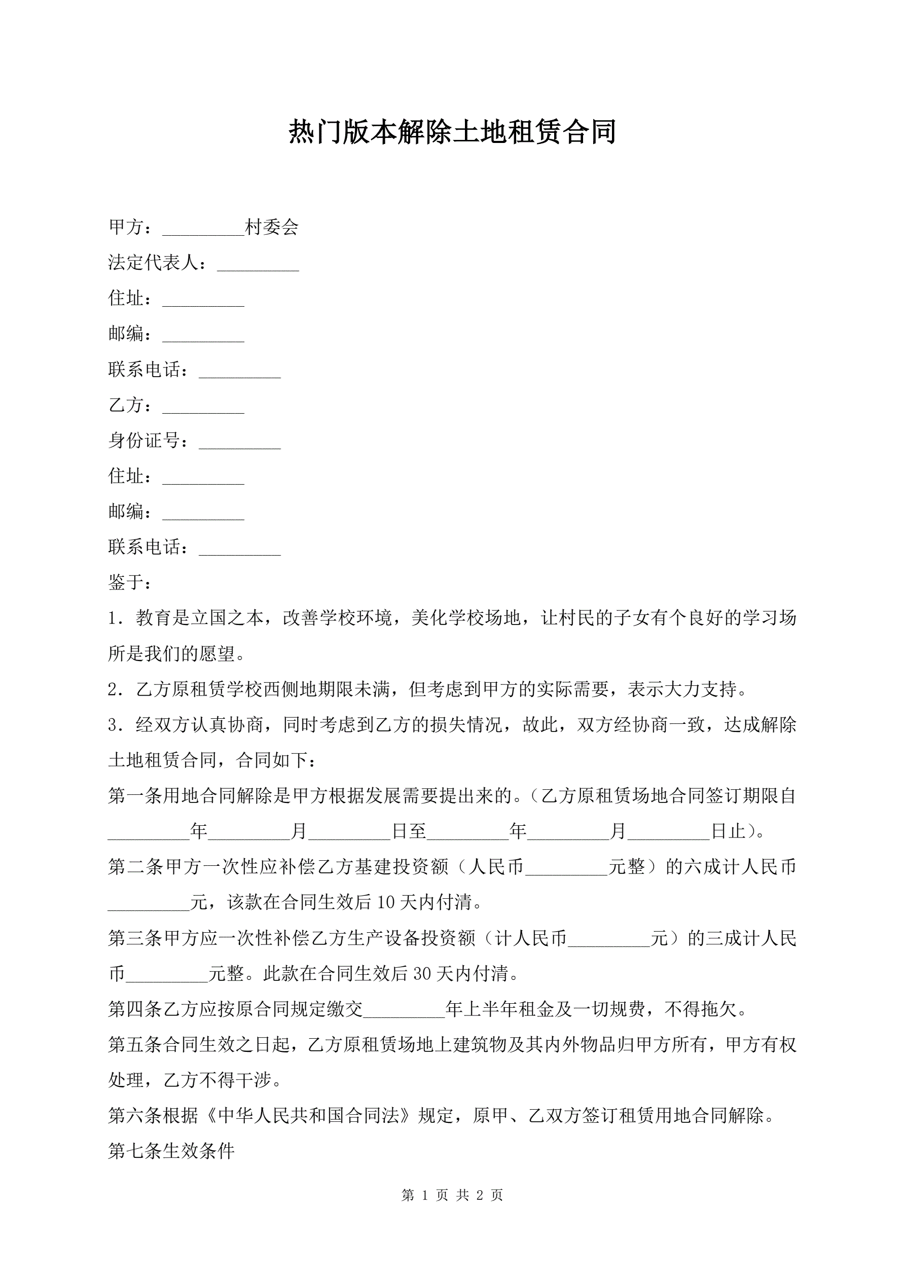 热门版本解除土地租赁合同