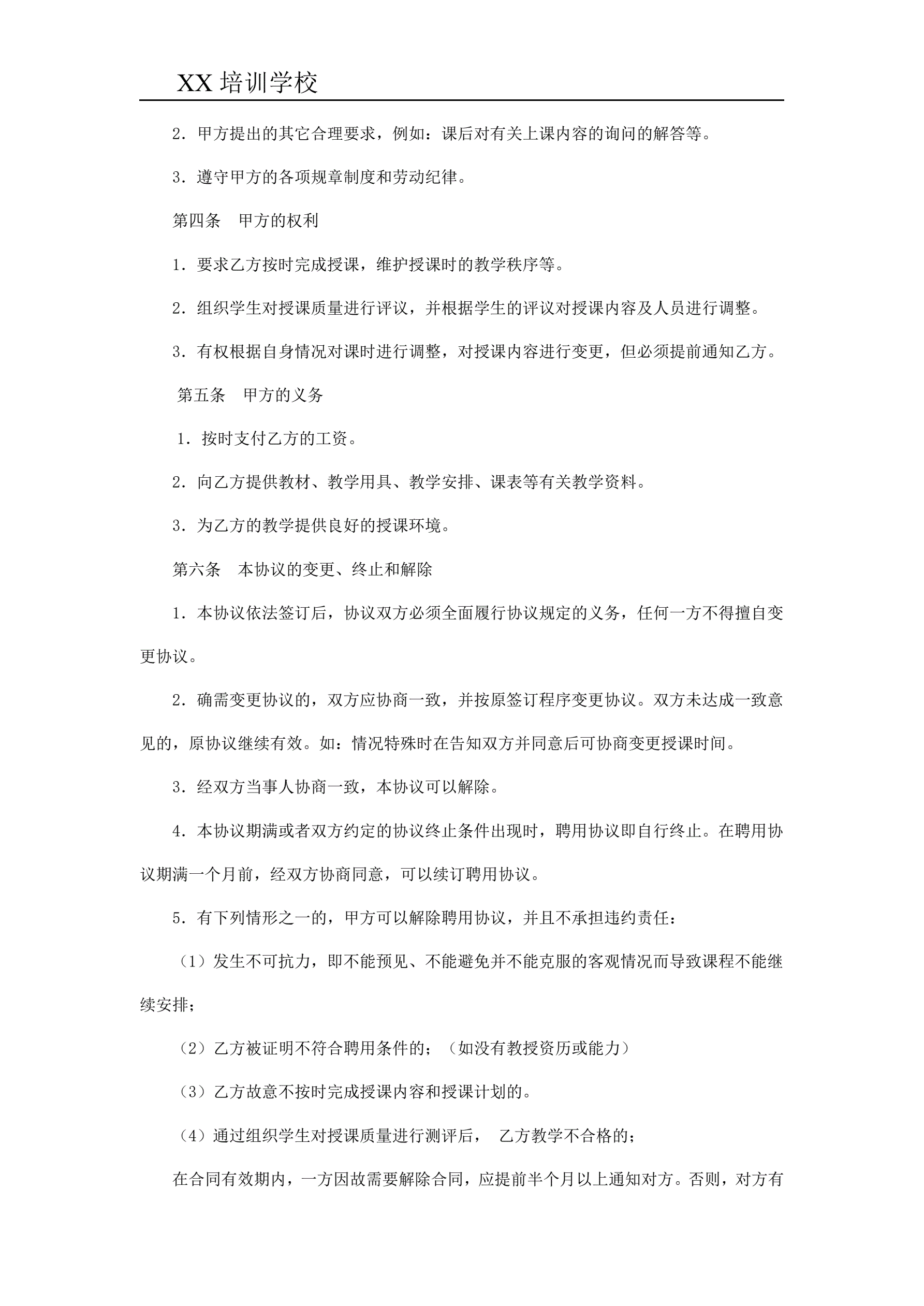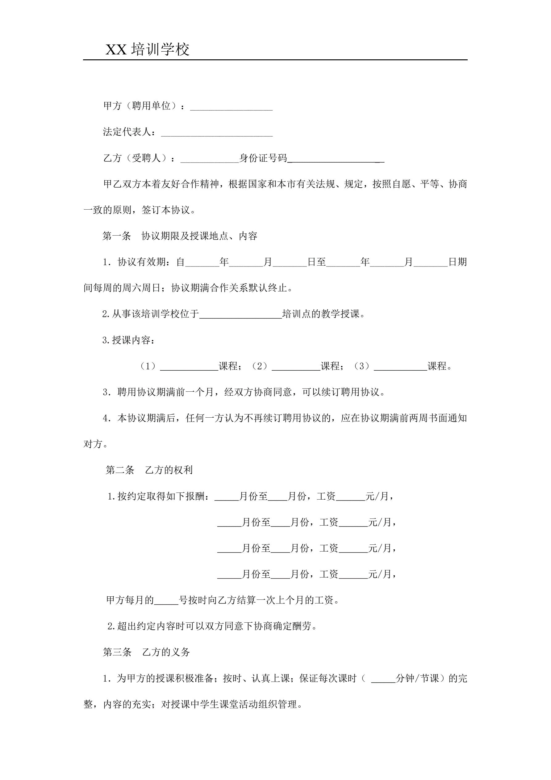 美术教师聘用合同
