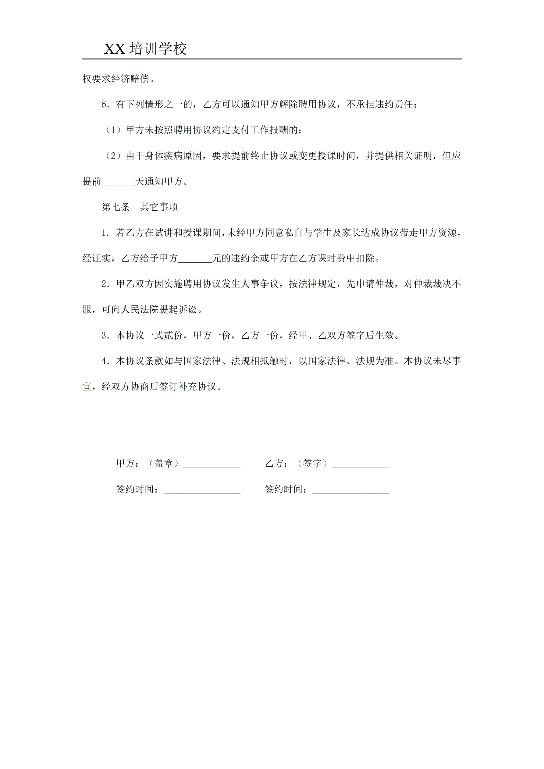 培训协议