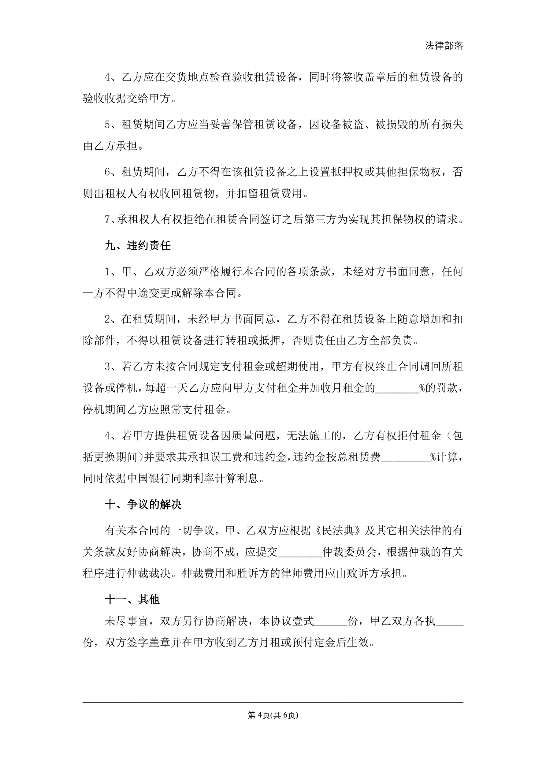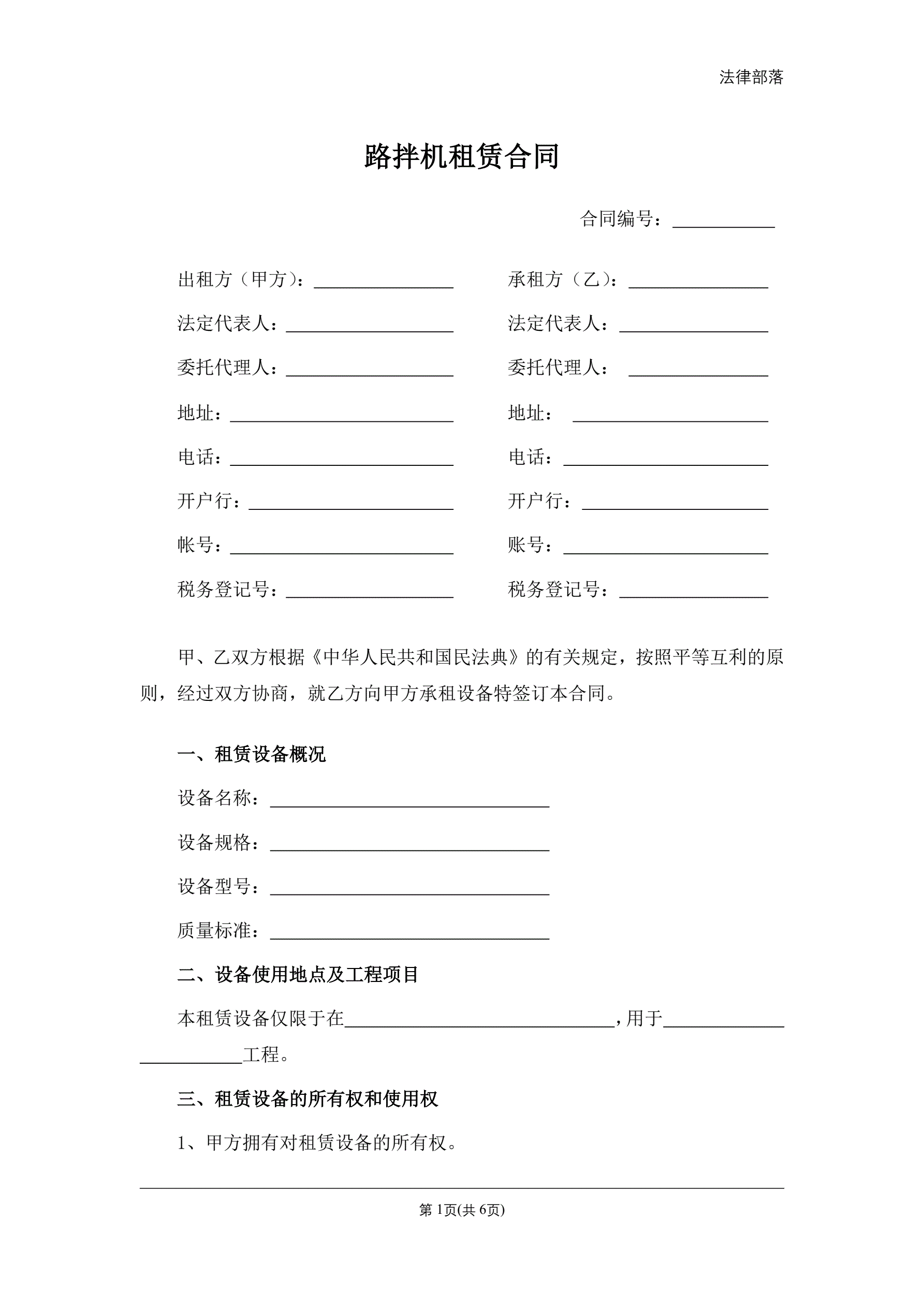 路拌机租赁合同