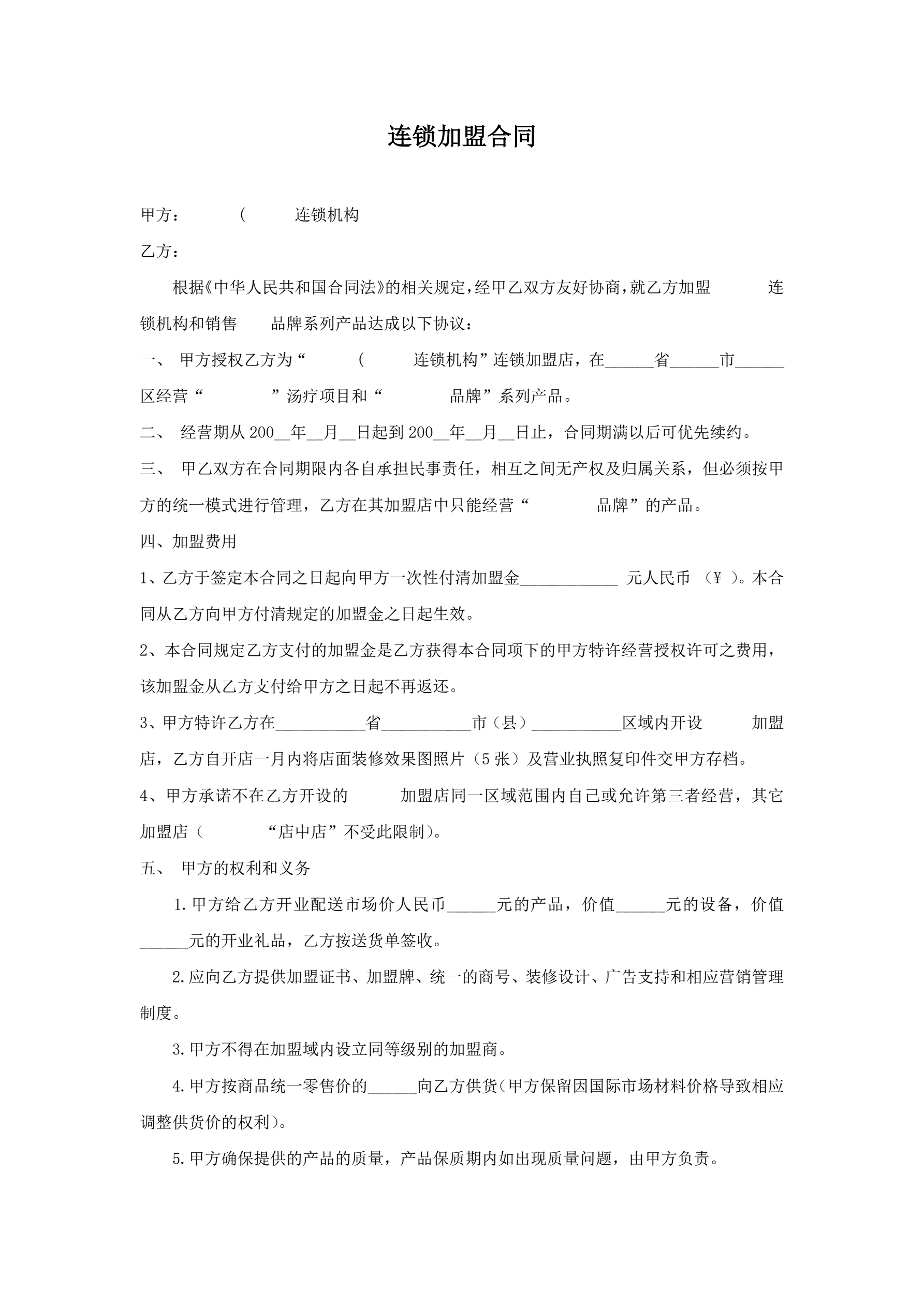 合同名称:直营连锁加盟合同