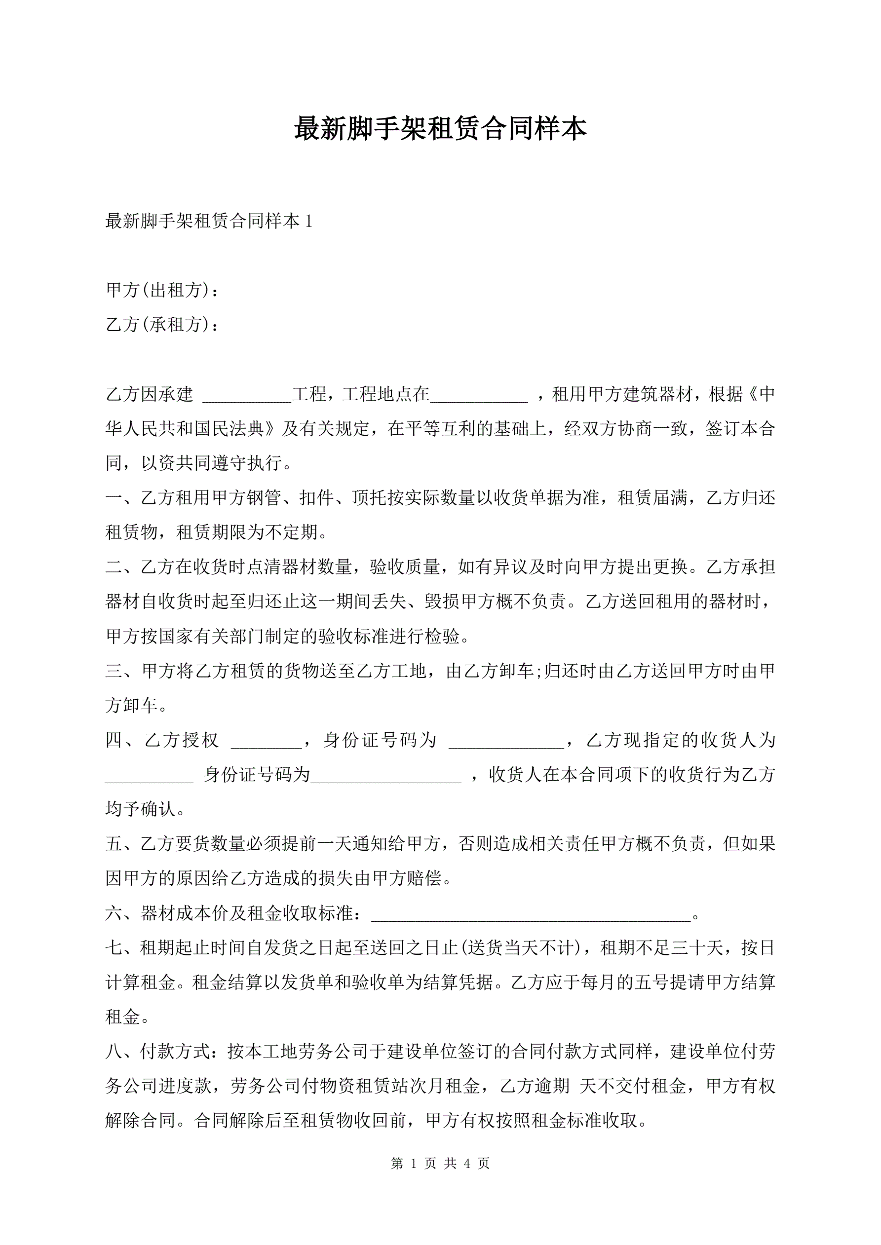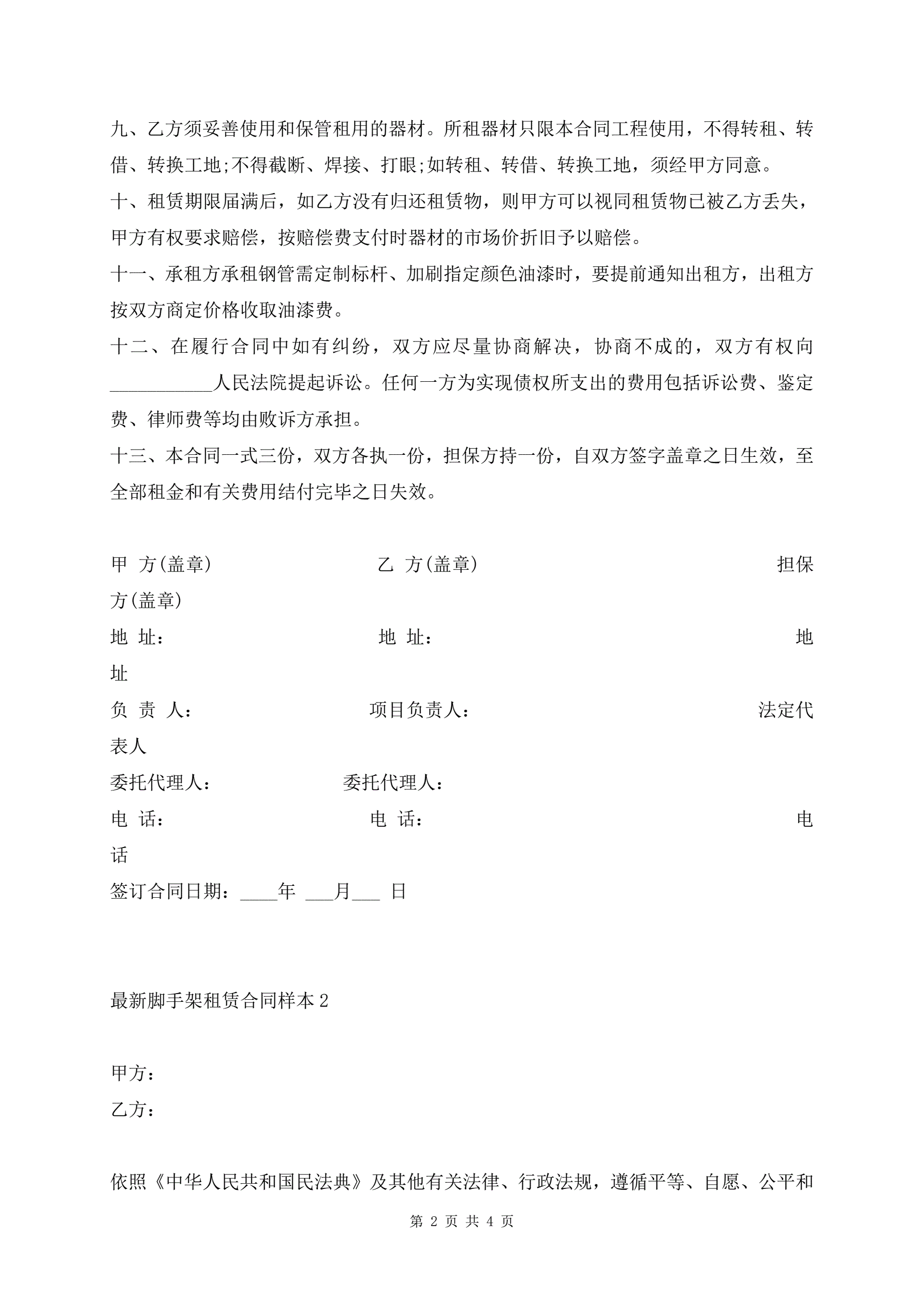 最新脚手架租赁合同样本
