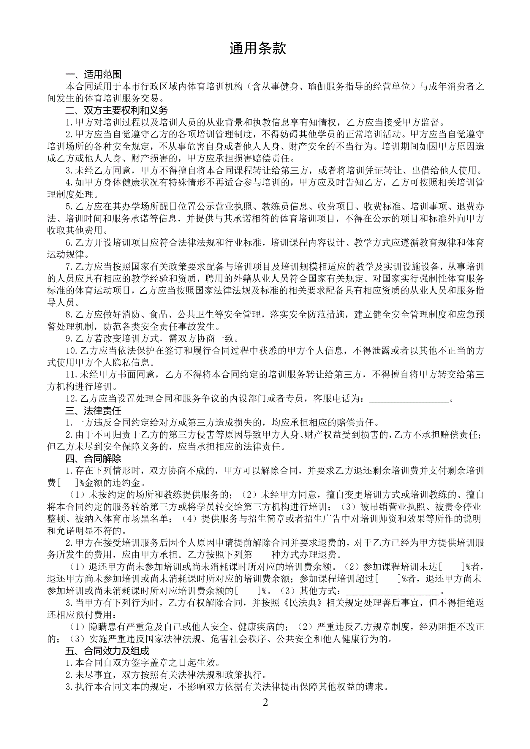 >北京市成人体育培训服务合同(2022)