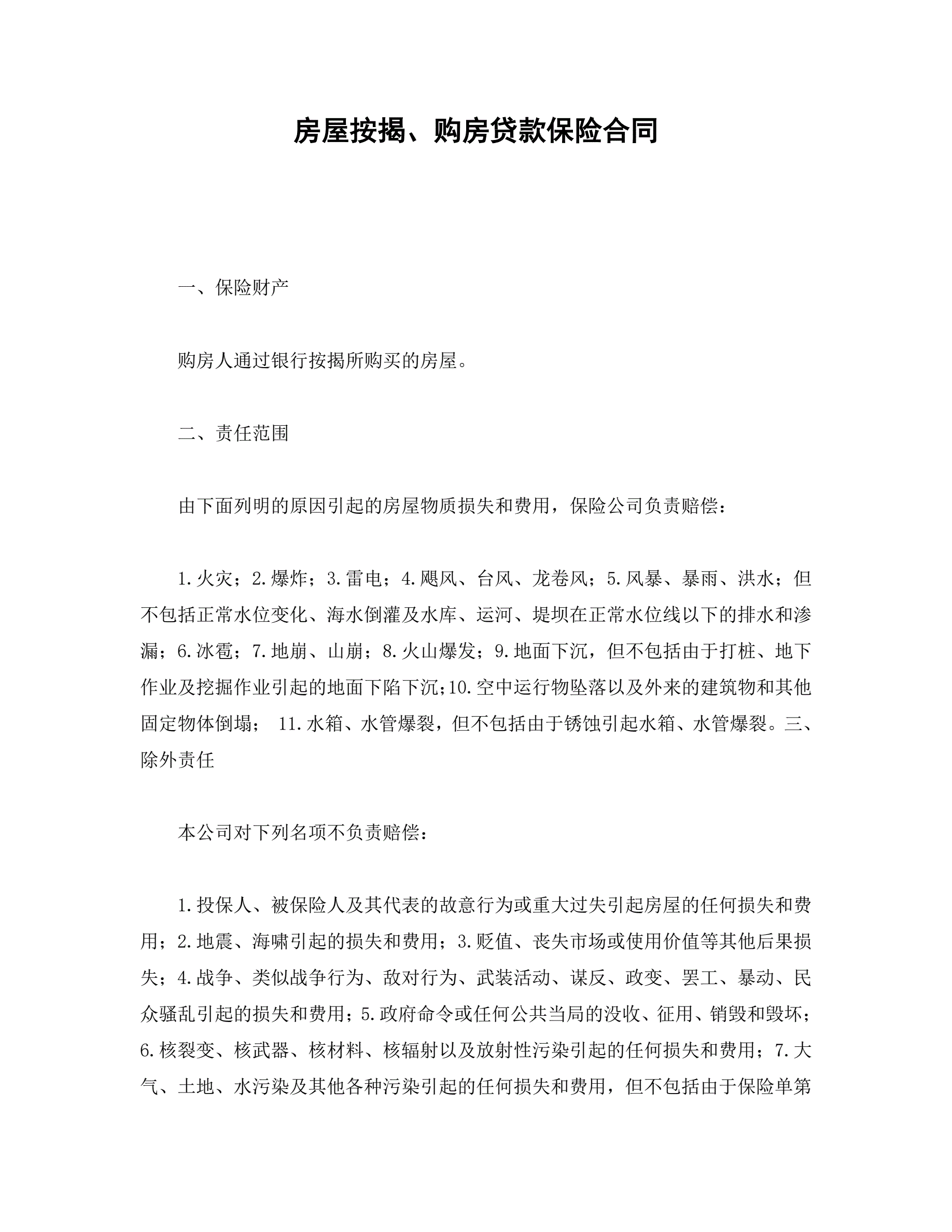 >房屋按揭、购房贷款保险合同